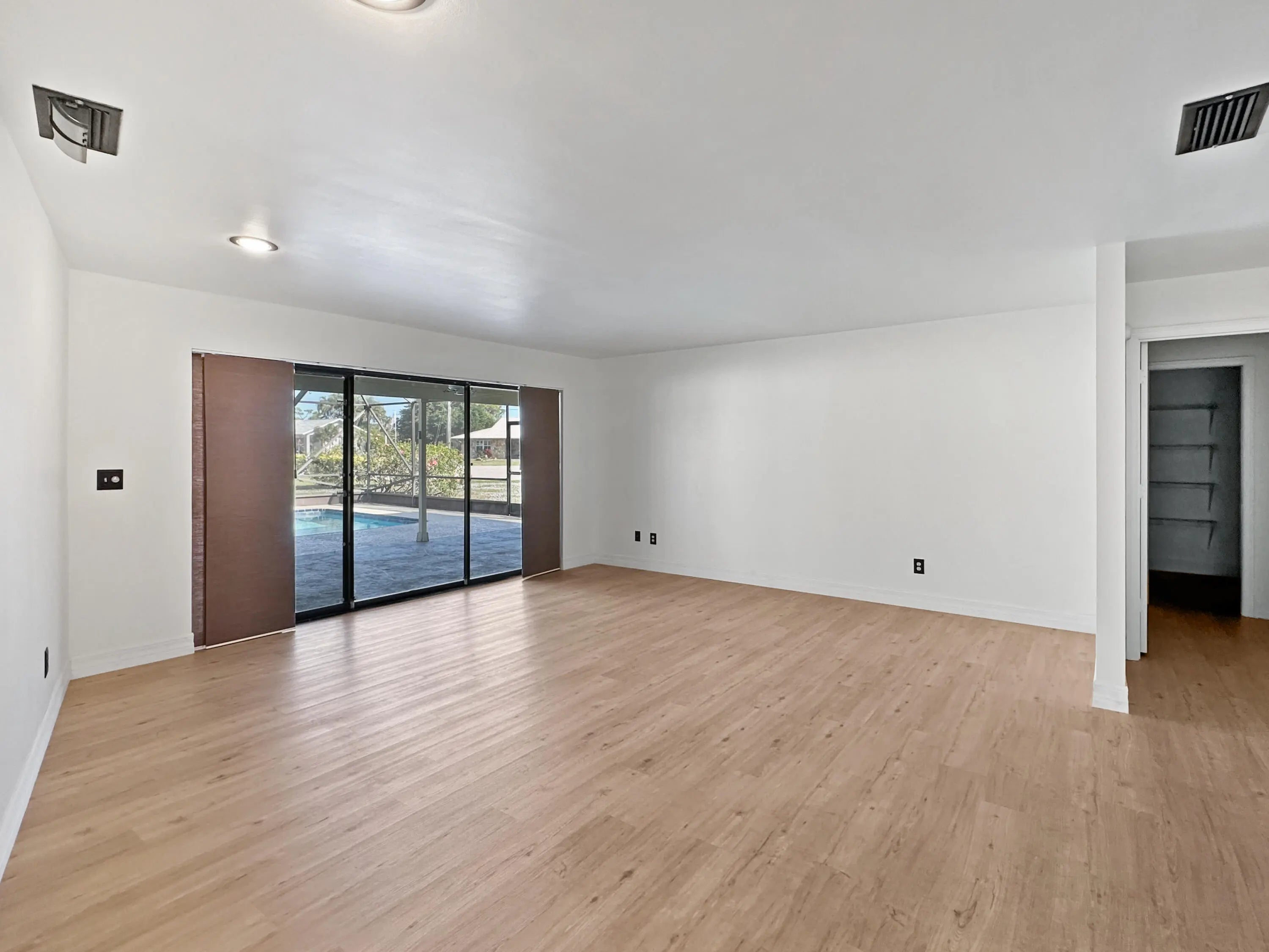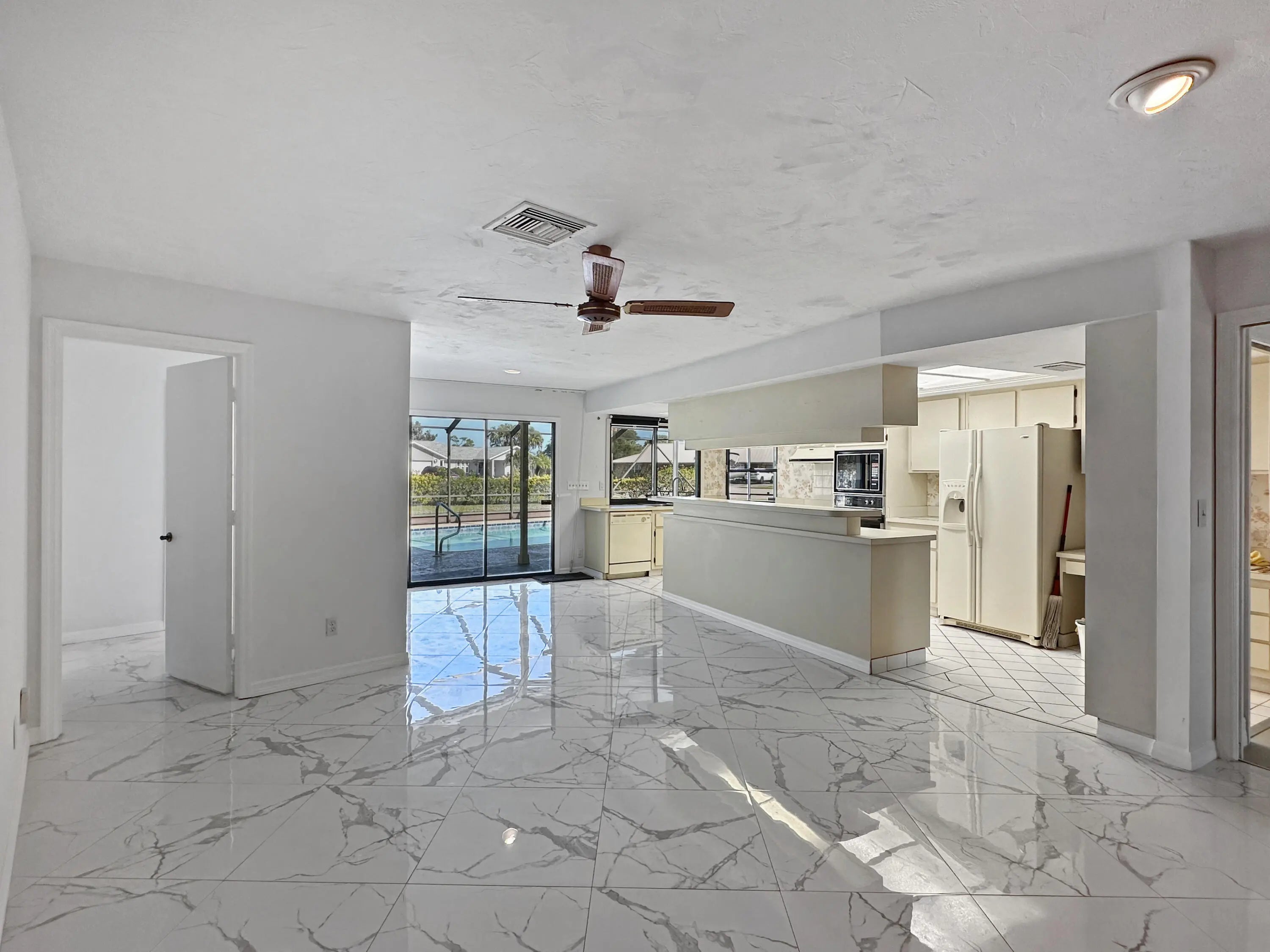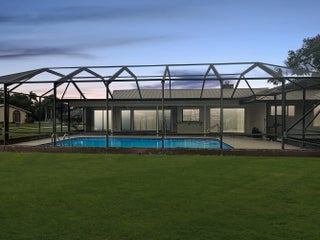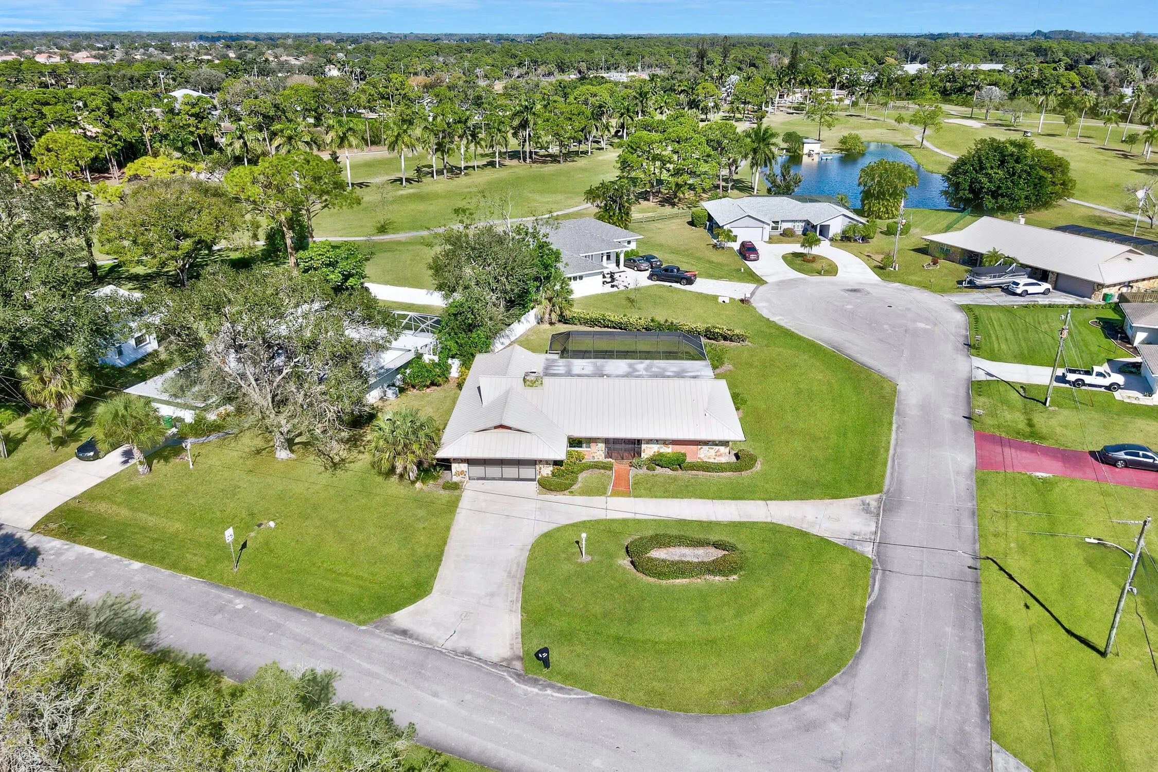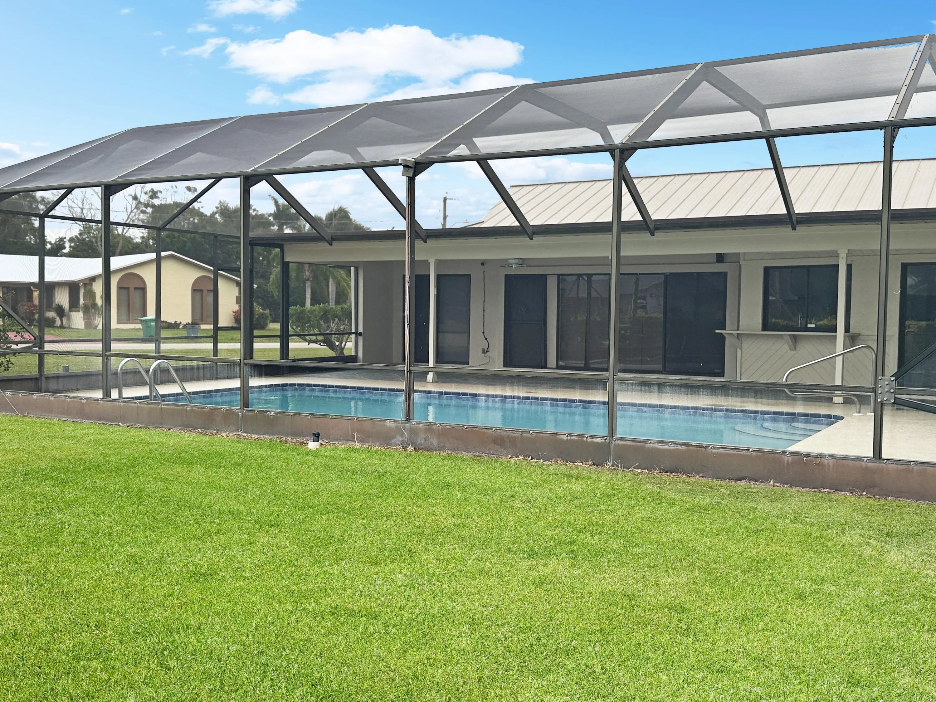 Discover the epitome of family living in this charming 3-bedroom, 2-bathroom single-family residence nestled in a serene, well-established neighborhood, perfect for those seeking tranquility and convenience. This home stands out with its robust construction featuring a 2021 metal roof and a spacious 2156 sq/ft living area, all on a generous .32-acre corner lot with a welcoming circular driveway.Boasting a split floor plan that promotes privacy, the masterful design integrates a sizable living room with sliders that lead out to a screen-enclosed, freshly refinished inground pool--your private oasis for relaxation or entertaining. The family room, warmed by a cozy fireplace, flows seamlessly into a kitchen equipped with ample cabinets, vast countertop space, and a convenient recipe/