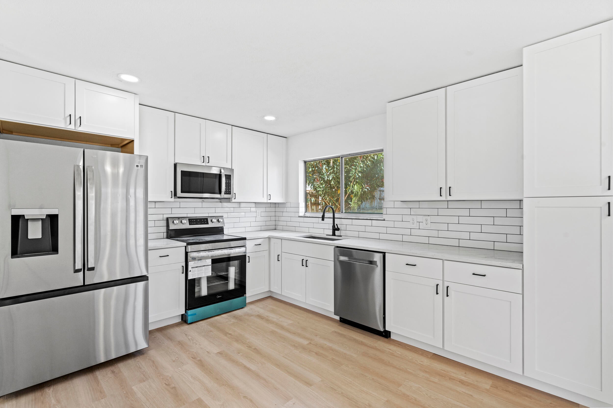 Completely remodeled & ready for a first-time homebuyer! All renovations done in 2025: brand-new roof and A/C, fully renovated kitchen with quartz countertops, new stainless steel appliance package and 42'' cabinets, coffee bar with open shelving, new luxury vinyl plank flooring throughout, new primary bathroom shower and vanity, new toilets, new garage door, fresh interior paint, painted garage floor and patio, new screened lanai enclosure, new gutters and refreshed landscaping. Ideal for first-time buyers seeking a move-in-ready home.