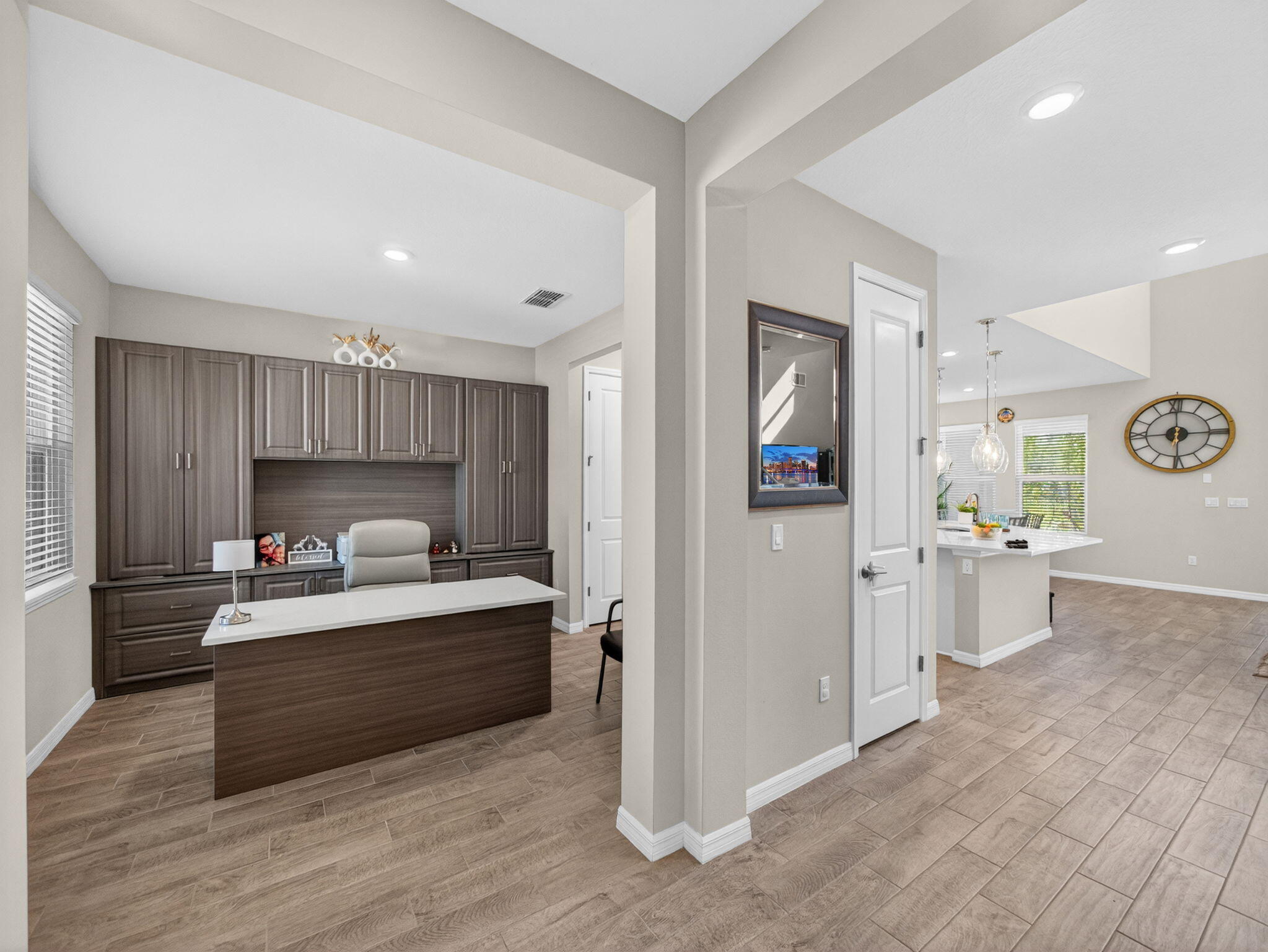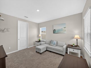 Why wait for the long process of construction when you can enjoy this beautiful home now! The Taylor Morrison Bonaire floor plan at Central Park blends traditional charm with modern livability. The main level centers around an open kitchen, casual dining area, and a soaring two-story gathering room with a pocket sliding glass door. The kitchen features an angled island and pantry, while the downstairs owner's suite offers convenience, privacy, and two generous walk-in closets. Upstairs, the loft overlooks the living area and leads to a dedicated study, plus three secondary bedrooms and two full baths. Thoughtful upgrades include 8' interior doors, double doors on the study, and a converted dining room now used as a custom home office. The fully fenced backyard adds extra comfort and ease.
