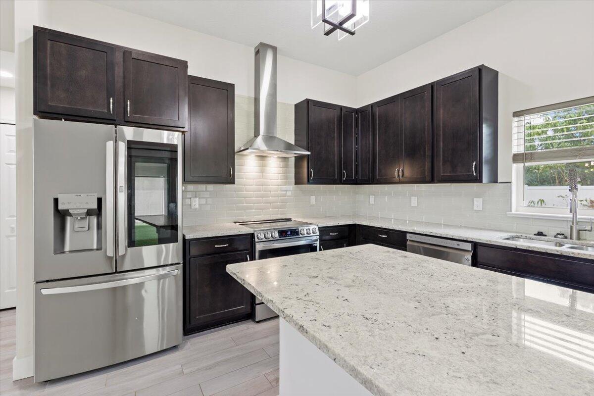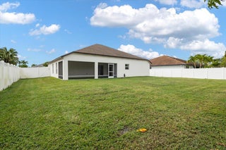 Nearly new! Tastefully designed and built in 2022, this lovely 3 bedroom, 2 Bath, 2 car garage home in the Torino neighborhood of Port St Lucie is just what you have been looking for! Upgraded appliances, tile backsplash. Matching tile floor through whole home. Huge primary suite. Primary bath features separate tub and shower, double sinks and walk-in closet. Screened lanai, with synthetic turf. Fully fenced yard with 6ft vinyl privacy fence. Short drive to St Lucie West, or Downtown Ft Pierce for shopping and entertainment. 30 minutes to beaches. Close to I95 Midway exit.