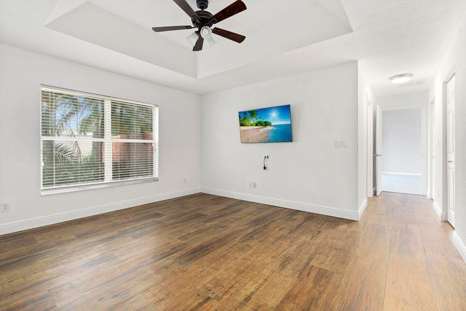 A beautiful 4/3/2 home located in a gated community, featuring an open floor plan and numerous upgrades. The remodeled kitchen offers granite countertops, a large granite snack bar, and newer appliances. Tile and hardwood flooring run throughout the home.An all-weather outdoor shed is included, and the private patio--finished in a charming Southwest style with paver bricks--adds a unique touch. The community lake with a walking path is just a 2-minute walk away, and Tradition Square with its shopping centers is only a 3-minute drive. The HOA covers internet, basic cable, security phone service, and front lawn maintenance.An beautiful 4/3/2 house with gated community and open floor plan, which includes many upgrades: remodeled kitchen granite counter tops, large granite snack bar, newer appliances. Tile/hardwood floor through all house. Home also includes a outdoor all weather shed. The patio is unique - private and done in a Southwest mode with paver bricks. Lake with walking path is 2 minutes walking distance. Tradition Square with the shopping centers is 3 minutes of driving distance. HOA includes internet, basic cable, security Phone and front lawn maintenance.