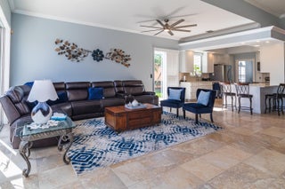 Waterfront Views start from the front door! Extended Oakmont Model with a Pool! Nestled on an oversized lot with breathtaking waterfront views, Home is Sold FURNISHED if buyer would like.. HOA COVERS A PLETHORA OF AMENITIES, LANDSCAPING CABLE, INTERNET, LAND LINE, HOME SECURITY, EXTERIOR PAINTING. and MUCH MORE! This exquisite 3-bedroom, + Large Office, 3-bathroom custom home is a masterpiece of style and comfort. Step inside to discover a beautifully updated kitchen, outfitted with modern appliances. All upgraded light fixtures and accent shiplap walls. This home exude sophistication. The dedicated office space can be used as additional bedroom.Enjoy seamless indoor-outdoor living with three-panel sliders that open to an expansive screened-in pool and patio, ideal for entertaining or tranquil relaxation. A newer AC, water heater, washer, and dryer ensure efficiency and comfort. The extended 2-car garage provides ample storage, while accordion shutters add an extra layer of protection. Living in this prestigious community means enjoying HOA-covered amenities, pickleball, basketball, tennis, Gym, high-speed internet, cable, home security alarm, phone land line, Landscaping maintenance, exterior home painting 24-hour manned gated security, clubhouse, and much more. Don't miss this extraordinary waterfront retreat, schedule your private tour today! (Some furnishings may have changed since photos were taken) All Measurements are only estimates.