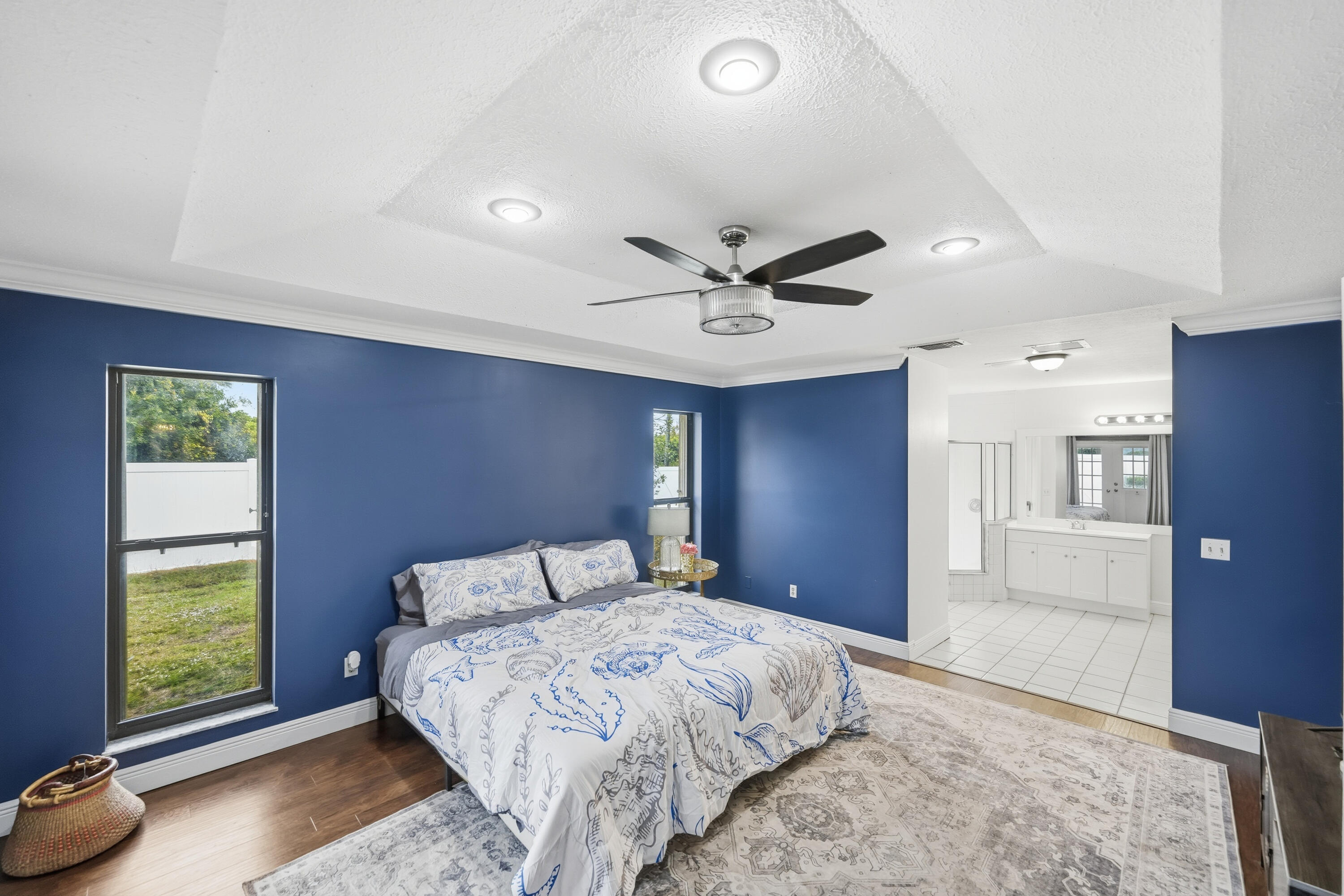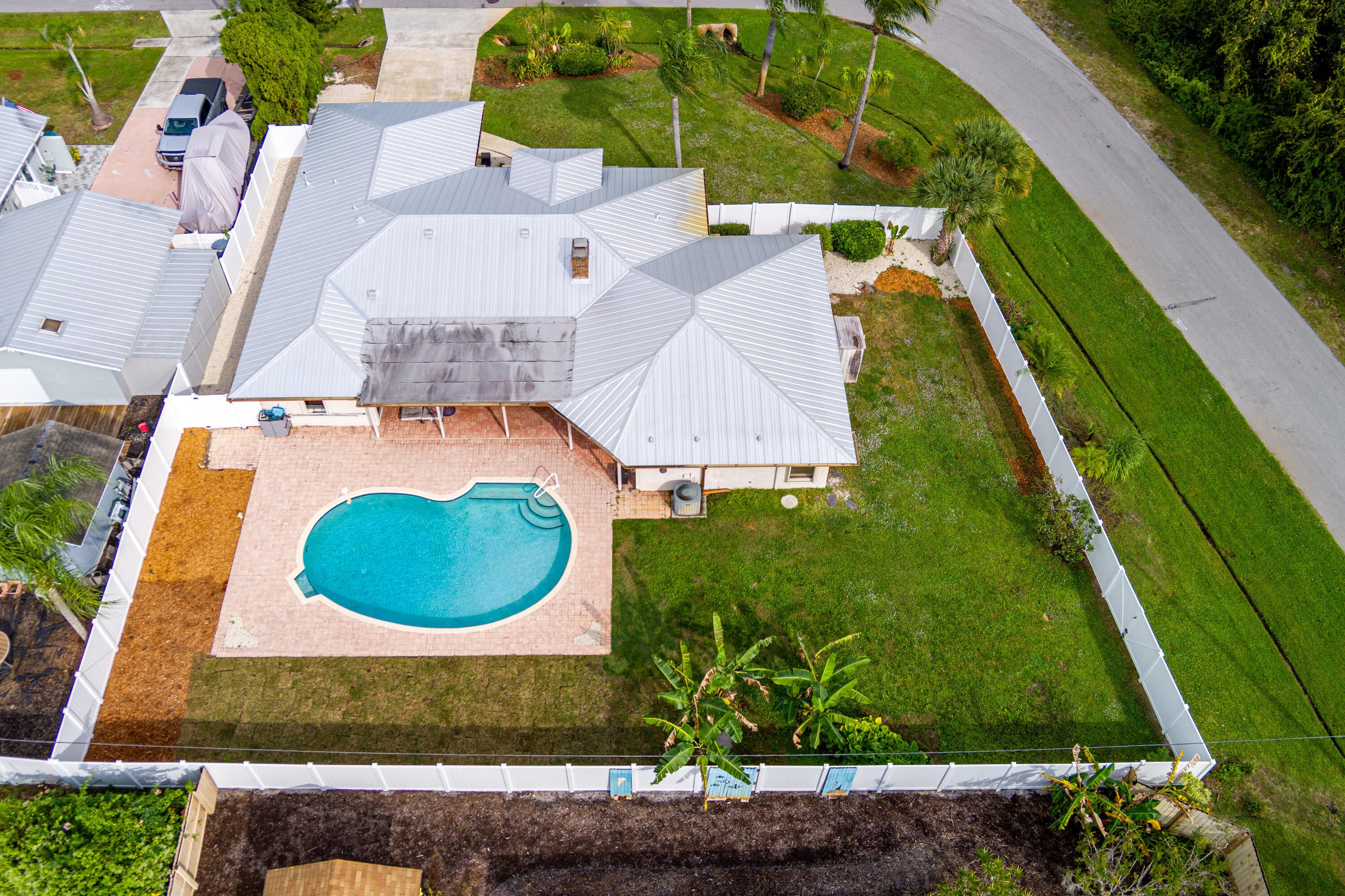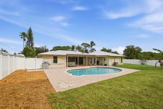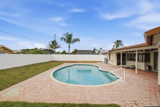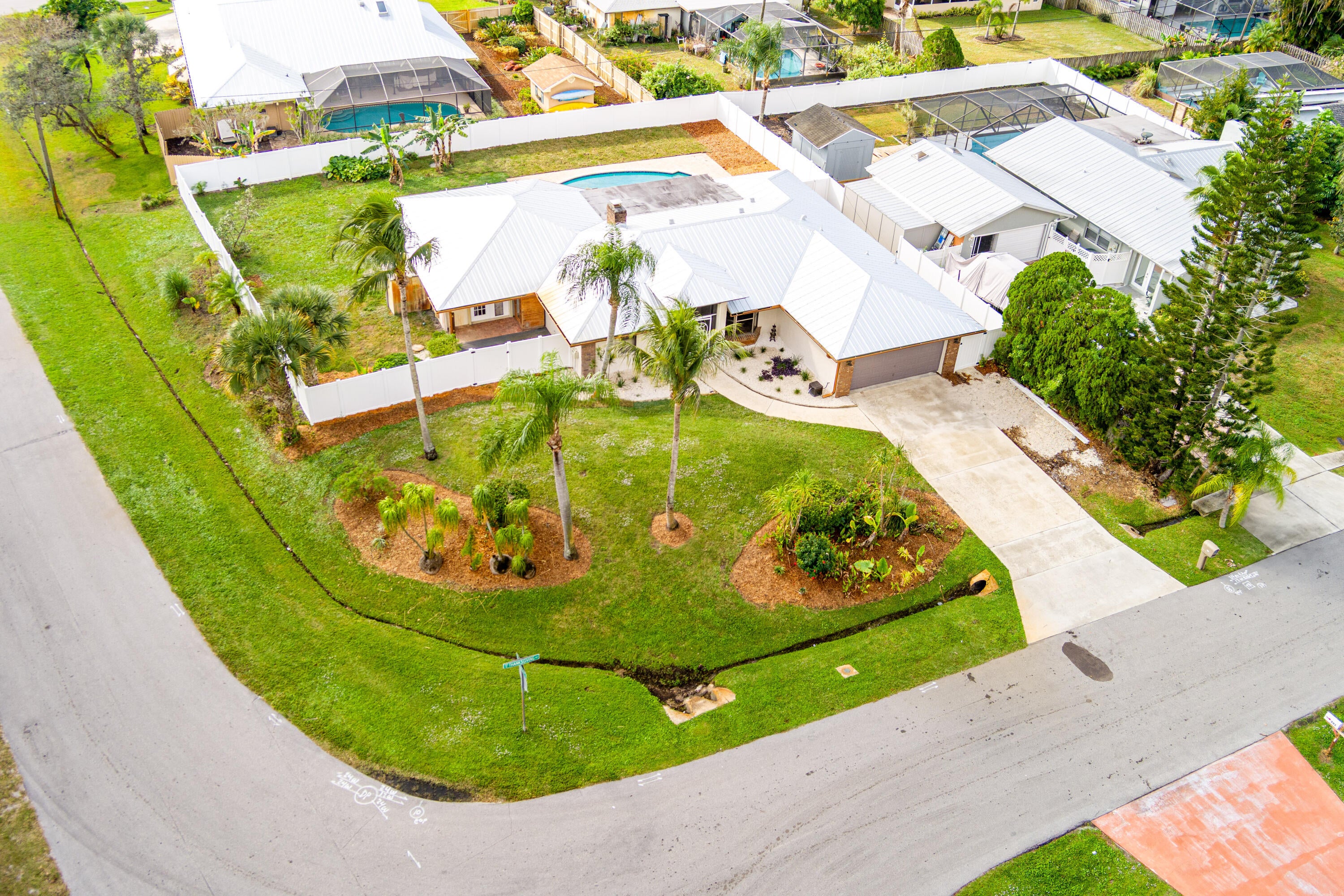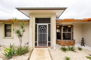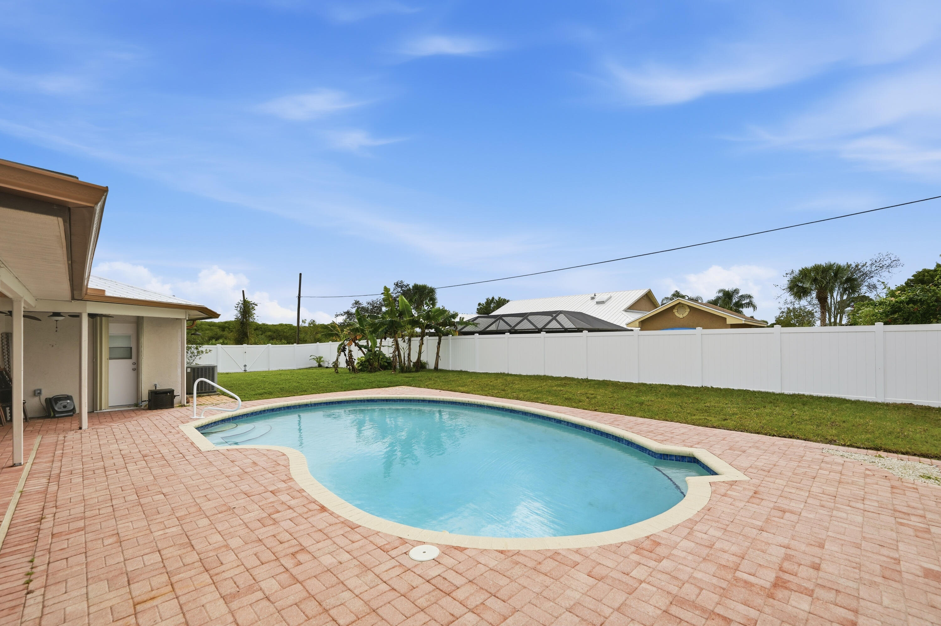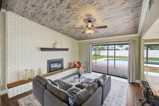 A beautifully maintained 3/bed, 3/bath Florida home, w/ a fully fenced corner lot a private pool & spacious covered patio. The home has city water/sewer, & a sprinkler system on a well. A hard-wired 30-amp exterior outlet for generator use or RV. The home has shiplap vaulted ceilings & wood laminate flooring throughout. The formal dining room leads to an upgraded kitchen featuring granite countertops & quality cabinetry, flowing into a warm great room w/ a fireplace. Oversized sliding doors open to the backyard, offering the ideal indoor outdoor living experience. Primary suite serves as a true retreat w/dual vanities, double rain-head shower, & an adjacent atrium sauna for spa-like relaxation. Both guest bathrooms have upgraded cabinetry, this home as stylish & functional.