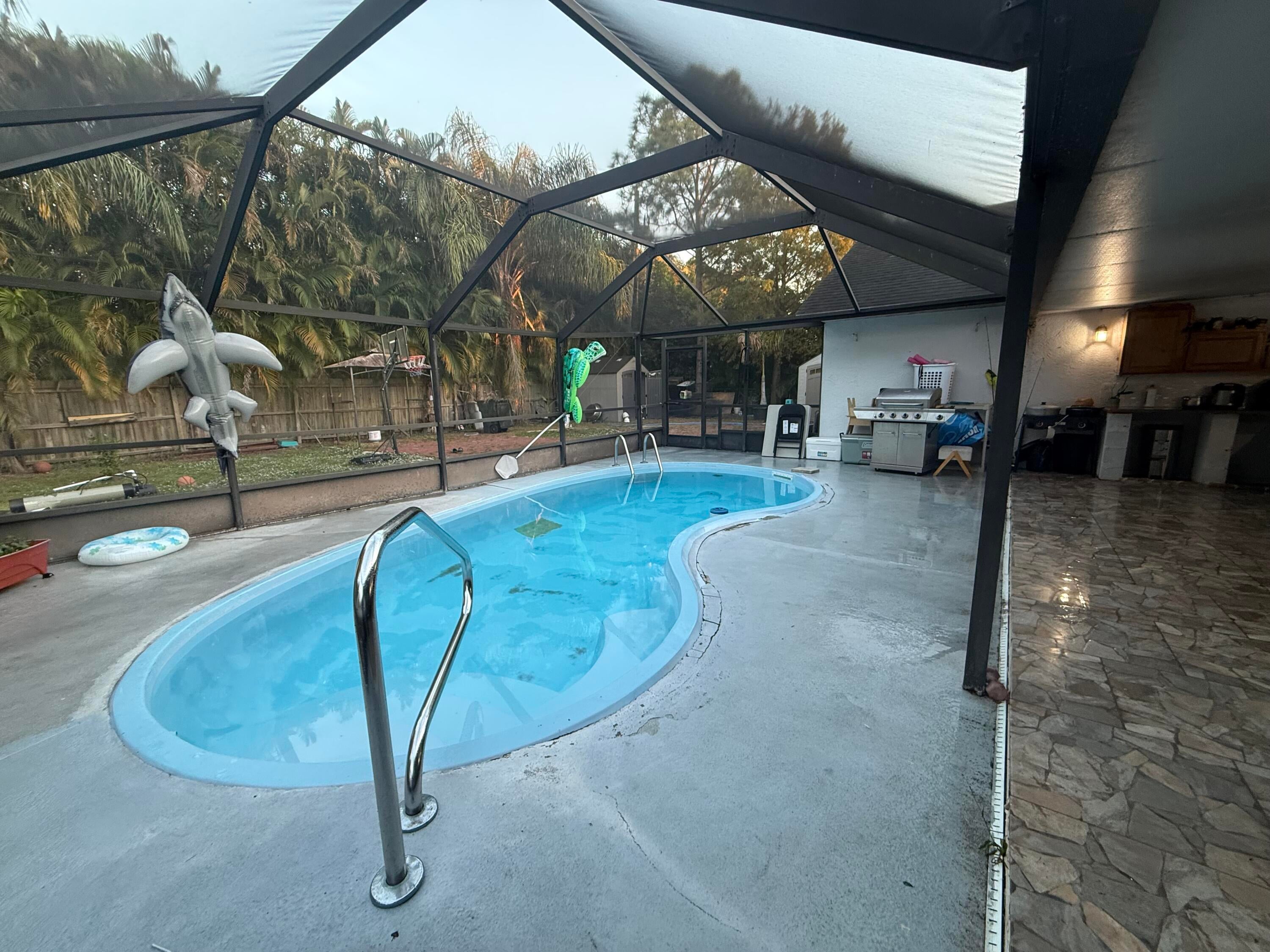 Beautiful Pool Home in the heart of the growing city of Port Saint Lucie. This lovely property features an oversized backyard mostly paved, screened pool, covered patio, recently updated kitchen, floors and bathrooms and the potential of an extra income producing unit, Solar Panels will be paid off at closing but buyers will be responsible for the connections of those. Don't miss out the opportunity to call this beautiful house ur''Home''.