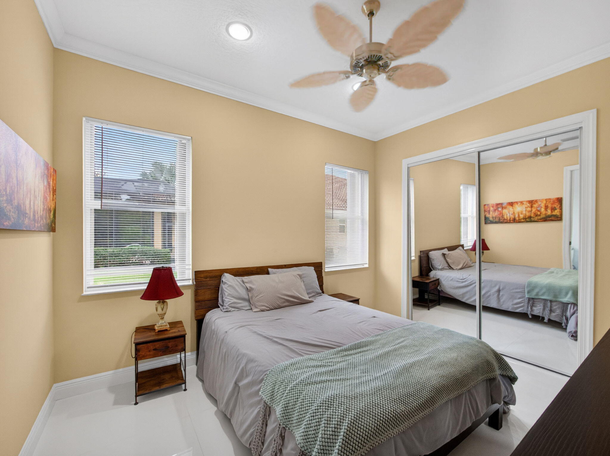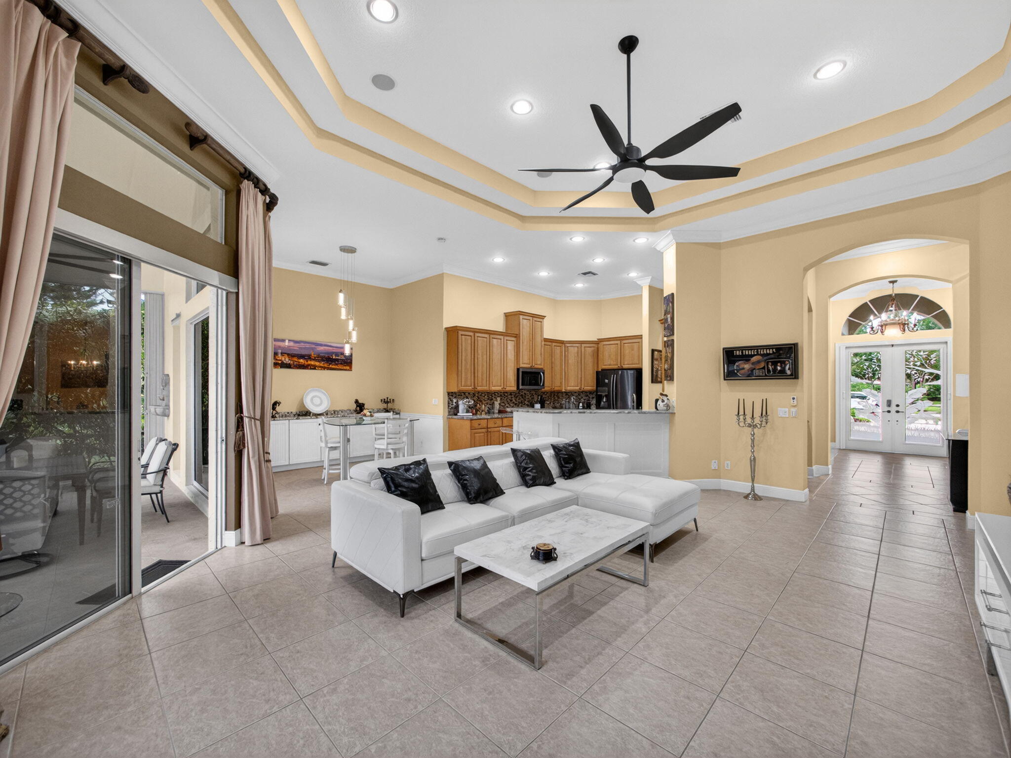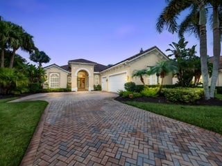 Set on a rarely available, uniquely private lot at the end of a quiet cul-de-sac near the front of PGA Village, this beautifully maintained 3-bedroom + office, 3.5-bath pool home offers an exceptional blend of seclusion, upgrades, and everyday convenience. Thoughtfully designed and meticulously cared for, the home delivers elegance, comfort, and functionality in a truly tranquil setting. The stunning kitchen showcases granite countertops, stainless steel appliances, and a bright breakfast area overlooking the expansive great room--ideal for both casual living and entertaining. Host memorable gatherings in the elegant formal dining room and impress guests with the custom designer bar.Timeless architectural details, including crown molding, picture-frame molding, and wainscoting, add refined character throughout. Each bedroom features its own private ensuite bath, providing superior comfort and privacy for family and guests. Step outside to your private pool retreat and enjoy the peaceful surroundings that make this lot so speciala rare find offering exceptional privacy with limited neighboring exposure. Despite its serene setting, the home is just minutes from premier golf courses, resort-style amenities, top-rated dining, shopping, and entertainment, as well as the vibrant Tradition area and everyday local conveniences.