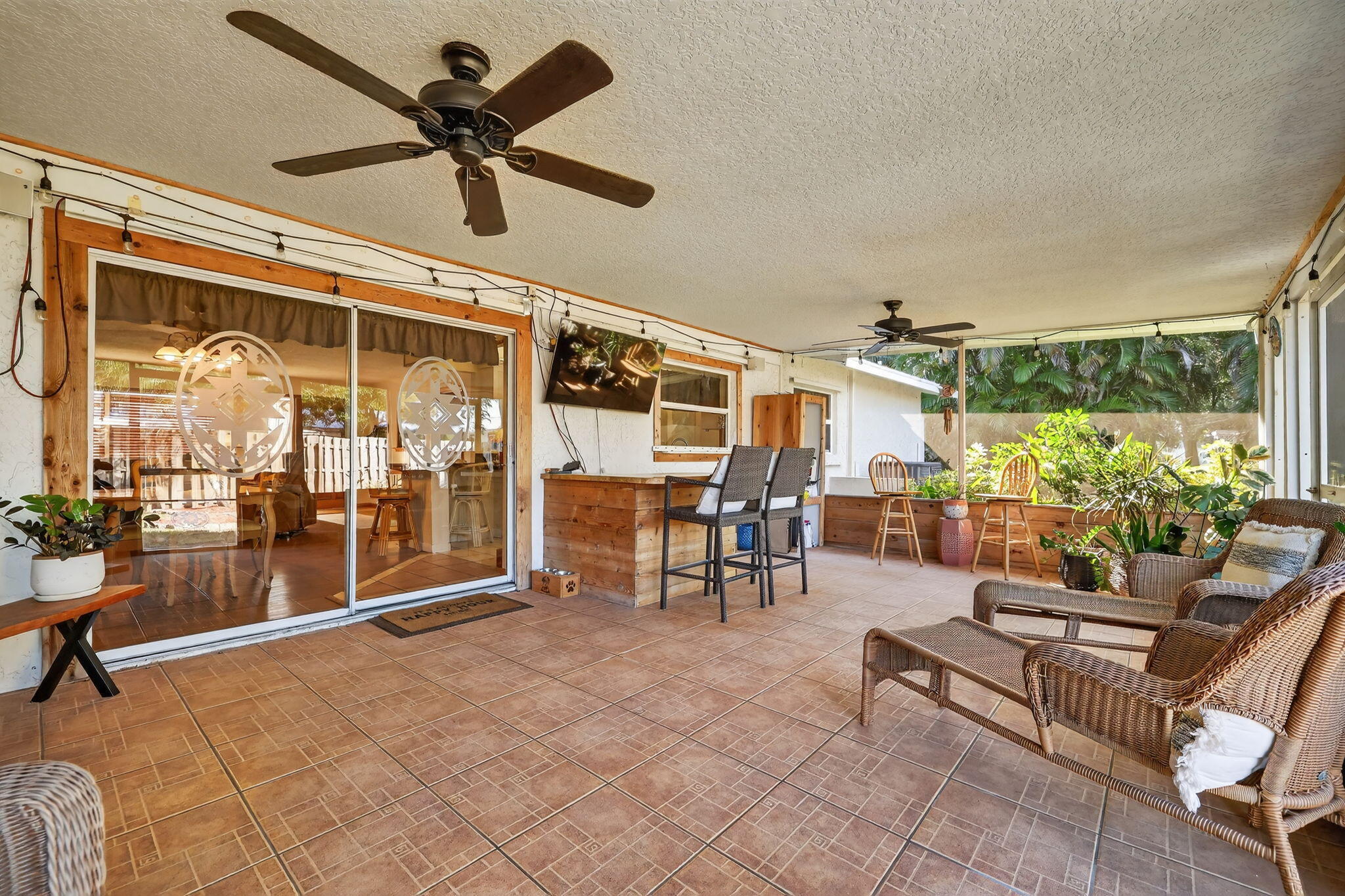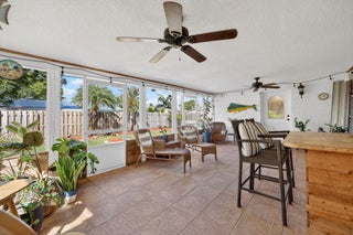 Spacious 3 bedroom, 2.5 bath home with Bonus Room & 1.2 bath (240 sq ft) perfect for office, studio or fitness room. Open floor plan with huge galley kitchen, loads of counter space and snack bar area. Desirable split bedroom plan. Tile and laminate flooring throughout. Screened patio (360 sq ft) overlooking fenced yard perfect for entertaining with built in bar area. Tucked back in the Coral Gardens neighborhood conveniently located in South Stuart just west of US1. 10 minute drive to I-95, 15-20 minutes to the beach. Storm panels complete.