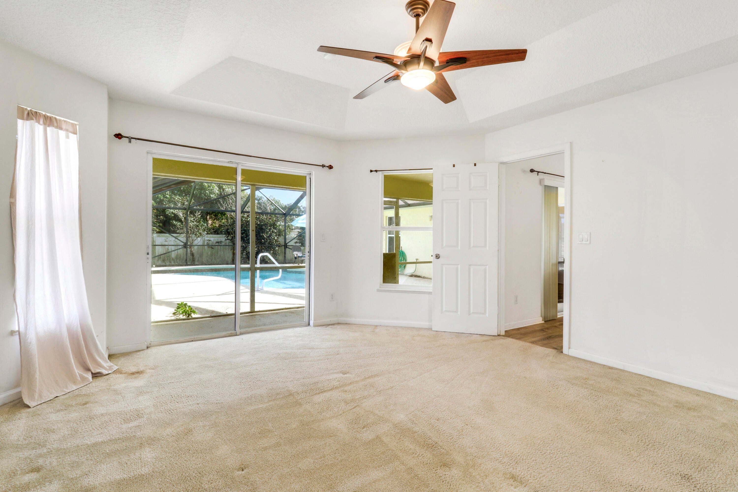 Discover this charming 3Bd, 2Ba Pool Home in the Whispering Pines area of PSL. Situated in a quiet residential neighborhood with NO HOA. This spacious CBS home features all of the must-haves in design and comfort and is the perfect canvas to improve to your ideal specifications. Beautiful open layout feat. laminate flooring and tile in common areas. Split bedrooms, separate living and dining areas, and interior lanudry room. Generous primary bedroom with dual closets and an attached bath with separate shower and tub. Covered and screened lanai overlooks enclosed heated, salt chlorinated pool. Partially fenced yard. 2021 roof, 2025 W/H. Complete hurricane shutters, paver driveway, new garage door opener, double front entry storm doors. Excellent value!