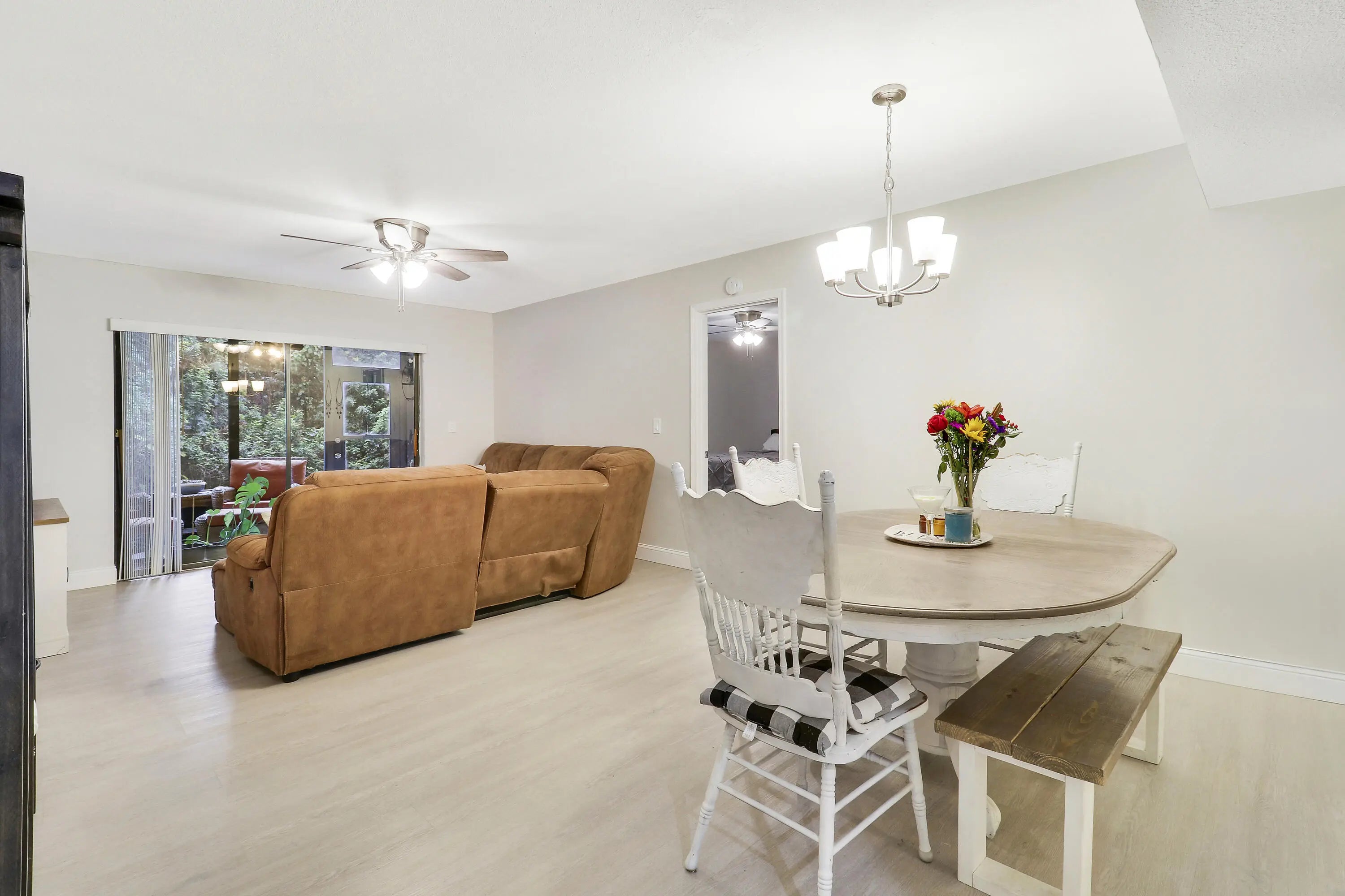 Two master's with on-suite baths! Full 3 bedroom, 3 bathroom remodeled condo. This 1st floor spacious condo that backs up to a beautiful wooded area with extra large newly screened patio. Completely gutted & remodeled in 2022 with newer appliances, washer & dryer, water heater, vinyl plank floor, quartz counter tops, knockdown ceiling texture, partial impact windows, new plumbing, new electrical(all receptacles, switches, fixtures) throughout, newly painted interior & exterior, resurfaced parking lot, newer roof, move in ready. Owner is a licensed real estate broker. Investors Welcome tenant in place paying $2250/m willing to stay or move for owner occupant.