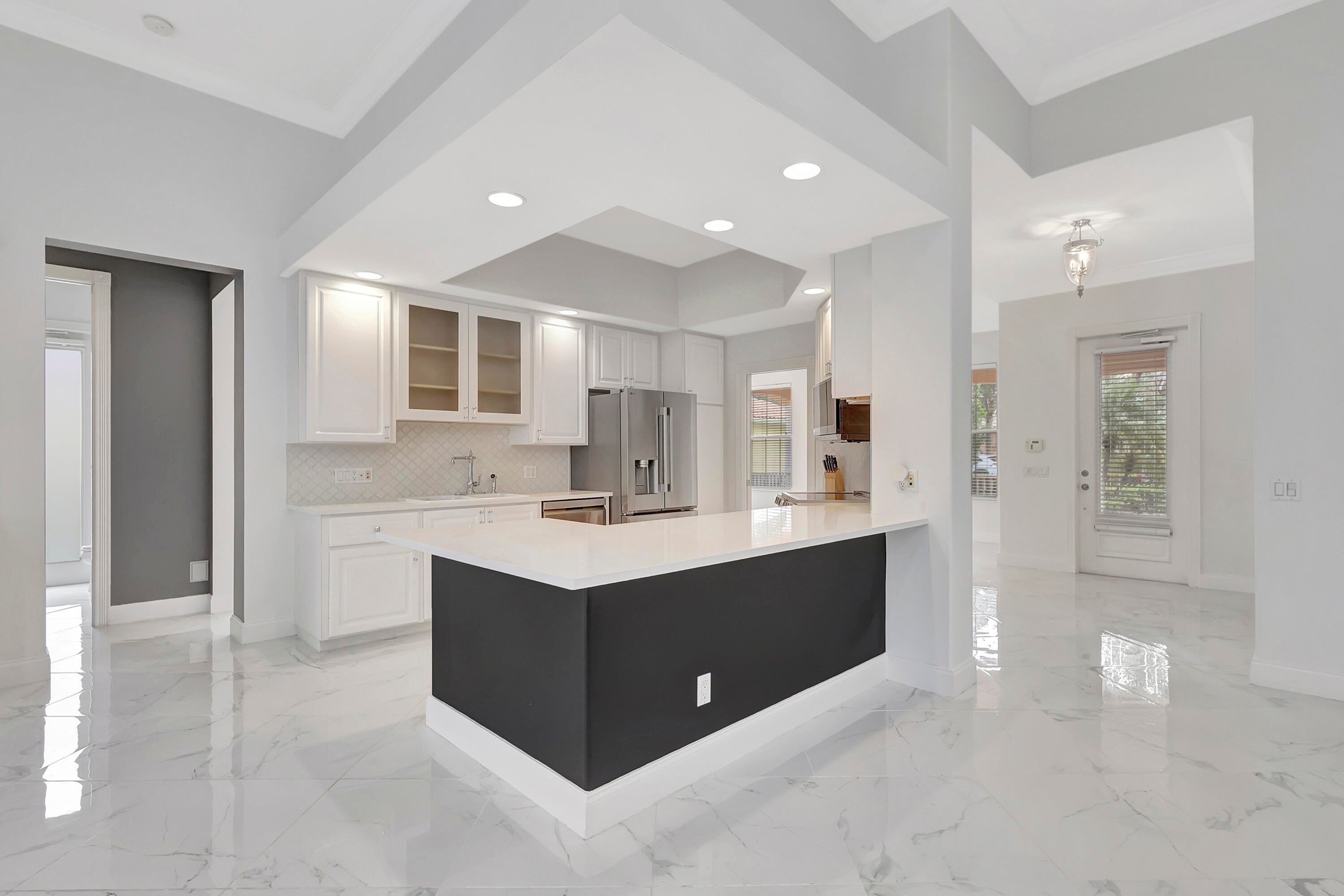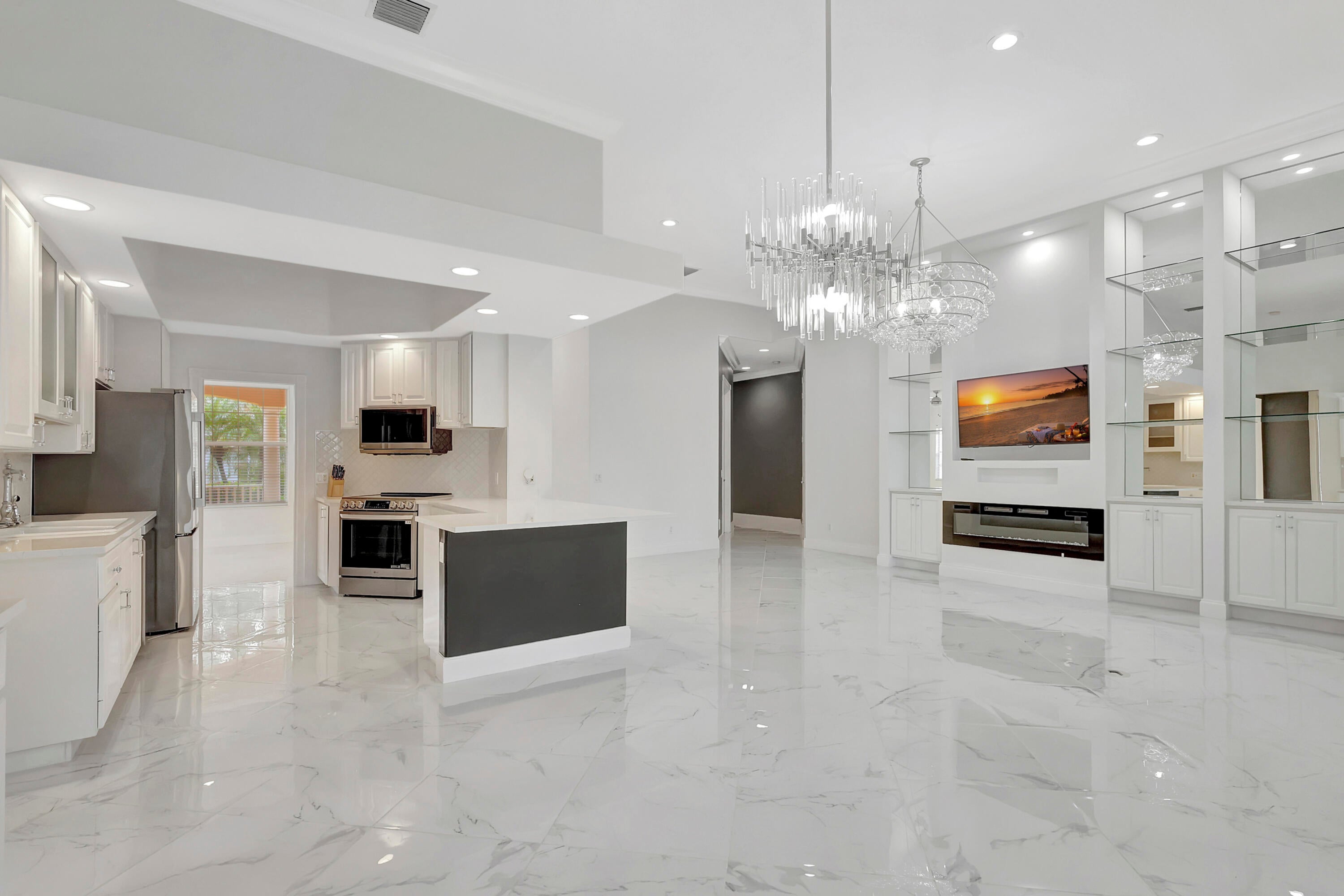 Experience elevated living in the prestigious Village of Tradition. This stunning 3BR/3BA lakeside residence offers a sophisticated resort lifestyle with modern refinements. The interior features brand-new flooring throughout, elegant upgraded light fixtures, and a spacious layout including both a formal living room and a family room. Cozy up by one of two fireplaces (one decorative) or cook in the fully updated kitchen, complete with all appliances. Step outside to your screened patio to enjoy serene and peaceful water views. Perfectly situated for convenience, this home is walking distance to vibrant shopping, dining, and events in Tradition. It is ideally located near Cleveland Clinic and Clover Park (Mets Stadium), with quick access to I-95 for easy commuting north and south.