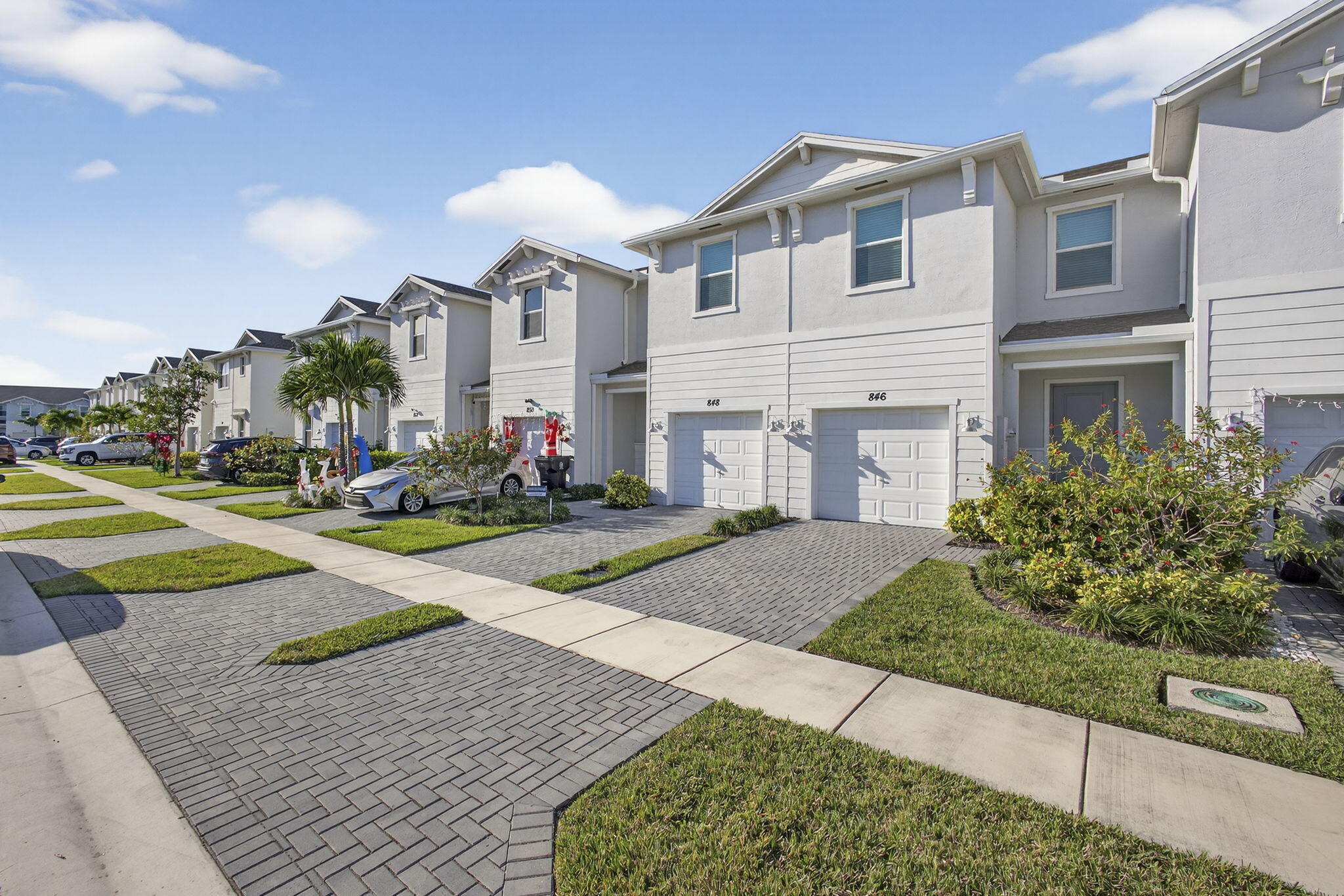 Welcome to Veranda Landing! Be the first to live in this NEW 3 bedroom, 2 1/2 bathroom townhome, ideally located just off Becker Road and adjacent to the new hospital. The kitchen is beautifully appointed with contemporary cabinetry, sleek countertops, and ample storage, opening to the dining and living spaces for modern living. Upstairs, the spacious primary suite offers a private retreat with a well-appointed ensuite bath and walk-in closet while two additional bedrooms provide flexibility for guests, a home office, or family living. Enjoy the convenience of having a washer and dryer upstairs.Veranda Landing is a gated community located behind the Shoppes at Veranda Falls and 1 mile from the FL Turnpike. The community offers a pool and cabana seating. Welcome home!