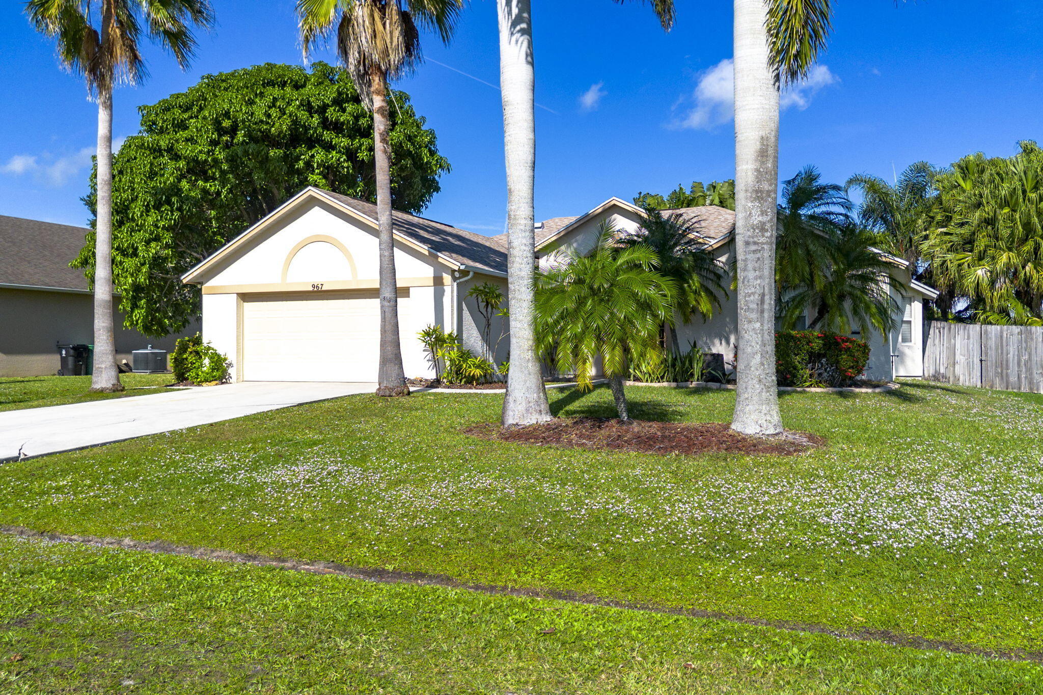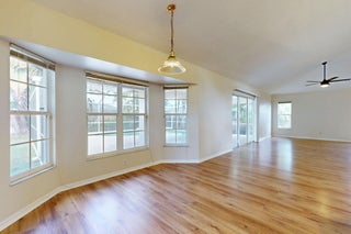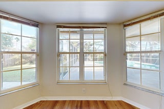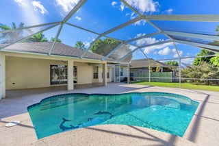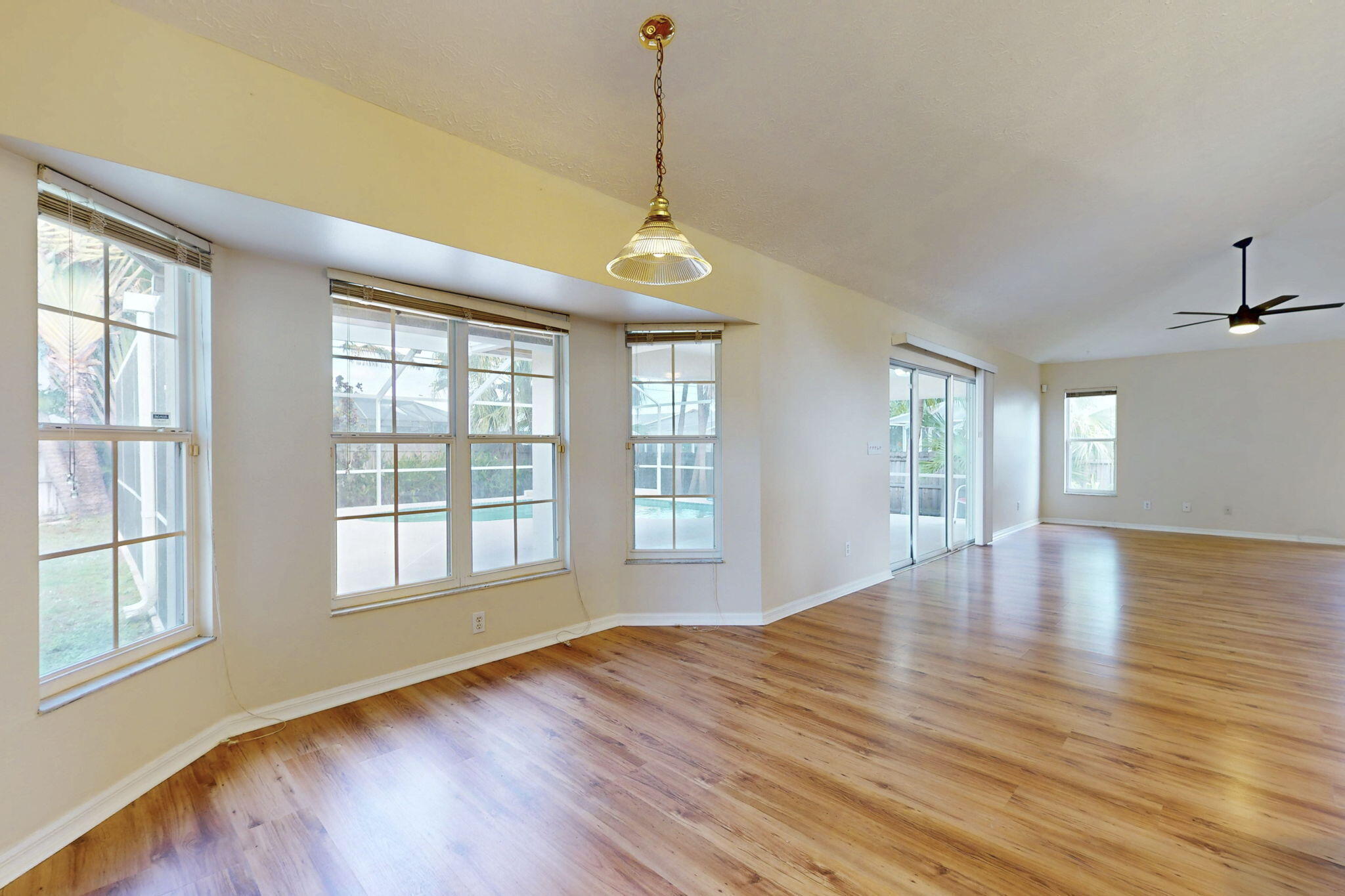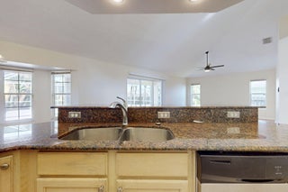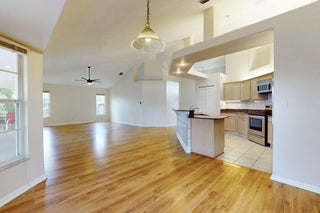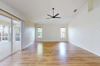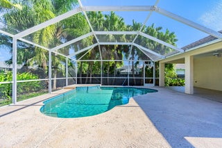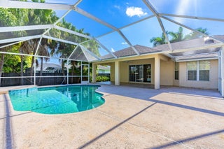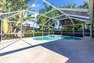Fantastic CBS 3-bedroom, 2-bathroom, 2-car garage home featuring a screened pool, wood privacy fence, and an expansive patio. Enjoy the open split plan with vaulted ceilings, wood cabinets, granite countertops, and stainless steel appliances in the kitchen. The main area boasts wood laminate flooring, and the kitchen is illuminated by a skylight. The living room and dining room area overlook the pool, surrounded by lush landscaping and fruit trees. Rent includes lawn care, pool care, and maintenance. Dogs under 20 lbs are welcome (maximum of 2), but no cats allowed.