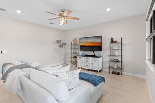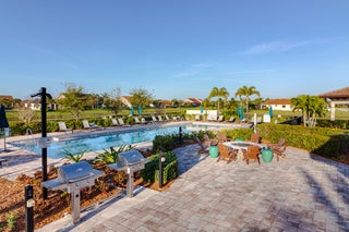 CDD is PAID OFF! Saves you thousands a year of taxes!! Welcome Home to this beautiful 3 bedroom 2 bath home located in Veranda Gardens! Everything has been upgraded from the floor to ceiling. Including 12x24 floor tile throughout, upgraded shower tile, quartz countertops, custom closet features, attic fan, attic stairs to pendant lighting, fans and blinds throughout! IMPACT WINDOWS & Hurricane rated glass front door. Some exterior features have also been upgraded! Extra wide paver driveway, fully fenced backyard along with an extended rear patio deck perfect for entertaining! Veranda Gardens has resort style amenities including a Clubhouse, heated pool, spa, lap pool, cabanas, tennis, pickleball, basketball, bocce ball, fitness center, community room, playground, dog park & sidewalk