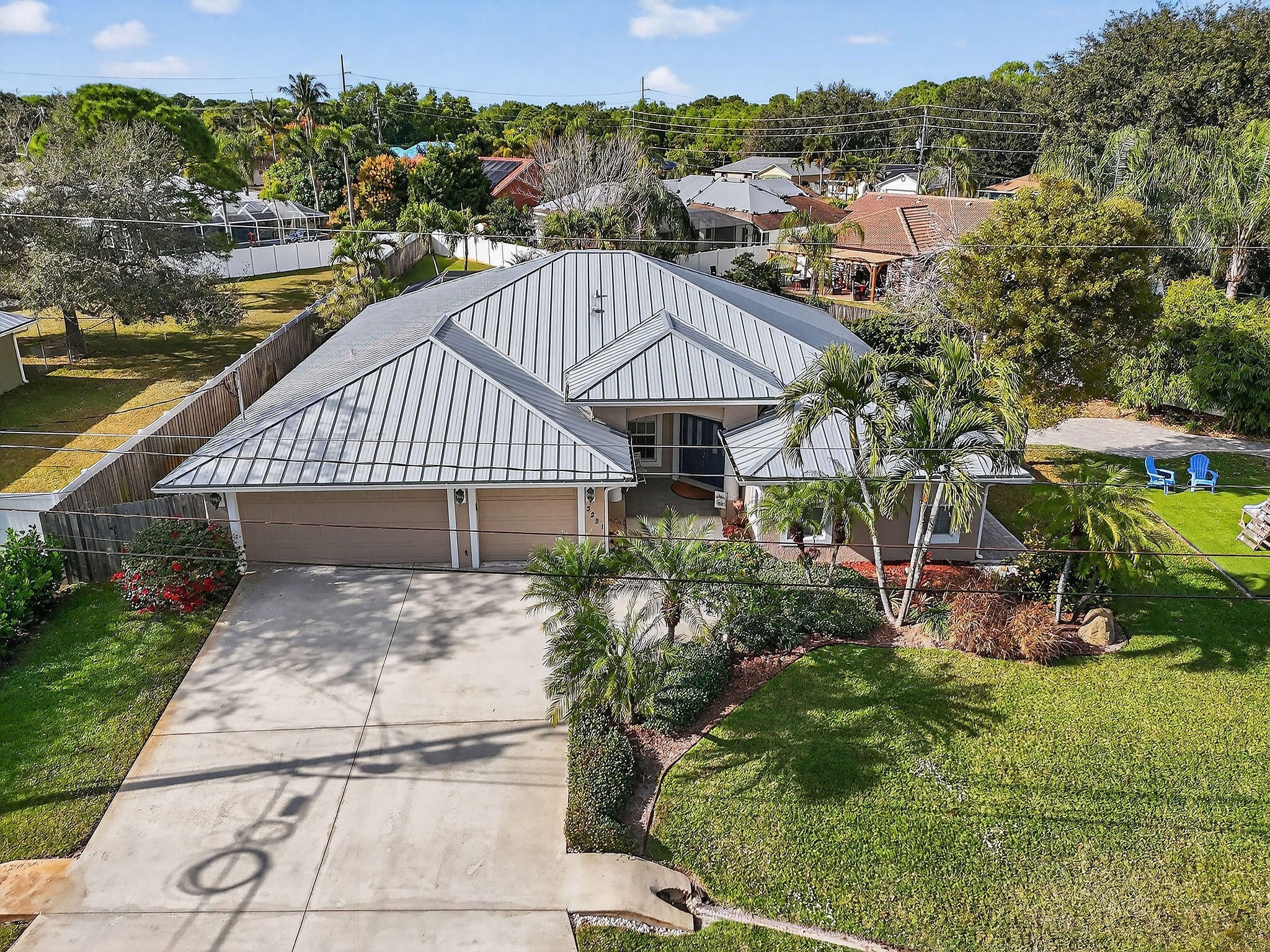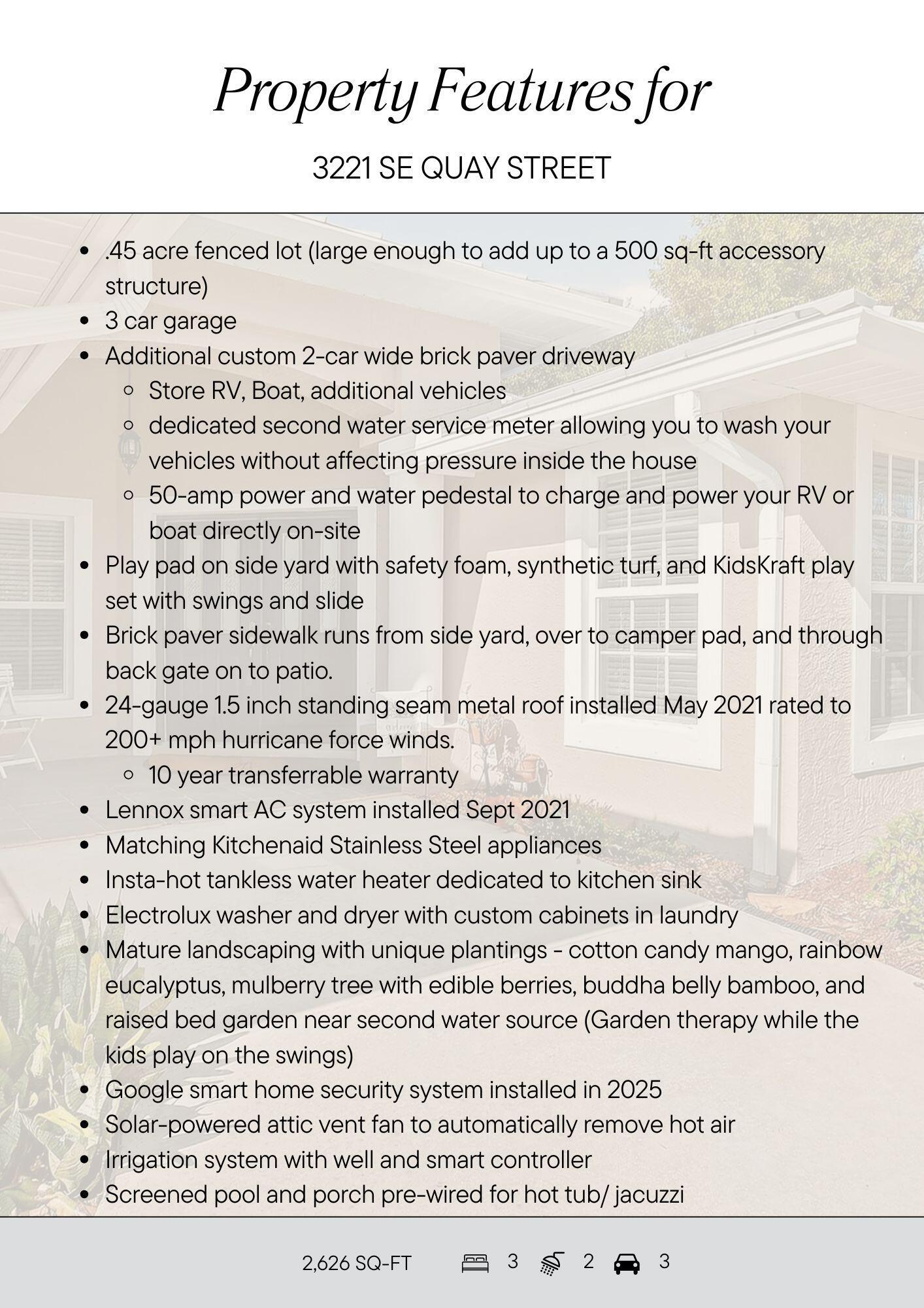 This Southbend home in central Port St Lucie has unique upgrades you won't find elsewhere. The CBS home is a split floor plan with three bedrooms, an office, and a front room den. The spacious kitchen looks out to the screened pool in back. The yard is fenced and the lot is almost half an acre. Upgrades include a roof replacement in 2021 with 24-gauge metal, transferrable warranty. AC replaced in 2021. Second paver driveway addition with dedicated 50amp electrical and second water meter allows for storing a boat and RV or additional vehicles. There is a play pad built with safety foam and synthetic turf located on the side yard surrounded by a garden and additional paver pathways. An Instant Hot water heater was added in the kitchen. Laundry room has custom cabinet and counter upgrade.Southbend is a great location in Port St Lucie. Ride your bike down to the community park and enjoy the new playground or stroll around the pine-tree lined sidewalks. At the entrance of Southbend is the C-24 Canal boat ramp park where you can launch your boat. Travel south to Becker Road and the Veranda Falls Shopping plaza has a Publix grocery store and a host of other shops and services. Simple access to the FL Turnpike for the commuters makes this location ideal. Visiting Martin County is also an advantage with the scenic back roads through Palm City.