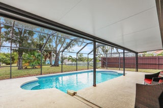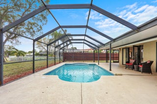 Opportunities to own a pool home on a HALF-ACRE lot in Port St. Lucie are increasingly rare, especially in the heart of coveted Sandpiper Bay! With no HOA, this property offers exceptional space, privacy, and endless possibilities for outdoor living, future enhancements, discreet storage for a boat or RV, or simply the luxury of elbow room.The beautifully renovated interior is designed for effortless living and comfortable entertaining. Natural light pours through wide French doors, illuminating the open great room and enhancing the home's bright, connected layout. Anchoring the space is a crisp white kitchen featuring granite countertops, a generous center island, Frigidaire stainless steel appliances, deep drawers, and bar seating that easily transitions from casual mornings torelaxed gatherings. The spacious living area opens to a screened lanai with a crystal-blue pool and covered patio, creating an inviting extension of the home that can be enjoyed year-round. A flexible den with an ensuite bath and private entrance offers excellent versatility as a home office, flex space, or small guest suite. The owner's suite provides a comfortable retreat with double closets and a beautifully renovated bath featuring dual sinks and a frameless tile-surround shower with a built-in bench. An attractive scalloped architectural shingle roof adds both durability and character. Ideally located just minutes from riverfront parks, golf, dining, and area beaches, this property delivers privacy, land, and style without HOA fees or restrictions. Offered at $600,000, the renovations, pool, half-acre homesite, zero HOA, and move-in-ready condition set this property apart from the rest of the market.