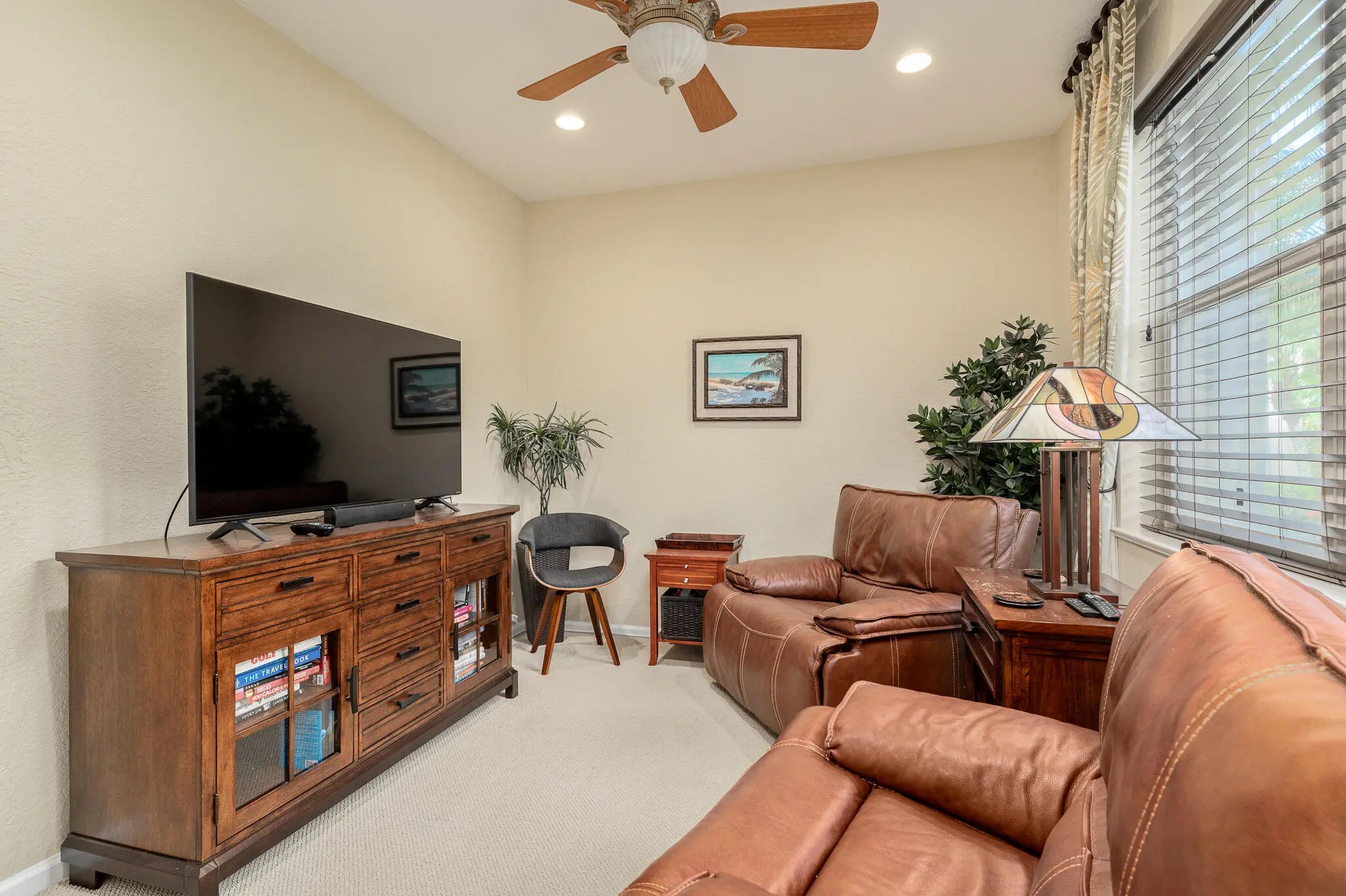 Villa for sale, first floor furnished villa with 2 bedrooms, den, 2 bathrooms and 1.5 car garage with an open floor plan. Screened lanai overlooks preserve offering privacy. Community is manned gated, with Jack Nicklaus Signature Golf Course and 67 slip Marina located on the St Lucie River. Memberships are available but not mandatory. Slips are available to purchase or lease. HOA fee covers insurance on building, lawn care, irrigation, cable, internet, and security. Located in the Sandpiper area of Port St Lucie, close to beaches, shopping, restaurants, all making this the place you will love to ''Call Home''.