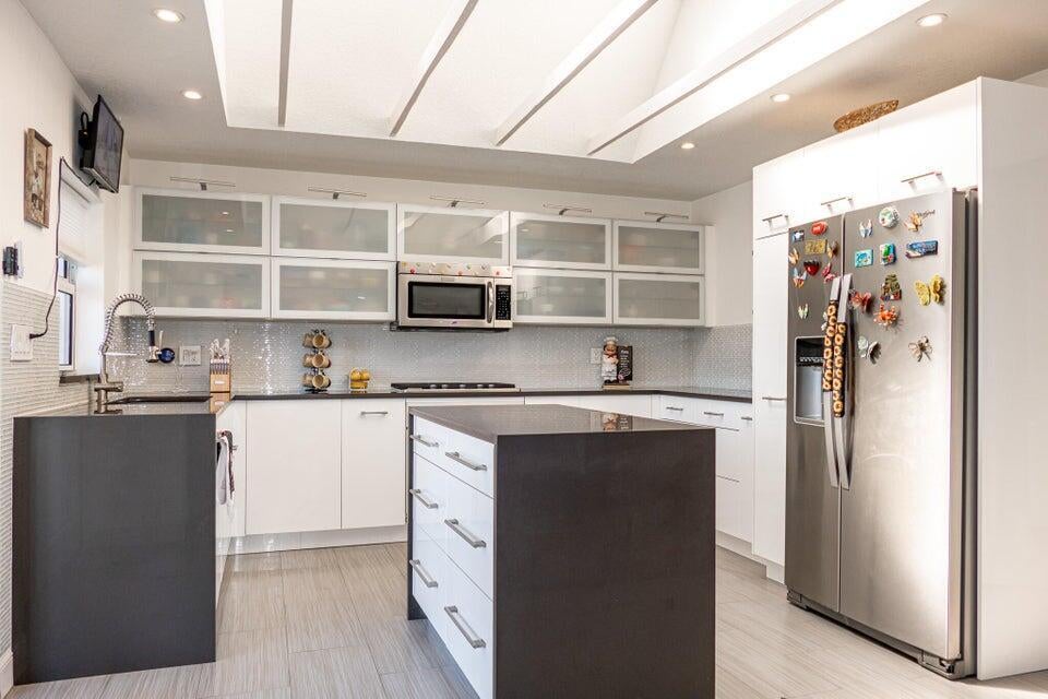 WELCOME HOME to this fully updated POOL HOME conveniently located in the heart of Port St. Lucie! BRAND NEW ROOF! NO HOA! This home is move in ready and has it all! 3 bedrooms, 2 bathrooms, 1 car garage with expanded driveway for extra parking for your boat, RV, or both! Upon entering the home, you'll notice the cedar plank volume ceilings, as well as an open living concept going into the amazing kitchen! Gas stove, skylights, quartz countertops are all a part of this updated kitchen! The backyard is a true TROPICAL OASIS, with a huge covered patio leading to the pool, great for entertaining! This home also has IMPACT WINDOWS throughout! Home also has security cameras and sensor system free of monthly payments! Just 15 minutes to the beach!