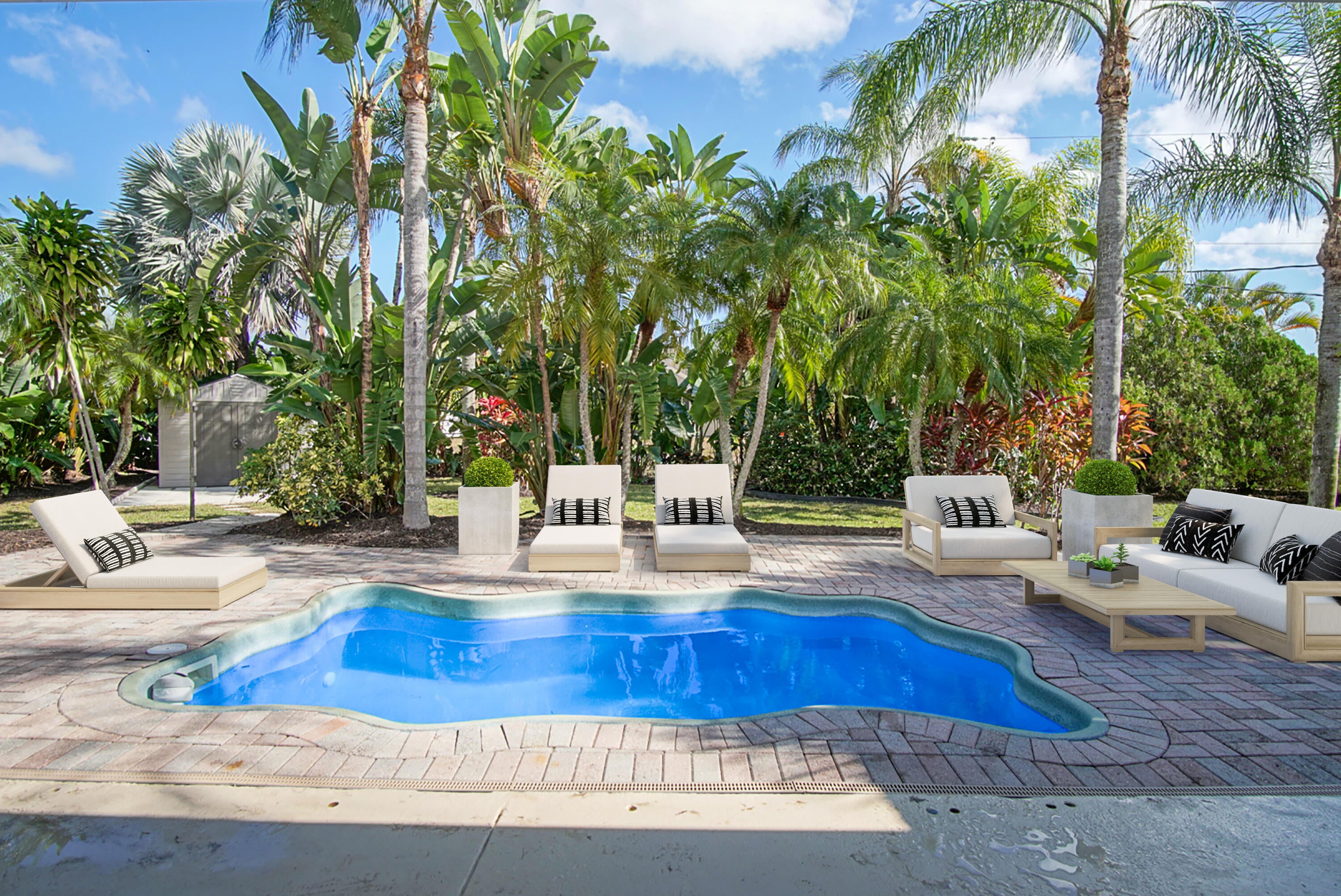 BIG PRICE CUT! GORGEOUS 3/2/2 CBS HOME ON OVERSIZED, FULLY FENCED LOT FEATURING MATURE LANDSCAPE. LANDSCAPING PROFESSIONALLY FINISHED IN JANUARY 2026. COMPLETELY TILED THRU OUT WITH A SPLIT FLOOR PLAN, CATHEDRAL CEILINGS, AND SO MUCH MORE. INTERIOR PROFESSIONALLY CLEANED AND PAINTED. PRIMARY BEDROOM FEATURES LARGE WALK IN CLOSET AND SPACIOUS BATHROOM. WALK OUT BACK TO THE POOL SURROUNDED BY NEWER COVERED PATIO AND PAVER DECK. SHED IN THE BACK YARD FOR EXTRA STORAGE. METAL ROOF 2020. AC 2020. THIS HOME IS A MUST SEE. MOVE IN READY!