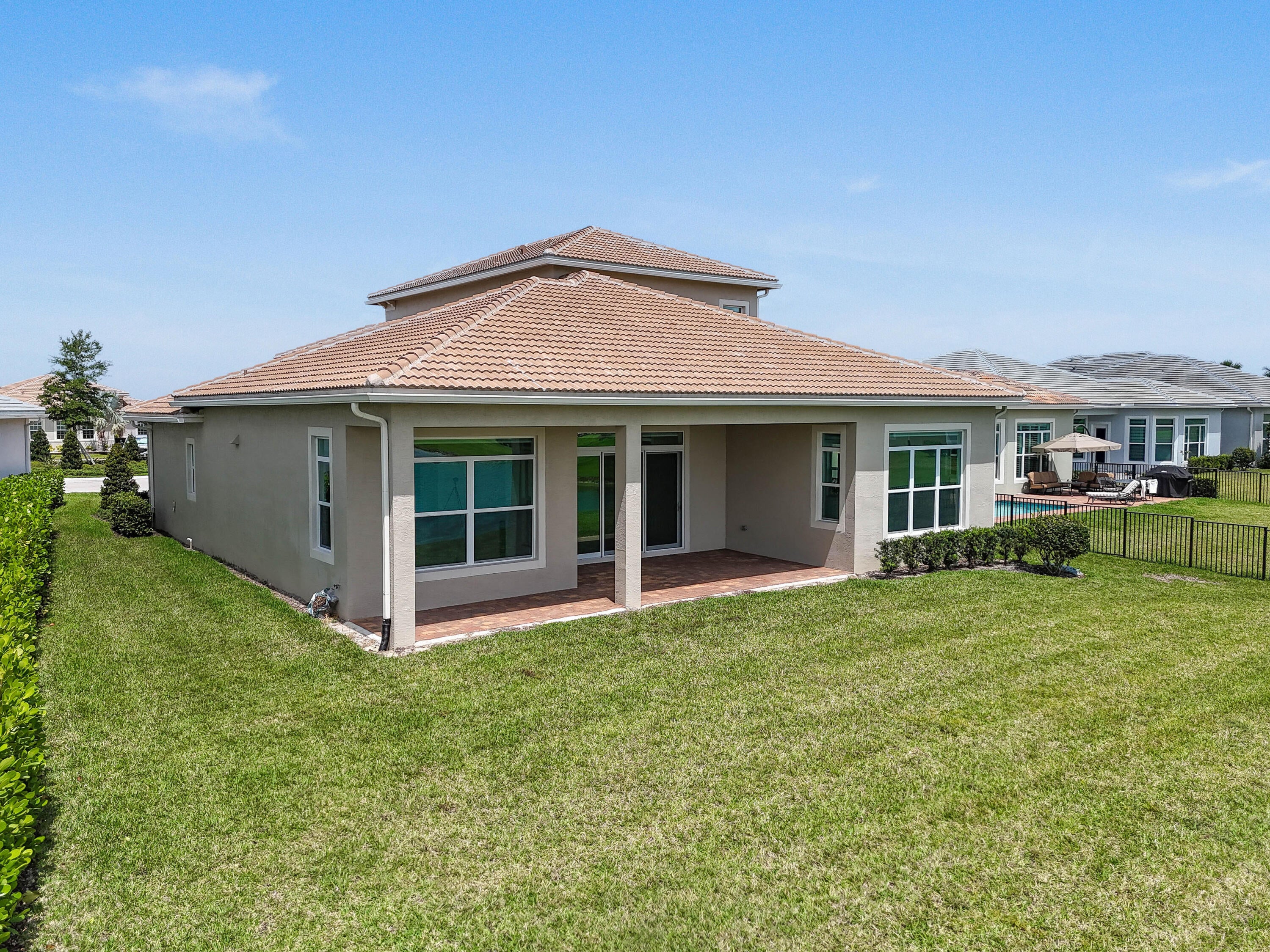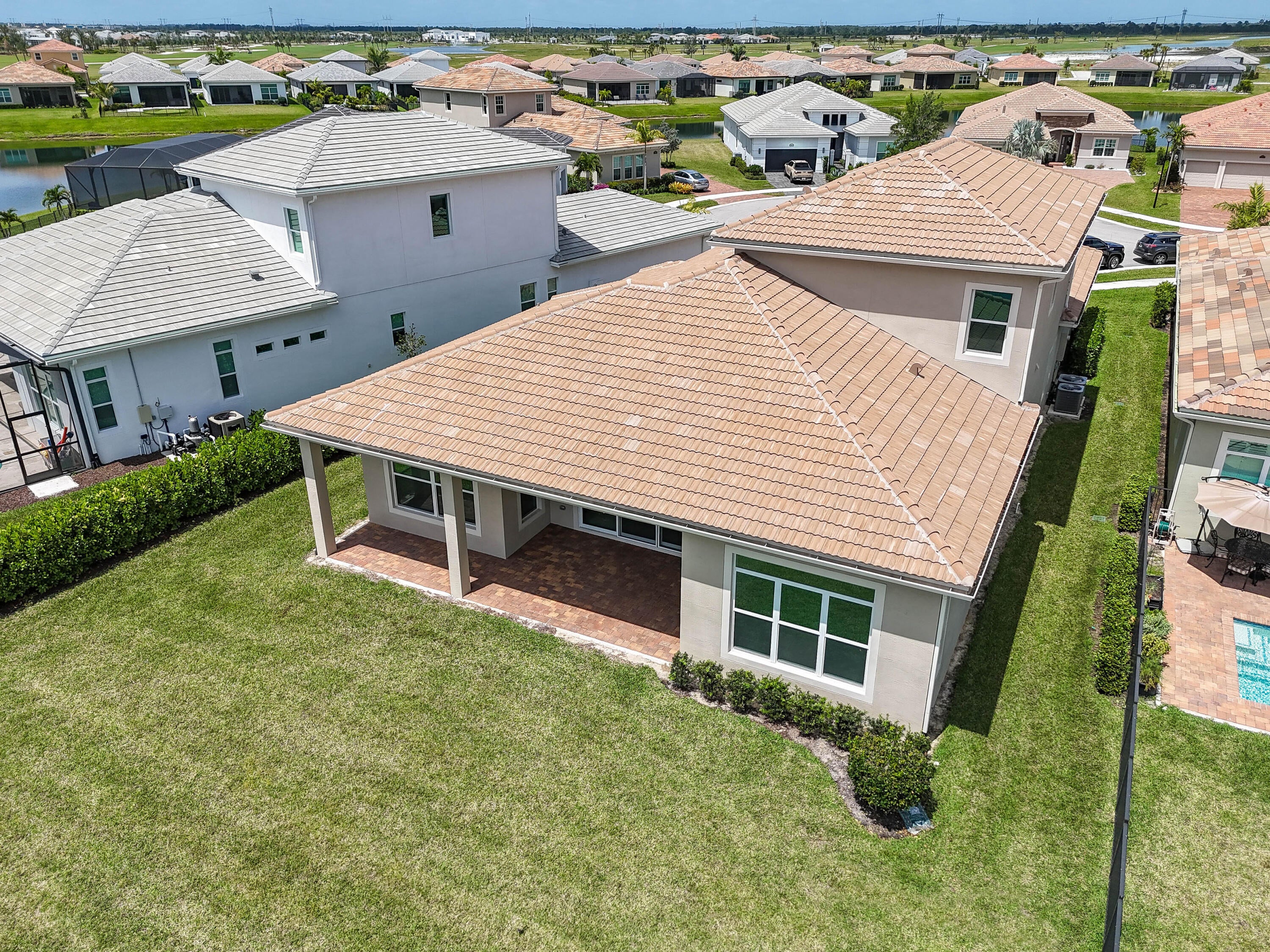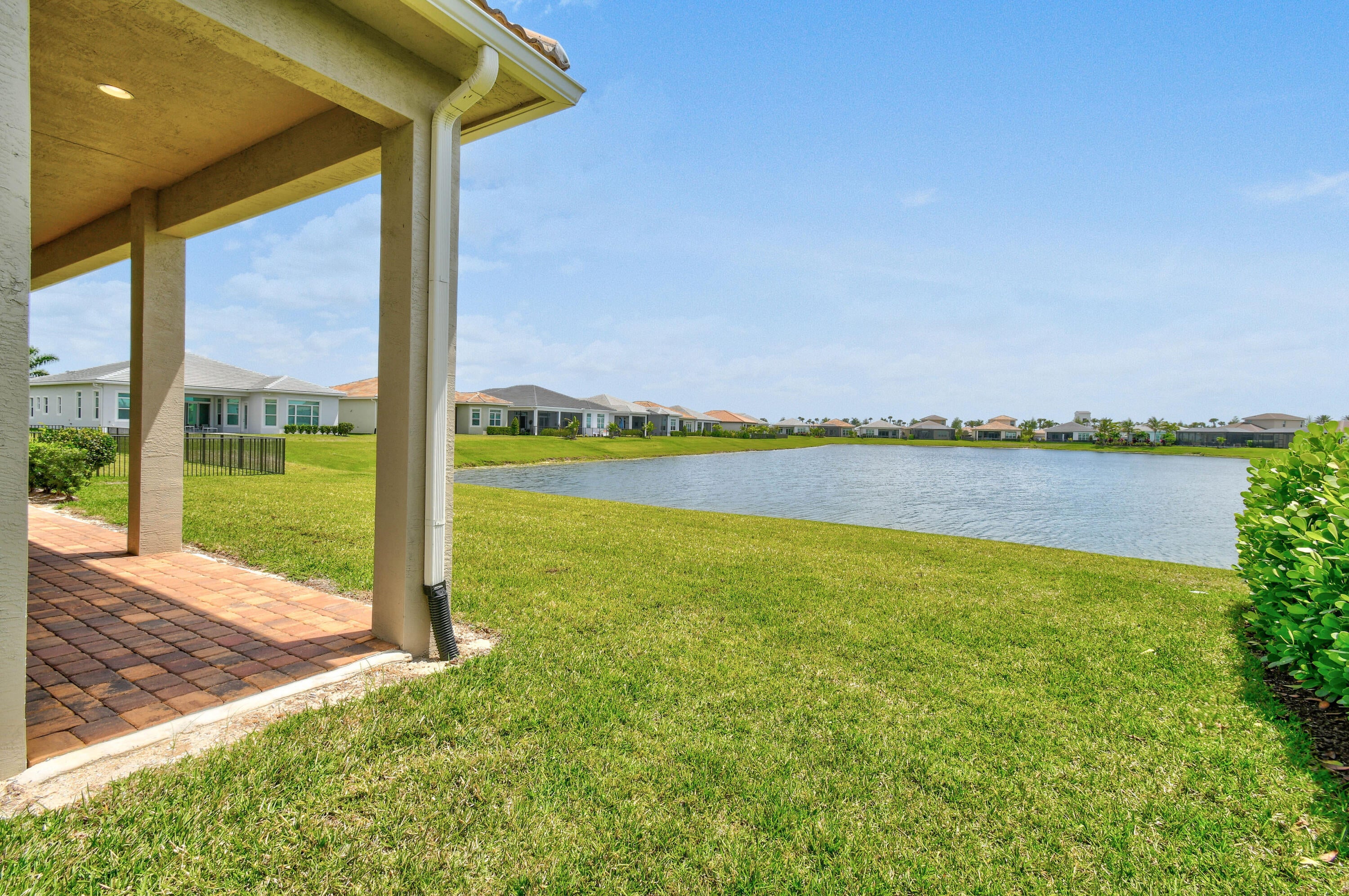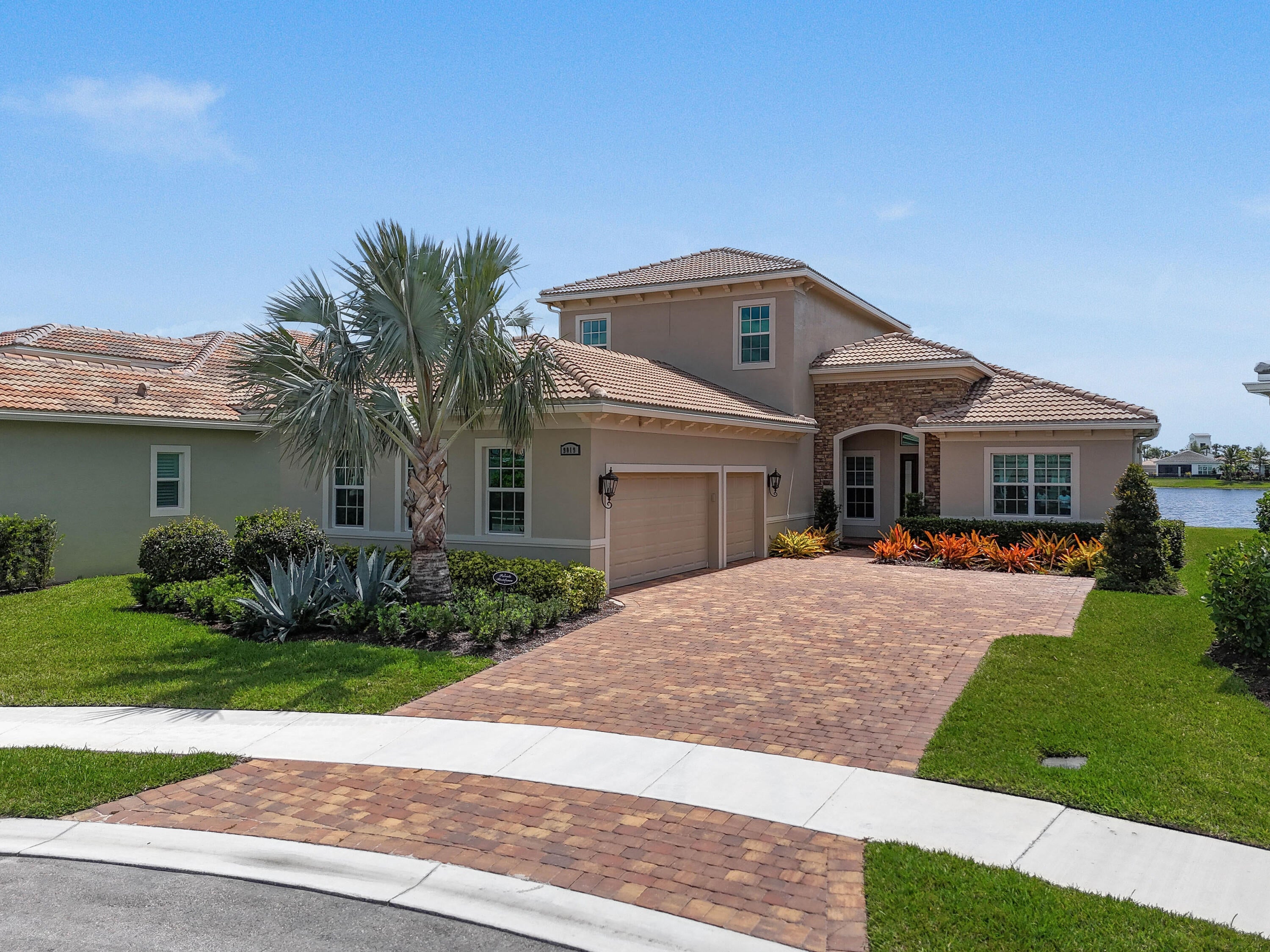 Better than new! 4 BR 4.5 BA with den, bonus room and 3 CG. This newly constructed CBS Home in the spectacular Verano PGA community is truly a masterpiece. Offering a premium lake front location and located on a private cul-de-sac, this Kolter Dulce model is one of a kind. Live the resort lifestyle in this private gated community with perhaps one of the most prestigious HOA clubhouse offerings on the Treasure Coast. This place is like no other ! Please see addenda for all of the details that make this home one of a kind !This great location offers easy access to the state of the art Traditions medical center, shopping, schools and only minutes to I95 via the Crosstown Pkwy. You are also just a short drive to the Traditions PUD, offering many dining options, shops, big box stores, and an environment with that town center feel. The community of Verano features an elegant Mediterranean style, gated entrance with a manned guardhouse for added security. Enjoy the 13,000 sq. ft. Club Talavera fitness center with indoor and outdoor pool, Lifestyle and Activities Director, tennis courts, 27 pickle ball courts, weight room with cardio equipment, aerobics room, saunas, massage room, and luxurious locker rooms within a short driving distance of your residence. This community offers a Full-time Lifestyle & Activities Director and a wide array of social and wellness programs. The 27,000 sq ft Social Clubhouse at Club Talavera includes a billiards room, card room, art studio, library, lifelong learning center, lounge, banquet hall, and so much more. As part of the PGA village of communities you will have access to 3 award-winning courses, and all that they have to offer in the PGA village golfing and sports complex. There is a golf cart path to the PGA Golf Club which offers 3 Public Championship Golf Courses and Private Course (membership optional). HOA includes: Lawn Care, exterior pest control, cable, high speed internet, alarm monitoring & 24 hour manned gated security. This community was built completely with underground utility services and has rarely lost services due to inclement weather. This amazing home is situated on a premium lot with, breathe taking views in every direction.. You will entertain year round with your private patio boasting 11 foot ceiling, and overlooking the expansive water feature for added privacy. The spacious backyard has room for a pool, and the seller has already prepared these pool plans in the event a new owner is ready to build it. Interior features include: 24" white porcelain tile flooring throughout, Full Impact windows & doors, custom window treatments, open floor plan with spectacular views of the lake. Get in touch with that inner chef in you !! You will want to cook all day, in the kitchen of your dreams with custom acrylic kitchen cabinets, and featuring slide out shelves with soft close doors and drawers. The seller has spared no expense with quartz counter tops, full stainless steel appliance pkg, and large under mount stainless steel sink with Moen designer faucet. Inside laundry Room with high end Washer & Dryer , as well as utility sink. Enjoy on demand comfort with the continuous hot water system. Other exterior features include the Mediterranean S- style cement tile roof. Traditional brick paver driveway, walkway and entry. Steel reinforced garage door, custom finished garage floor, automatic irrigation system, and custom front door. Don't stress about installing hurricane shutters! This home is equipped with Low-E, impact-resistant windows and doors which provide energy-efficiency and noise reduction. Additionally, the home is equipped with full gutter system around the entire home. The modern style Master Bathroom impresses with a clear glass enclosed shower, dual vanities with solid surface tops, spacious shower & massive walk in closet. This is the complete package ! This home is move in ready ! This is a rare opportunity to live in the home of your dreams and the community that we all fantasize about ! Don't let this one slip away ! Make your move today !