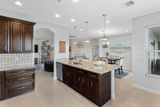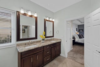 Beautiful 3-bedroom, 2-bath home with a 2-car garage in sought-after Martin Crossings, perfectly situated on a quiet dead-end street with serene lakefront views. This home features tile throughout the living areas, impact windows, A/C 2021 and two fully remodeled bathrooms. The oversized primary suite boasts a spa-like bath with a steam shower and Medical Grade Sauna. Enjoy outdoor living on the oversized paver deck and covered patio--ideal for relaxing or entertaining. A rare lakefront opportunity in a peaceful setting.