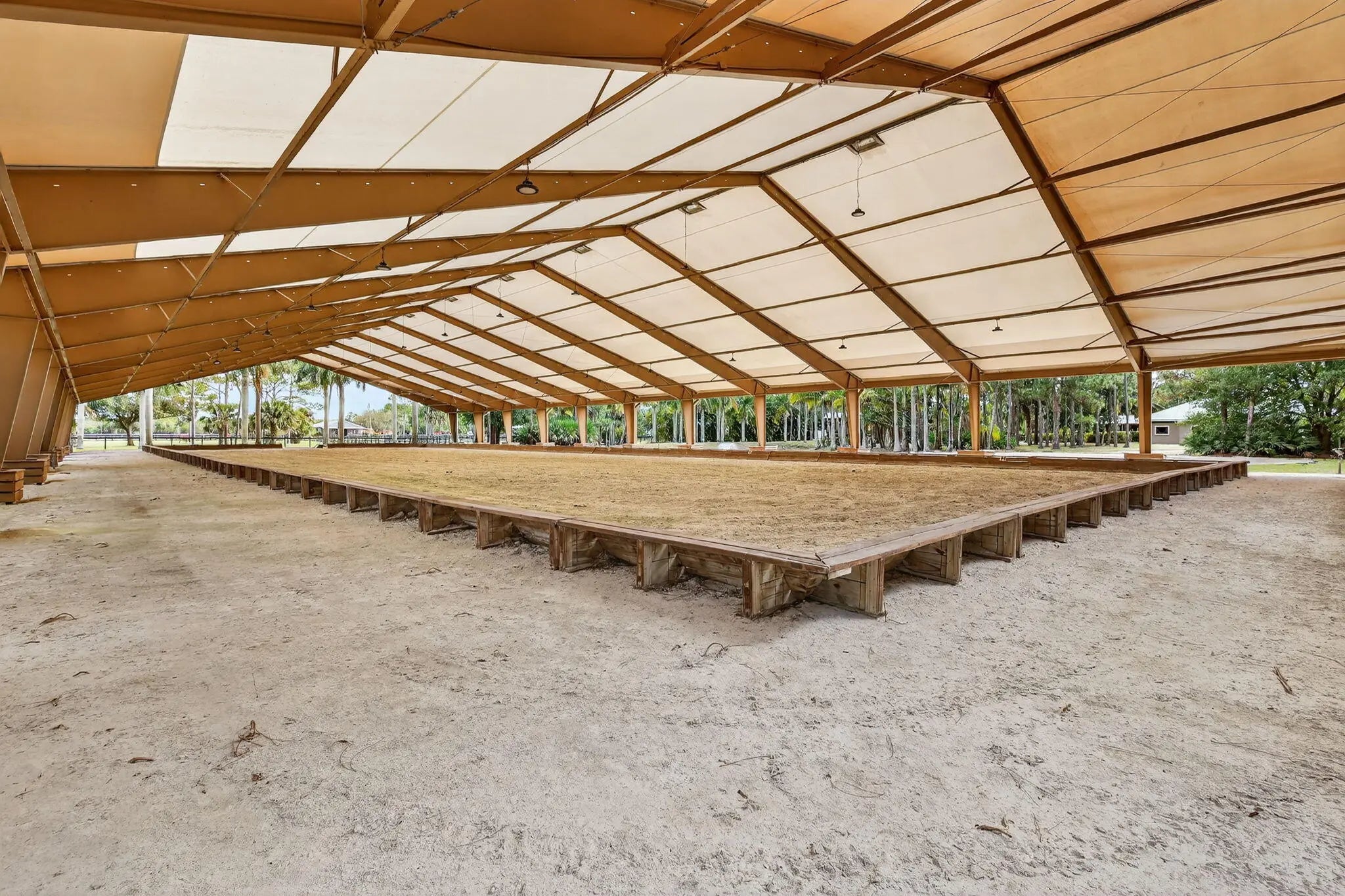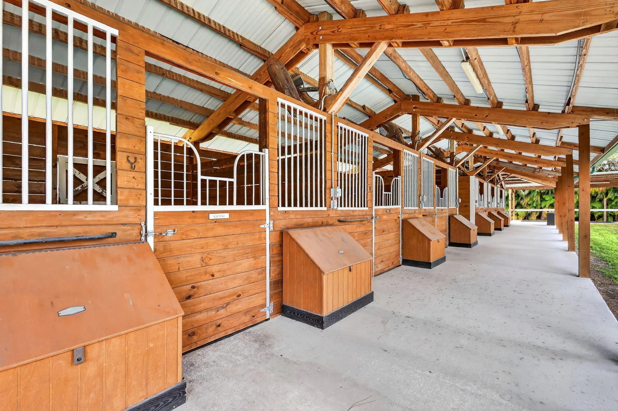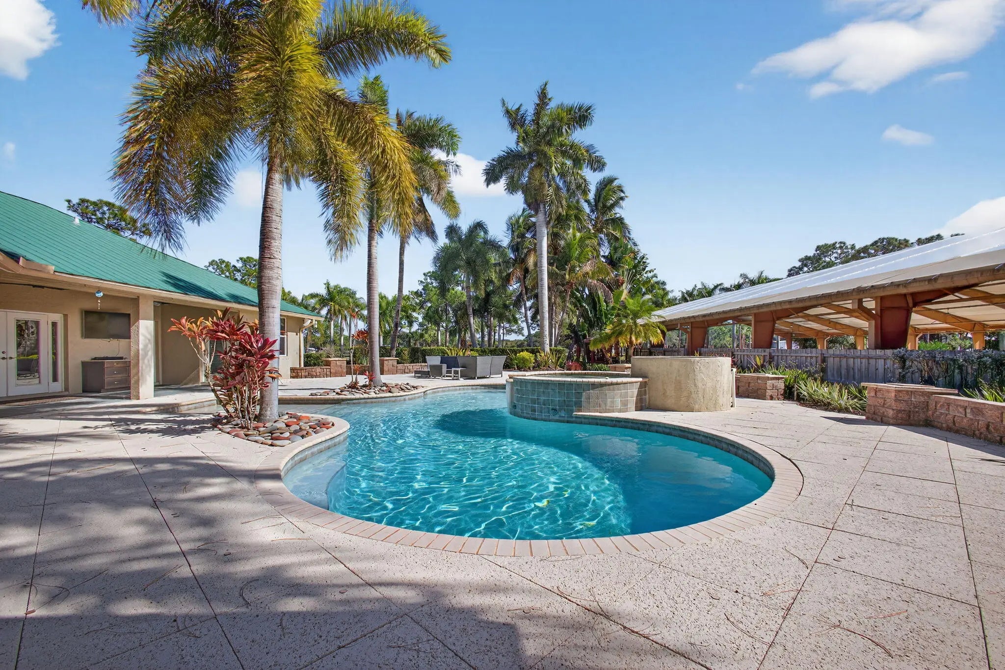 Beautiful Equestrian property with 11.72 gated acres in Palm City. There are 4 large paddocks on the front 5 acres to the main home with 3 bdrms, 2.5 baths & resort style pool with hot tub as well as Brazilian style covered cooking area. Just past the pool you will find your private 100'x220' covered arena & riding track with mirrors & ESI footing. There are 2 barns with 14 stalls, 4 wash racks, 2 tack rooms / office, feed room. Separate hay and shavings building & maintenance building with washer & Dryer & room for equipment.There are an additional 6 fenced paddocks behind the barns. The property has 2 ponds, pump for filling when necessary, irrigation system, camera system, fly system, 2 gazebos and a lunging area. This is a perfect property for full time or seasonal equestrian.