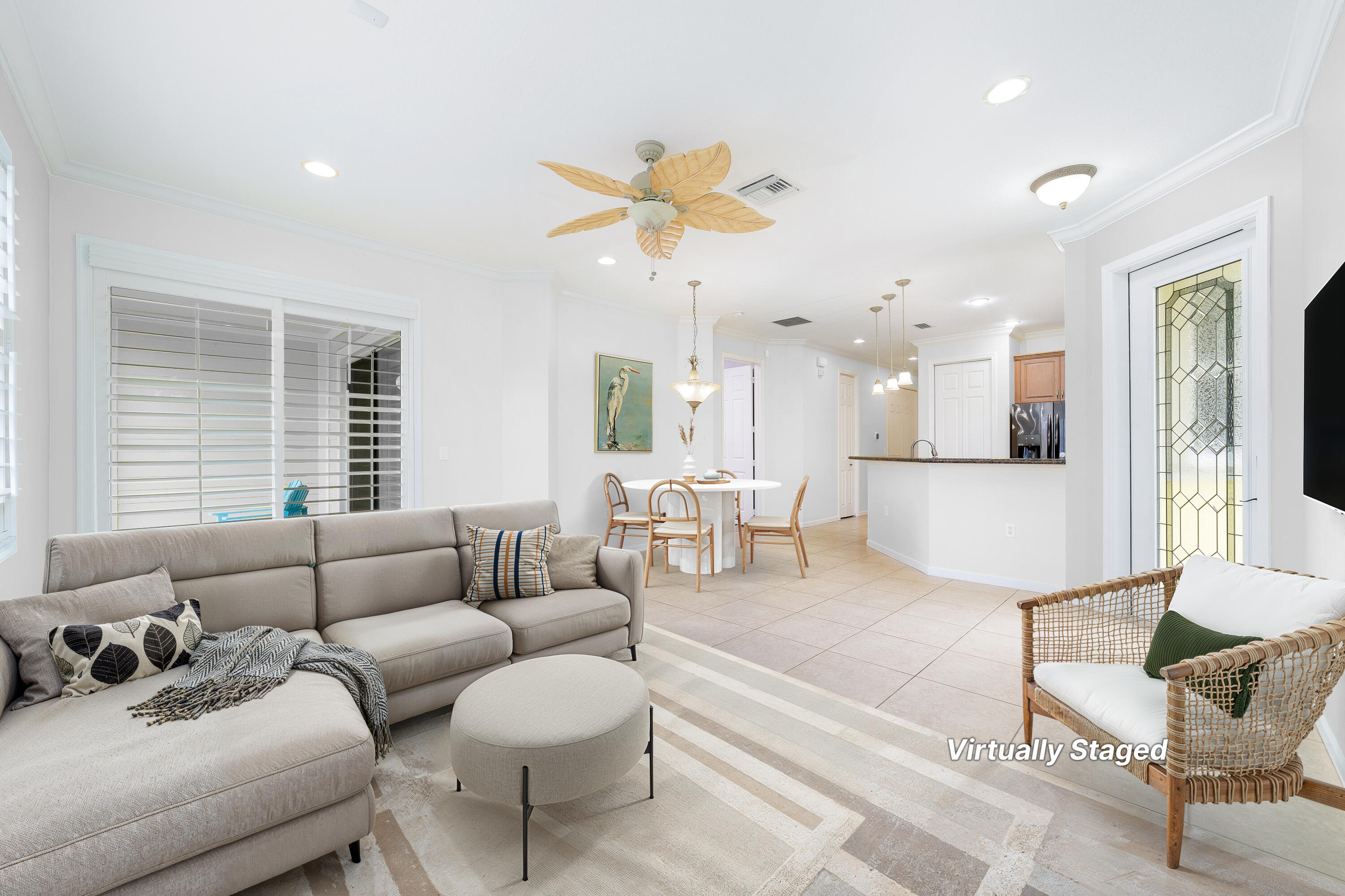 Welcome to paradise--a dream destination for boaters and beach lovers, perfectly positioned between the Intracoastal Waterway and the Atlantic Ocean. This charming single-story corner unit boasts 3 spacious bedrooms, 2 bathrooms, a 2-car garage, and an extended driveway for extra convenience. Recent updates include a new HVAC system installed in March 2024 and fresh exterior paint completed in November 2024. The roof was replaced in 2017, and the home is equipped with a newer refrigerator, a stacking Electrolux washer and condensing dryer, accordion hurricane shutters, and stylish plantation shutters. Plus, it's pet-friendly! Take in the tranquil views of the serene community pond from the back patio.Homeowners enjoy extensive coverage for exterior maintenance, including roof repairs, painting, landscaping, pool and clubhouse upkeep, and gym equipment maintenance. The HOA also provides wind and flood insurance for the building, while homeowners need only an HO-6 policy for interior protection. Resort-style amenities include dock access, a sparkling community pool, a well-equipped fitness center, a sauna, boat docks, and private beach access. Best of all, JC Park Beach is just a short stroll away! Boat slips are regularly available for rent or purchase, exclusively for Mariner Bay residents.