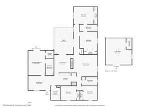 PRICE IMPROVEMENT. Experience refined comfort in this exceptional Port St Lucie home designed for flexible living with no HOA. This spacious multigenerational property offers a 5 bed 3 bath main residence plus a private 1 bed 1 bath guest house with its own entrance and full kitchen, ideal for extended family, work from home use, or rental income. Light filled interiors feature open living spaces with hard flooring throughout and a central fireplace adding warmth and character. Major upgrades include a 2019 metal roof, impact windows, impact front door and sliders, newer AC systems, an updated kitchen with newer appliances, upgraded lighting and ceiling fans, and a fully privacy fenced yard. Conveniently located near shopping, dining, and I95 for easy commuting.