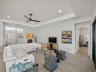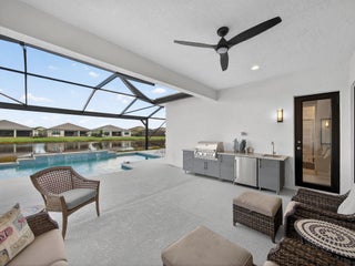 Experience luxury lakefront living in this exceptional Bianca Model, 3 bedroom, 4 bath home featuring a heated pool, sophisticated upgrades, and sweeping water views. Perfectly situated on a large lake, this residence blends elegant design with modern comfort.Step inside to a breathtaking custom chef's kitchen with new custom cabinetry with a massive quartz-topped island, lighted display cabinetry, a walk-in pantry, stunning full-height quartz backsplash, and a custom-crafted exhaust hood. The spacious primary suite is a serene retreat, highlighted by cafe windows overlooking the pool and lake, a coffered ceiling, two generous walk-in closets, and a luxurious primary bath showcasing custom cabinets with expanded storage, a linen closet, and elegant quartz countertops.Two large guest bedrooms, each with its own ensuite bath, offer comfort and privacy with upgraded floor and wall tile and sleek quartz finishes. A dedicated den/office with twin desks and a tranquil lake view provides the perfect workspace or creative escape. Throughout the home, plantation shutters add timeless sophistication. This property is loaded with premium, peace-of-mind upgrades: " Generac whole-house standby generator " Gas tankless water heater " Whole-house water treatment systemincluding pool " Infinity air purifier integrated into HVAC " Epoxy garage floors " Climate-controlled golf cart garage/exercise room with epoxy flooring and a lifetime warranty Dscover the unparalleled amenities of Valencia Walk, where residents enjoy exclusive access to a spectacular 34,000 sq ft clubhouse featuring a grand social hall, state-of-the-art fitness center, resort-style pool, card rooms, café with indoor/outdoor dining, sports lounge, covered patio with fire pit, and a full-time lifestyle director. Nestled within Riverland, a 4,000-acre master-planned community, you'll also enjoy: " 16-acre Sports & Racquet Club " 51,000 sq ft Wellness & Fitness Center " 5-acre Arts & Culture Center & Creativity Hub " Miles of scenic, golf-cart-friendly paths " Easy access to the new Town Center with dining and Publix This isn't just a homeit's an elevated lifestyle in one of Riverland's most sought-after communities.