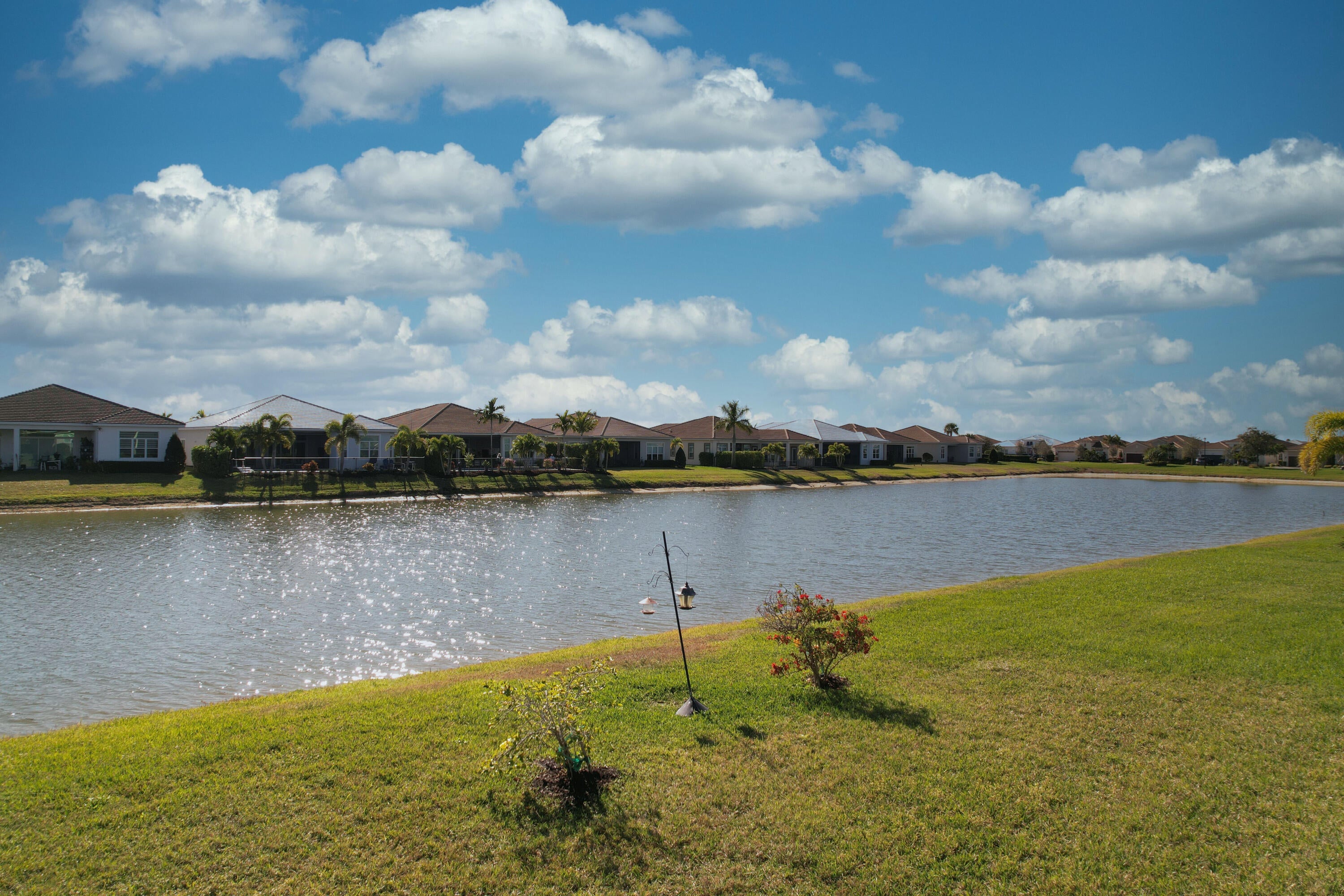Enjoy the Cresswind at Verano 55+ lifestyle in this beautiful lakefront Davis model featuring impact windows throughout. The upgraded kitchen offers quartz countertops, center island, stainless steel appliances, and a bright eat-in dining area. This home also includes a formal dining room and a versatile flex room perfect for an office or den. The spacious primary suite features a master bath with dual sinks, a large walk-in shower, and a generous walk-in closet. Enjoy a quiet, peaceful backyard with serene lake views from the screened-in lanai. Relax and take advantage of all the resort-style amenities Verano at PGA has to offer.
