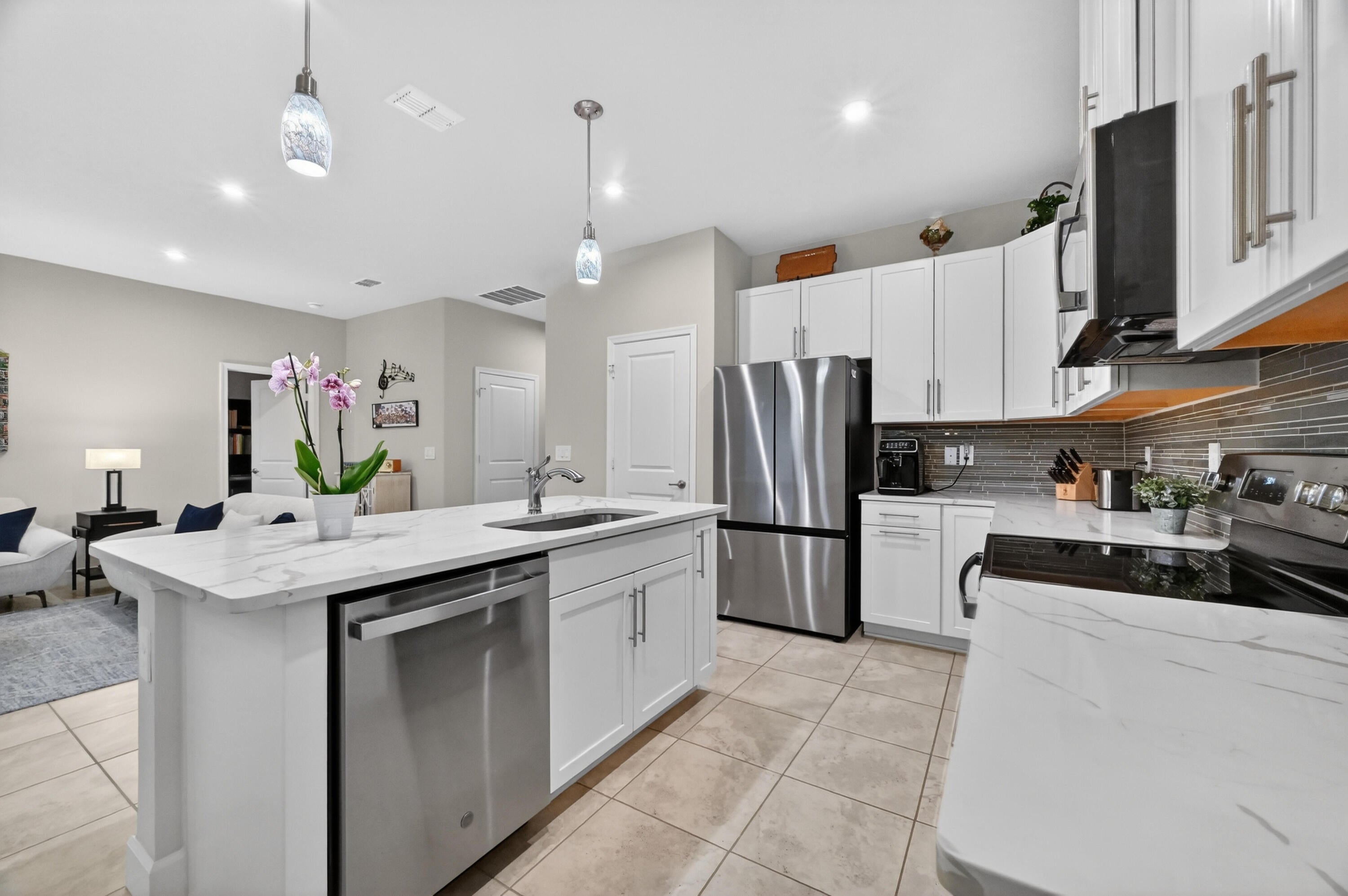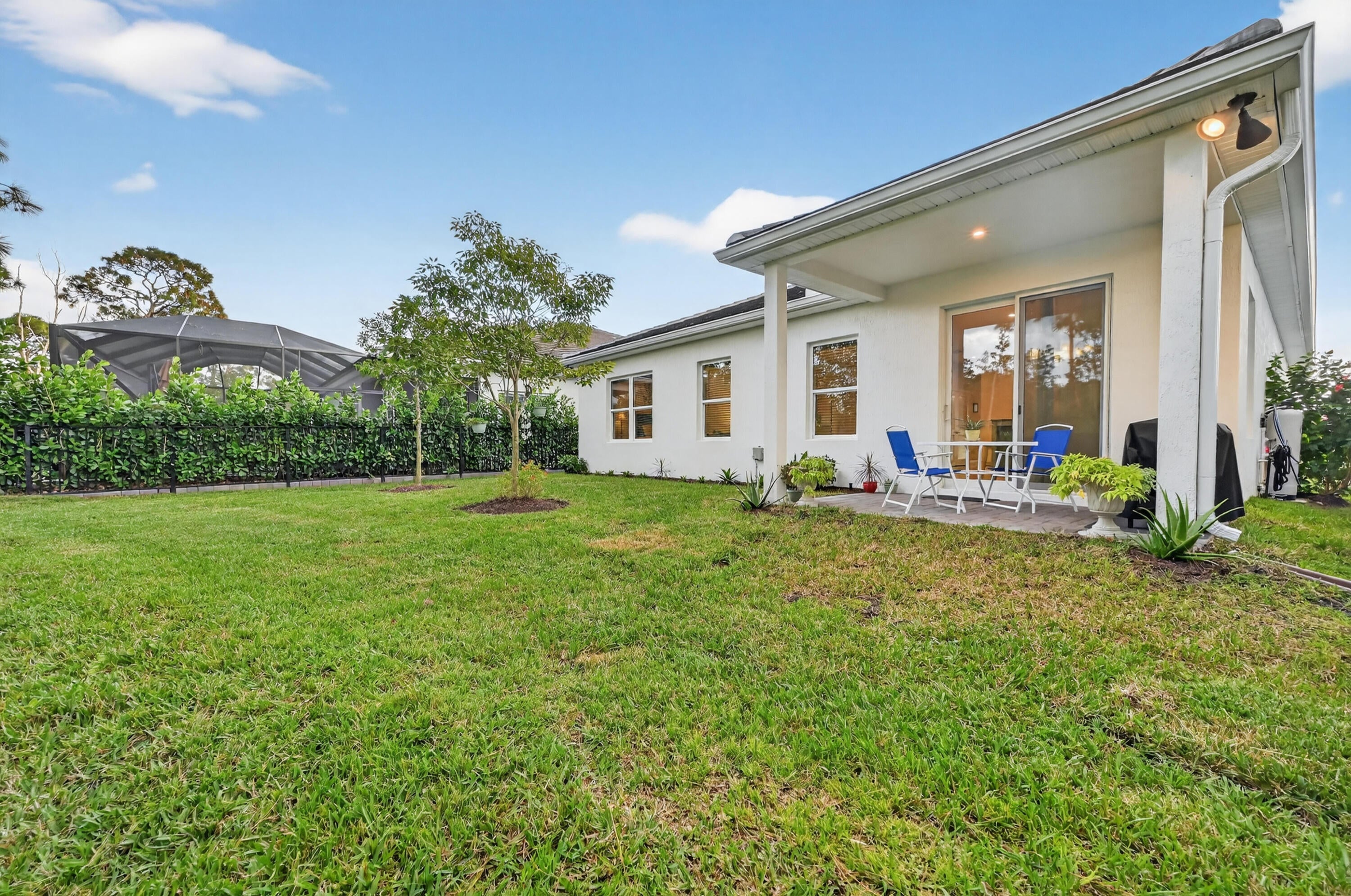 Immaculate 3 bedroom, 2 bath home on a private cul de sac in gated Banyan Bay community, built just 2 years ago. Elegant single story residence with open, light filled floor plan and hurricane impact windows throughout. Modern kitchen with large island, upgraded stainless steel appliances, and ample storage. Spacious primary suite includes walk in closet and beautifully appointed en suite bath. Owner upgrades include finished garage floor with tool board, widened driveway, security cameras, impact glass front door, wood blinds, and intelligent thermostat and garage opener. Enjoy peaceful preserve views from covered lanai or front porch. Low HOA includes lawn care, clubhouse, pool, fitness center, and river access. Minutes to downtown Stuart, Palm City, beaches, dining, and highways. Agents Welcome.