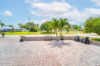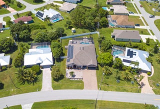 A beautiful Courtyard Pool home w/ Spacious 4 bedrooms + Den, 3 full baths, 3 car garage, salt water heated Pool, CBS home that perfectly blends comfort, style, and functionality with NO HOA. Nestled in a desirable neighborhood, this property boasts an open and inviting floor plan ideal for both everyday living and entertaining. Step inside to find a light-filled interior featuring 11 ft high ceilings with Crown molding, Tray ceilings, and classic wall paneling accents throughout, a generous Great Room, and a thoughtfully designed Gourmet kitchen with 11 ft wide Island w/ double wall oven, ample 42''cabinetry and counter space and upgraded backsplash. The primary suite offers a deluxe bathroom that includes an oversized shower, soaking tub, his and her sinks, and 2 large walk-in closewhile the additional bedrooms 2, 3, and 4 will offer large footprints for your family to grow with the home, all bedrooms will feature walk-in closets and share 2 conveniently located bathrooms, home also features a flex room that can be a 5th bedroom, office/den living room space provide plenty of space for family, guests, or a home office. Outside, enjoy your own private oasis with a sparkling in-ground pool, perfect for relaxing or hosting summer gatherings. The 3-car garage offers abundant storage and parking, a rare and valuable feature. Other features included are solar panels, extra large shed, accordion storm shutters, pavered front and back yard in and around the screened enclosure leading to a Welcoming custom built stone fire pit.