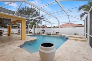 Fabulous Pool home in Southbend Area features CBS Construction, Large paver driveway, 4 Bedrooms, 2 Baths, 2 Car Garage & stunning Screen enclosed heated Pool! This oversized lot offers space to enjoy this beautiful home! Updated Roof 2021, A/C - 2025, pool heater -2022. Formal Living Room, dining room, Open spacious kitchen offers breakfast bar, updated stainless steel appliances, updated fans in kitchen & family room overlooking private pool with stunning Travertine Deck & fenced in yard. Laminate flooring & tile flooring, blinds & drapes. Save on your electric bill with solar panels! This home is move in condition and a must see! Close to the turnpike, schools, shopping, restaurants & More.