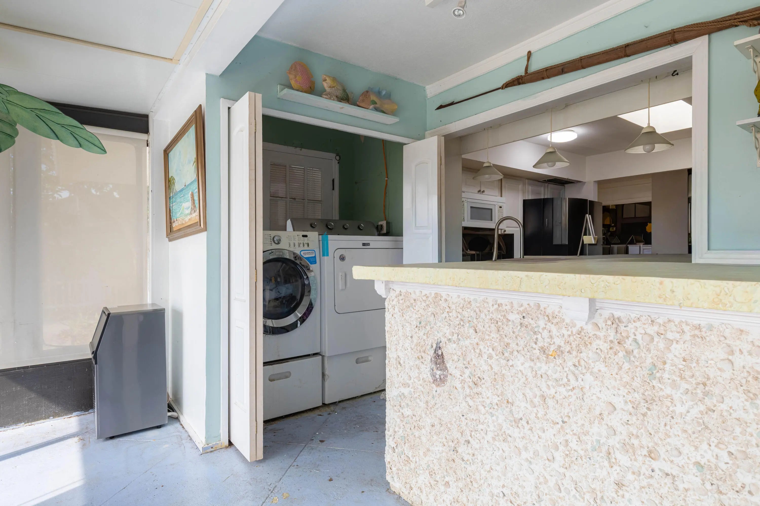 Handy Man Special!! This beautiful 3-bedroom, 2-bathroom home is located in the private gated community of Queen's Cove on North Hutchinson Island. Residents enjoy private deeded beach access, offering the best of coastal living just steps from the sand. The home features a 2024 metal roof, providing durability and peace of mind for years to come. Sizes are approx/subject to error.