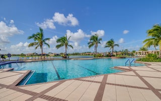 PGA Verano! Boasting $95k+ in upgrades, this Arezzo home sits on prime corner lot with tranquil lake views & fenced backyard. Home offers 2 bedrooms plus a versatile den, 2 baths & 2-car garage. Inside features include open airy layout showcasing 10ft ceilings, porcelain tile floors, designer lighting & custom Hunter Douglas Zebra window treatments. The chef-inspired kitchen shines with quartz counters, 40in espresso soft-close cabinetry, premium appliances & walk-in pantry. Relax in the elegant primary suite with tray ceiling & spa-style bath. Enjoy sunset lake views from the extended screened lanai. Impact glass windows & lanai electric hurricane shutters offer piece of mind. HOA covers lawn care, cable, internet, security & access to Club Talavera. Close proximity to PGA Golf Club.
