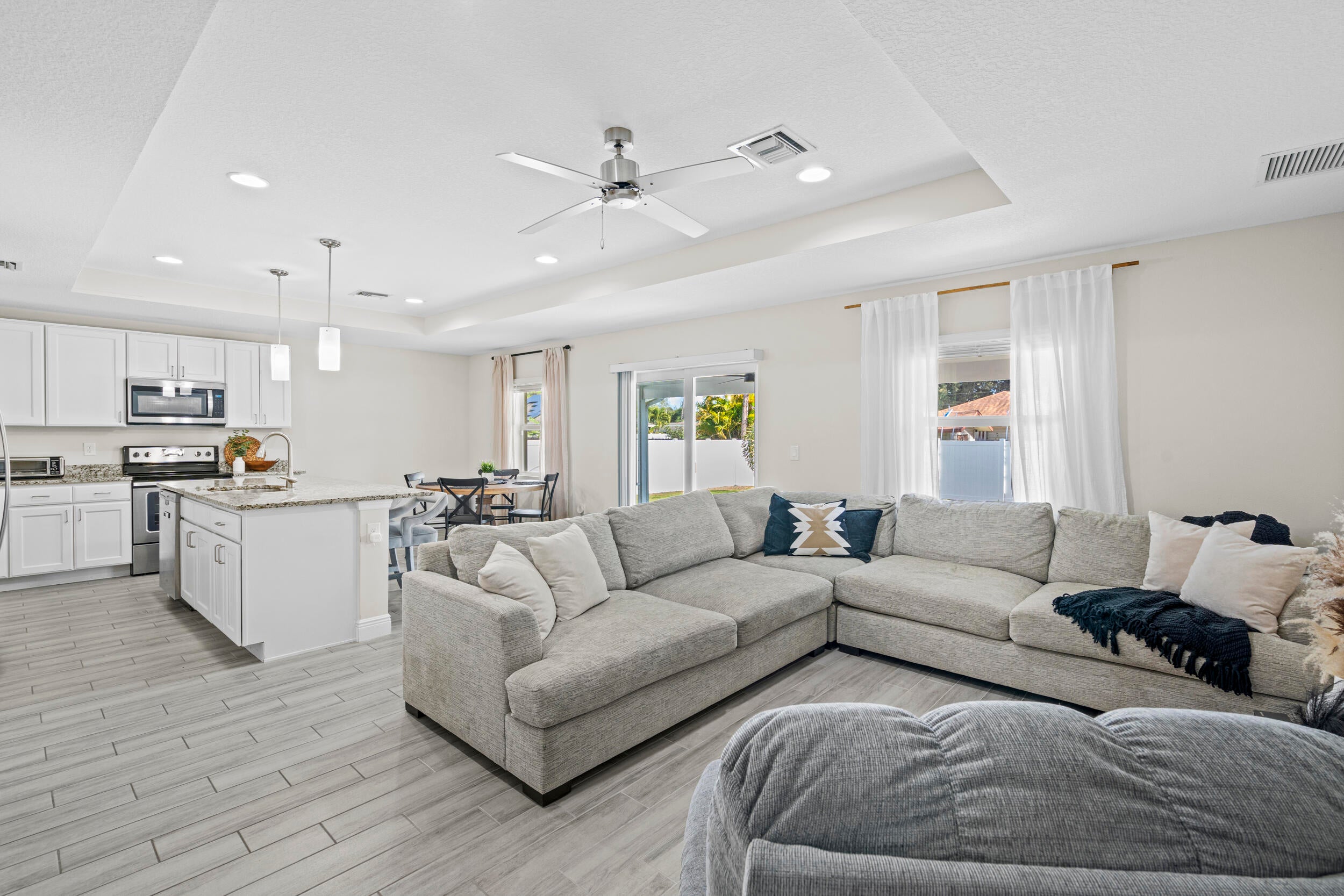 Built in 2020, this solid CBS smart home offers modern comfort and peace of mind with full hurricane-impact glass throughout and a/c, lighting, and surveillance available from your smartphone. The open-concept layout is perfect for everyday living and entertaining, featuring white shaker cabinetry, granite countertops, tons of closet space, and a bright, airy feel. Step outside to a huge backyard with a PVC privacy fence and covered patio--ideal for outdoor dining, play, or future enhancements. With no HOA, enjoy the freedom to make this home your own. A move-in-ready opportunity combining style, durability, and flexibility. Washing machine replaced in 2026 and microwave in 2024 (all others are 2020).