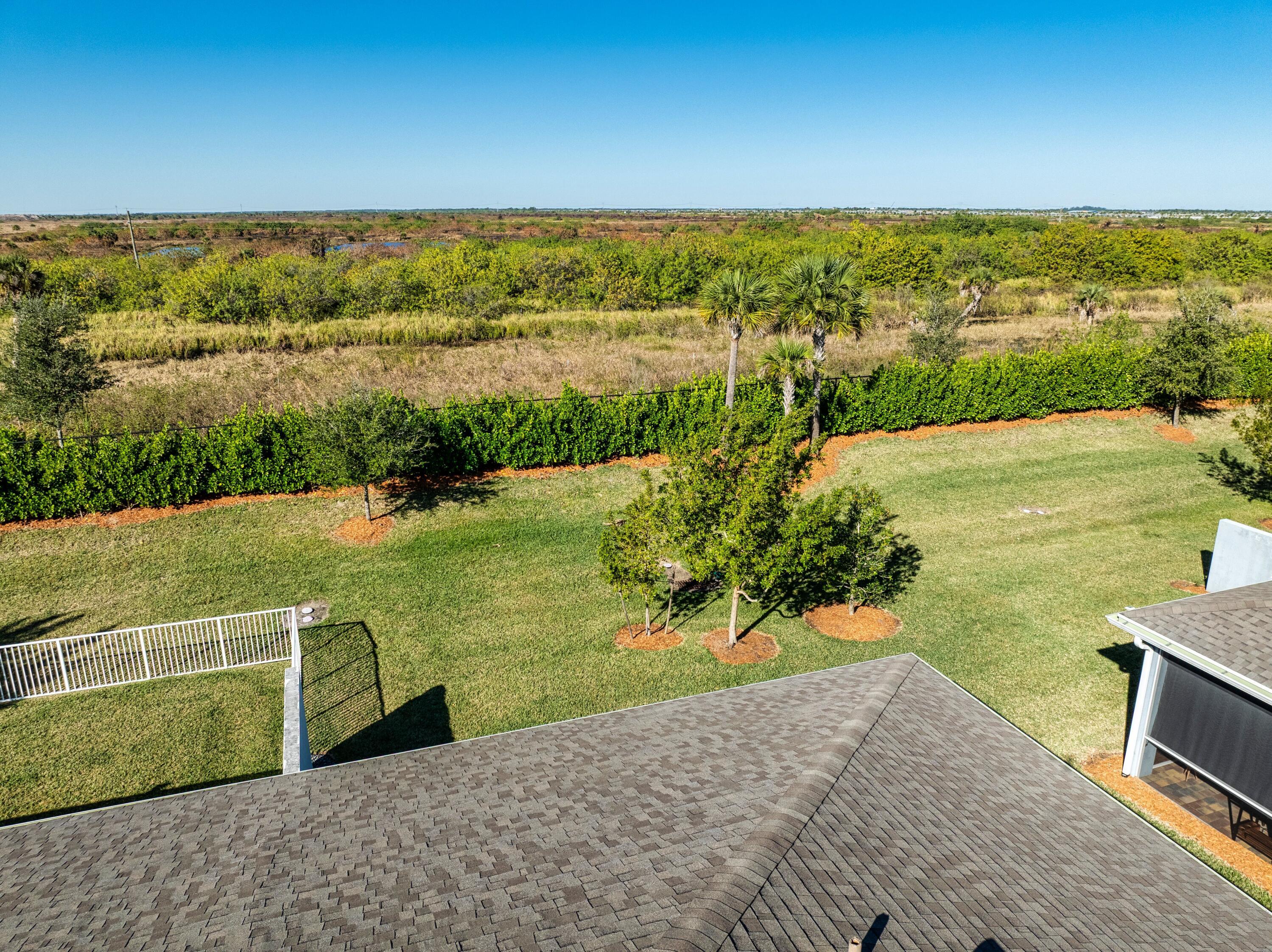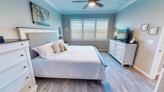 Beautifully upgraded 2-bedroom, 2-bath home with a versatile den, offering just under 1,600 sq ft of thoughtfully designed living space. This open-concept floor plan is perfect for both everyday living and entertaining, centered around a stunning upgraded kitchen featuring quartz countertops, 42'' soft-close cabinetry with crown detail, and a seamless flow into the dining and living areas. Over $50,000 in builder upgrades elevate this home, including impact-resistant windows and sliders, crown molding throughout the main living areas, bedrooms, and flex room, and wood-plank tile flooring throughout the living spaces and primary bedroom. A shiplap accent wall adds warmth and character to the dining area, while plantation shutters on all windows and a motorized shade on the sliders provide-both style and privacy. The spacious primary suite offers a beautifully upgraded bath with quartz countertops and soft-close cabinetry. Additional features include a built-in drop zone for extra storage just outside the laundry room, a decorative glass front door, and a screened patio enhanced with custom roller shadesperfect for enjoying indoor-outdoor living year-round. This move-in-ready home combines modern finishes, quality upgrades, and an efficient open layout in one exceptional package.
