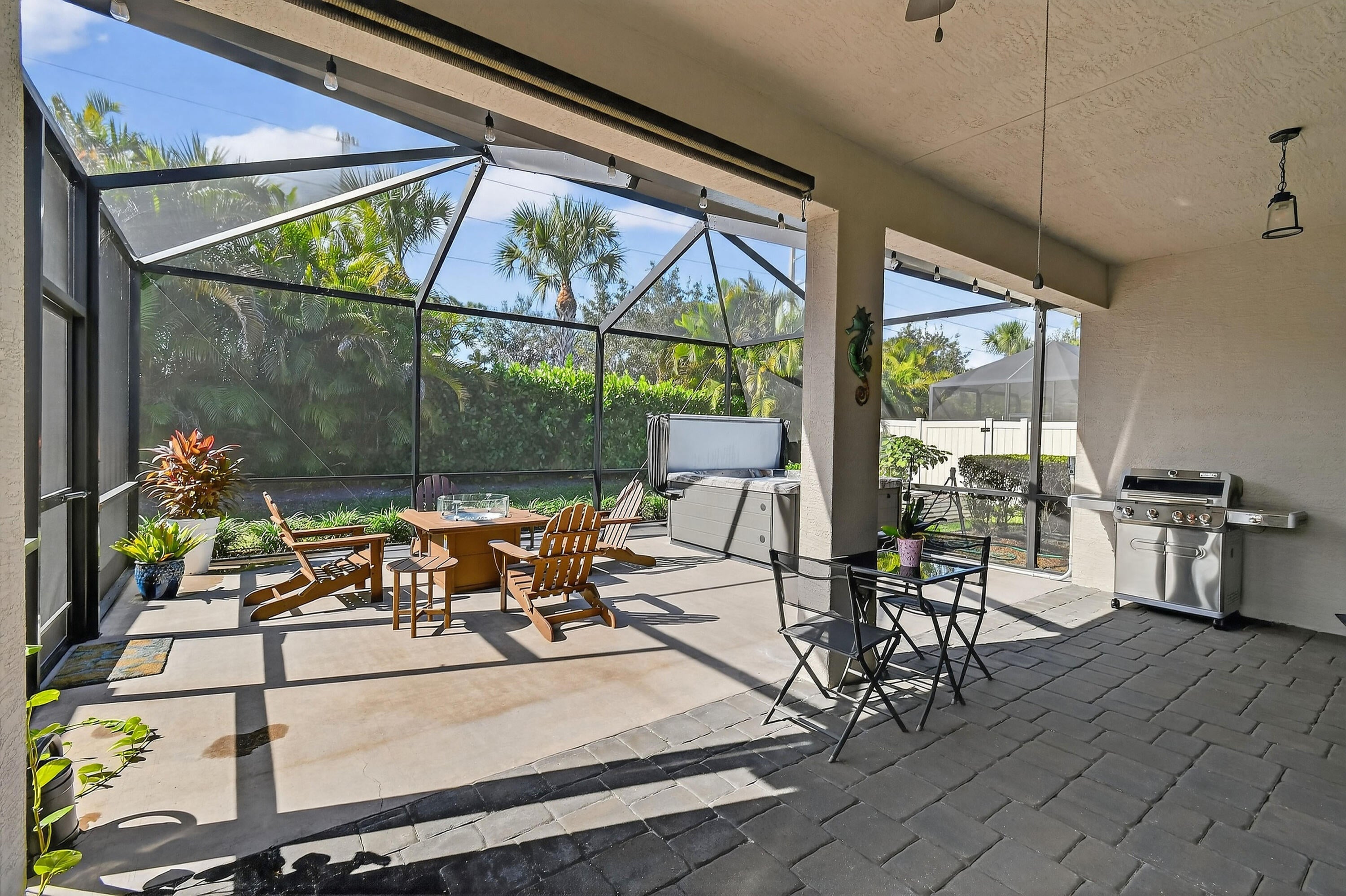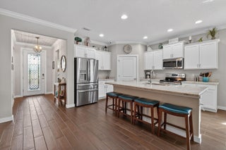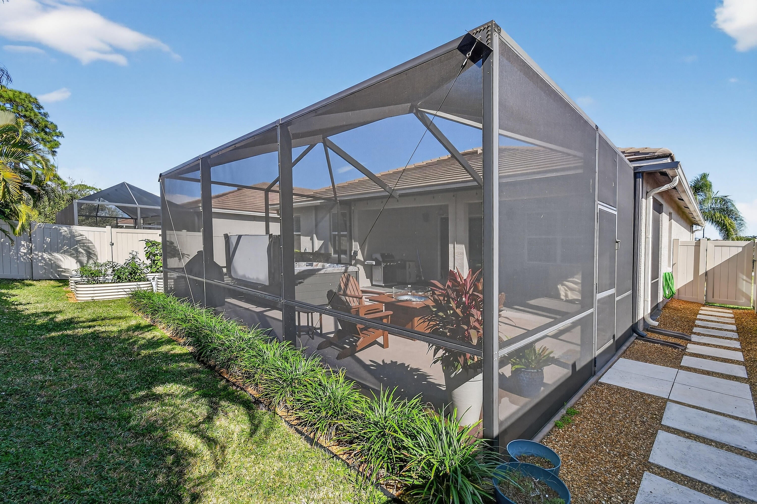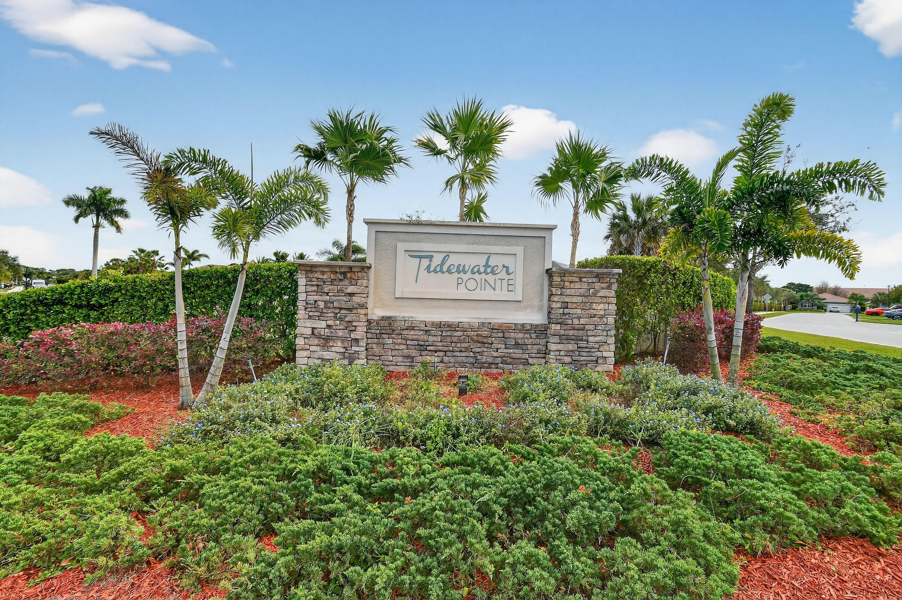 Immaculate, stunning 3 bedroom, 2 bath home built in 2019 located in desirable TidewateR Pointe. Beautiful open floor plan with split bedrooms.Exquisite wood-look title flooring throughout main living area. Large kitchen with island and tons of cabinets overlooking the family room featuring a custom built-in wall unit. Huge screened-in lanai with hot tub, perfect for entertaining. Fully fenced backyard with vegetable garden.Very low HOA. Upgrades include completely renovated bathrooms, hardwood floors in all bedrooms, gorgeous shiplap in the foyer, crown molding, 4 CCTV cameras, ADT alarm panel ,new refrigerator in 2024 and microwave in 2025. Excellent location close to shopping, dining, golf and major highways. TURNKEY AND MOVE IN READY.A MUST SEE !!
