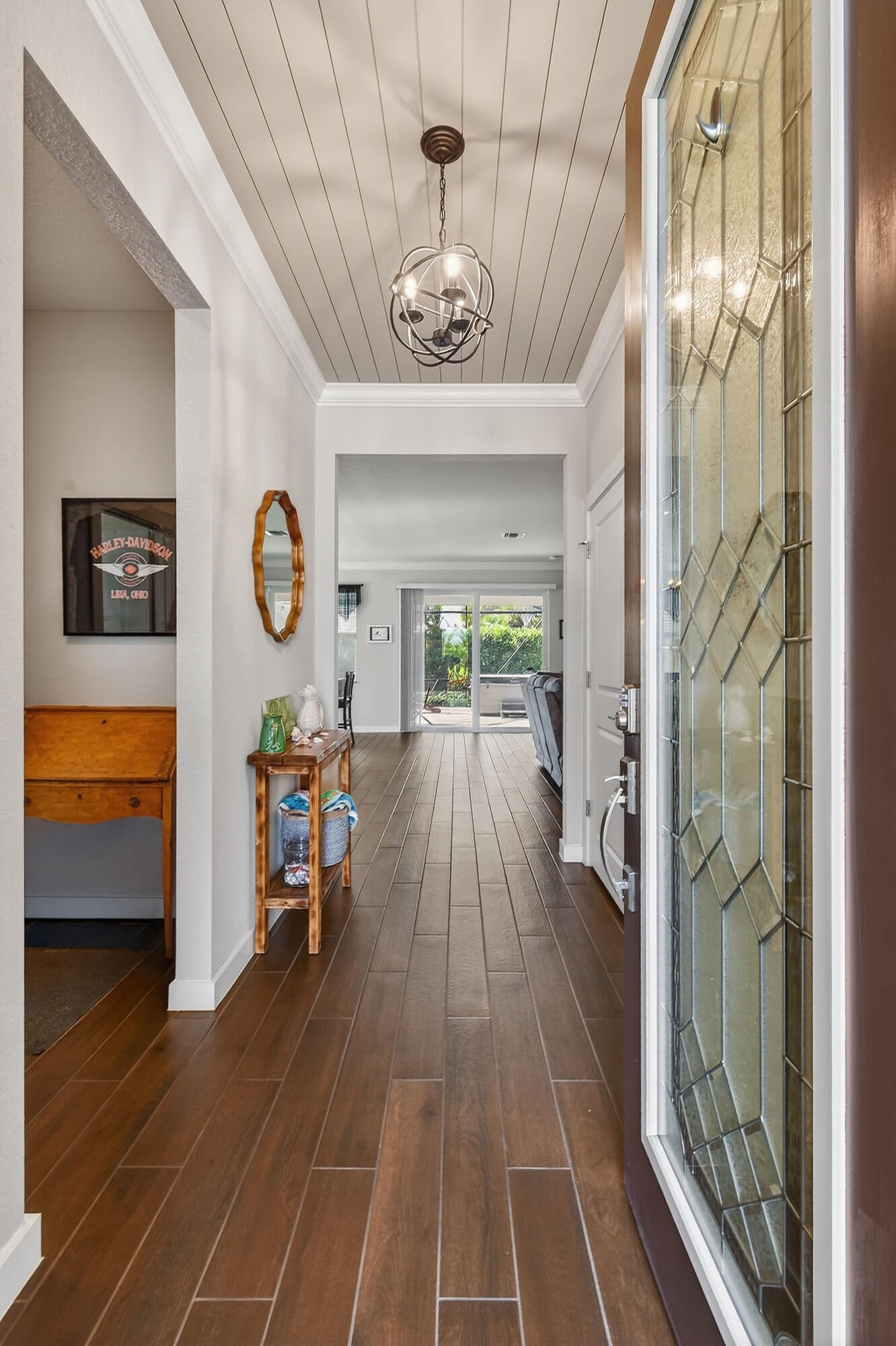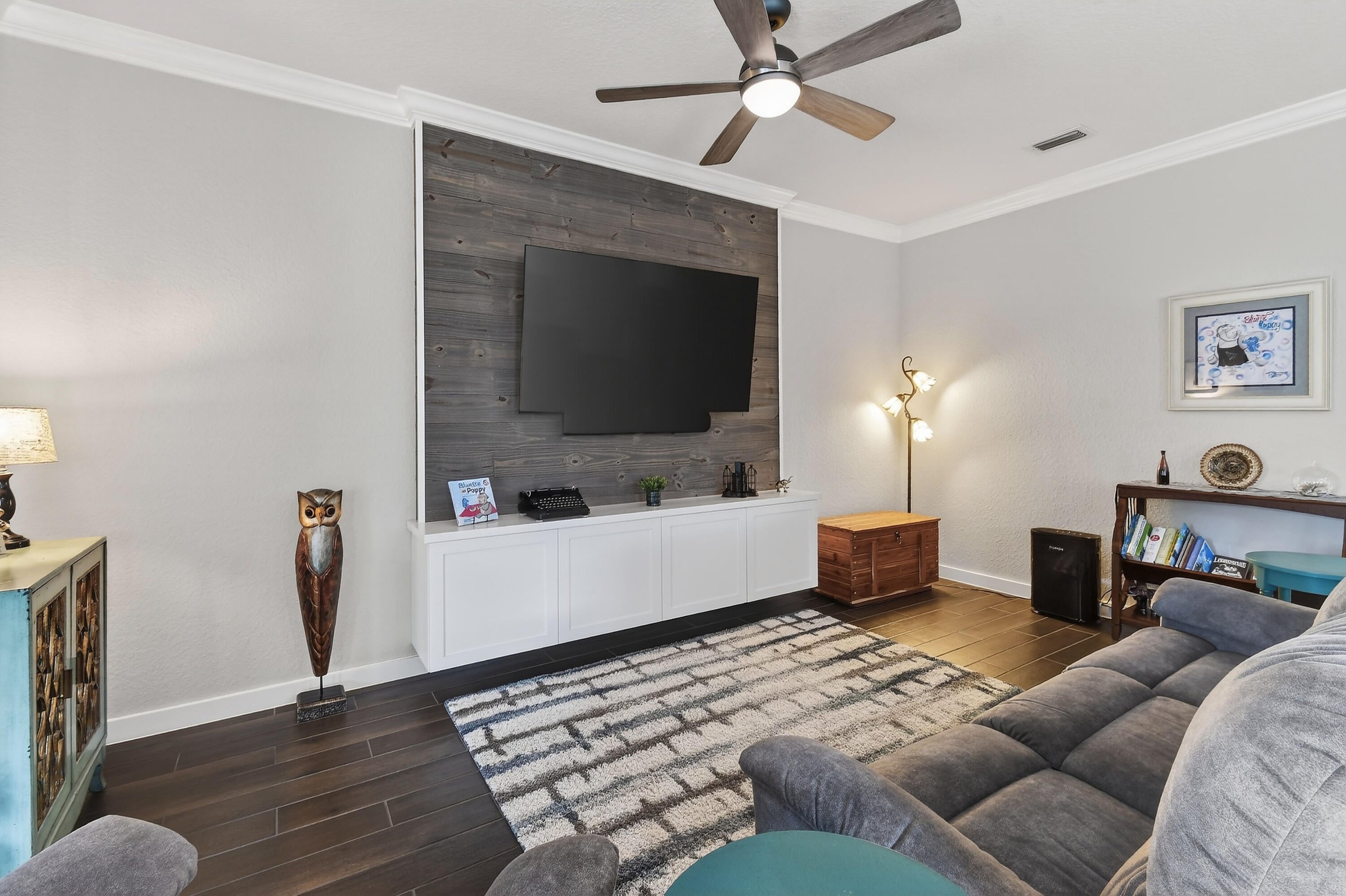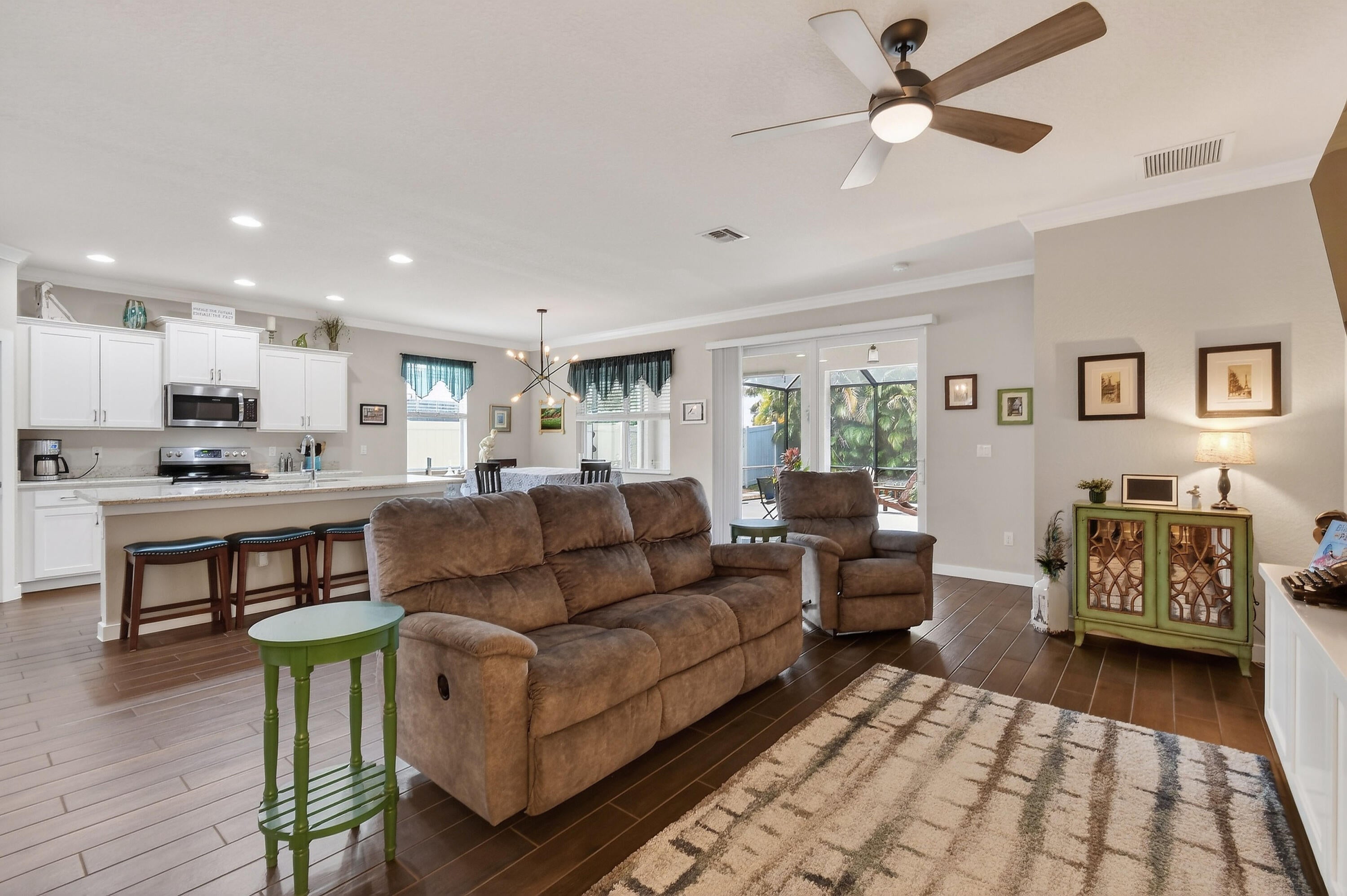 Immaculate, stunning 3 bedroom, 2 bath home built in 2019 located in desirable TidewateR Pointe. Beautiful open floor plan with split bedrooms.Exquisite wood-look title flooring throughout main living area. Large kitchen with island and tons of cabinets overlooking the family room featuring a custom built-in wall unit. Huge screened-in lanai with hot tub, perfect for entertaining. Fully fenced backyard with vegetable garden.Very low HOA. Upgrades include completely renovated bathrooms, hardwood floors in all bedrooms, gorgeous shiplap in the foyer, crown molding, 4 CCTV cameras, ADT alarm panel ,new refrigerator in 2024 and microwave in 2025. Excellent location close to shopping, dining, golf and major highways. TURNKEY AND MOVE IN READY.A MUST SEE !!
