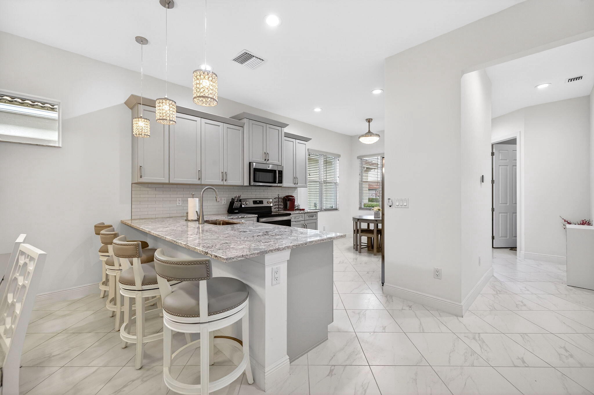 Turn-Key Living with Resort-Style Amenities! Versatile 3 -bed/2-bath home designed for modern living. One of the bedrooms is currently styled as a loft/home office.What truly sets this home apart are the extensive upgrades the owners paid a premium fora"top-of-the-line quartz countertops, built-in speaker system, screened-in lanai, impact windows and high end custom window treatments throughout. When it comes to comfort and efficiency, this home delivers.HOA is $585 monthly (paid quarterly) and includes lawn care, pest control, cable, high-speed internet, & a smart security system. Community amenities include a clubhouse, fitness center, sauna, indoor pool, billiards room, bocce court, playground, art room & more. FURNITURE IS NEGOTIABLE