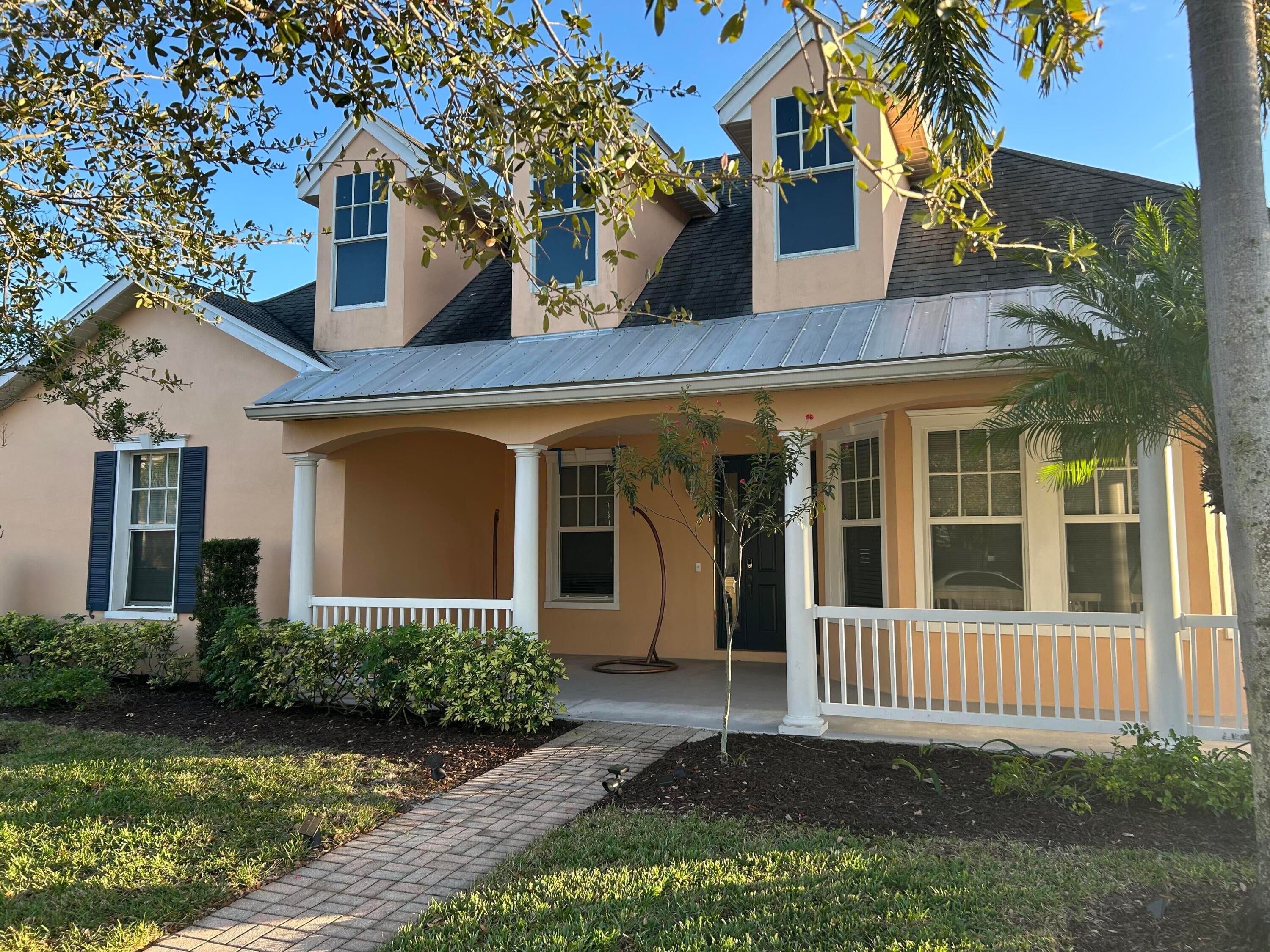This spacious and well-designed home features a flexible layout with separate living and dining rooms, a large family room, and a private den or office located away from the bedrooms. High ceilings throughout create a bright and open atmosphere. The large kitchen includes a casual breakfast bar and opens to the family room, providing comfortable everyday living space. The primary suite includes his-and-hers walk-in closets. Located on a corner lot, the home provides added privacy, a fenced backyard with room for a pool, and a front porch overlooking community parks. The property is located three blocks from Publix, shopping, banks, Palm Pointe Charter School, and an elementary school, with downtown Tradition, parks, lakes, and community amenities within walking distance.