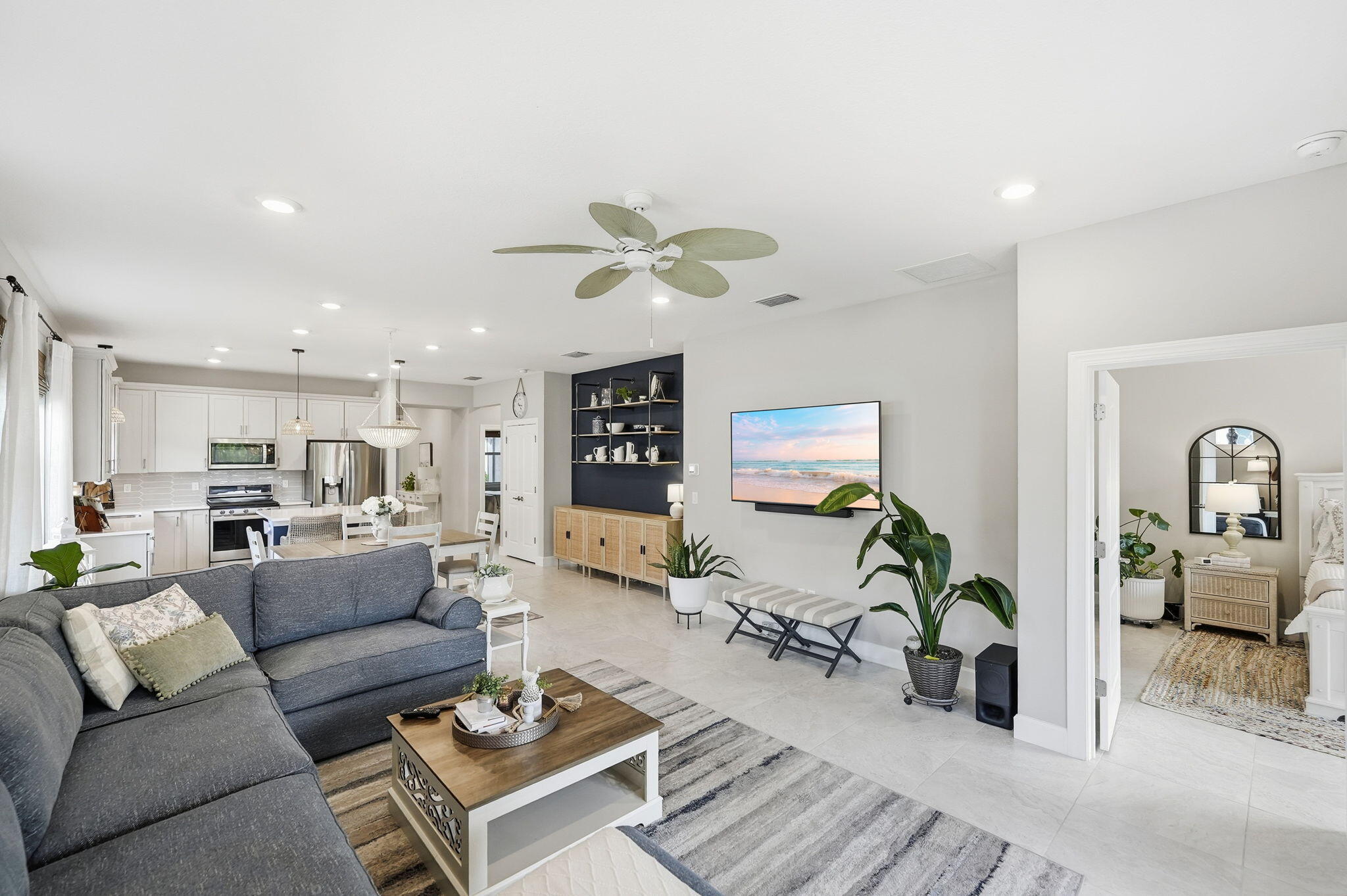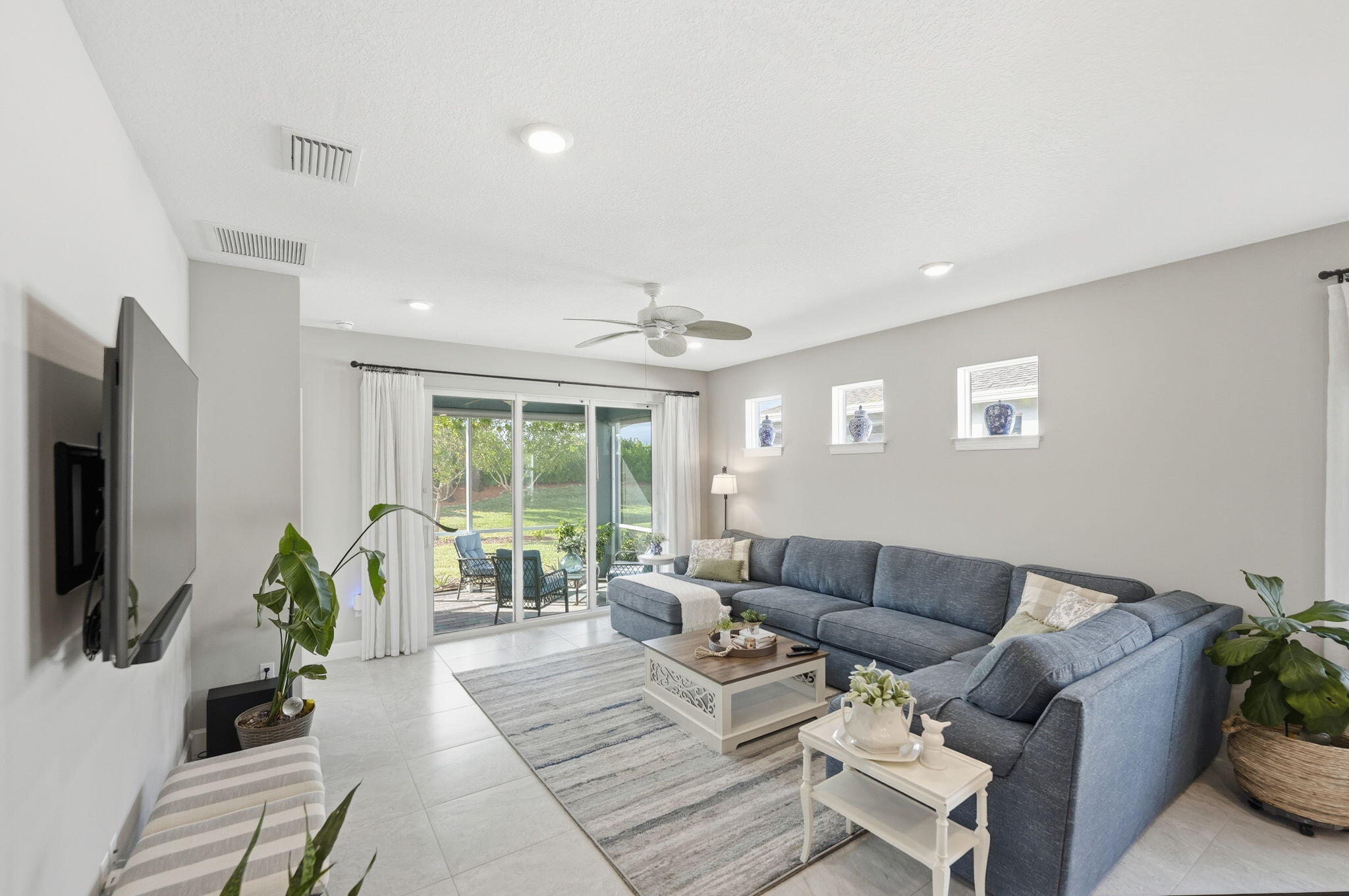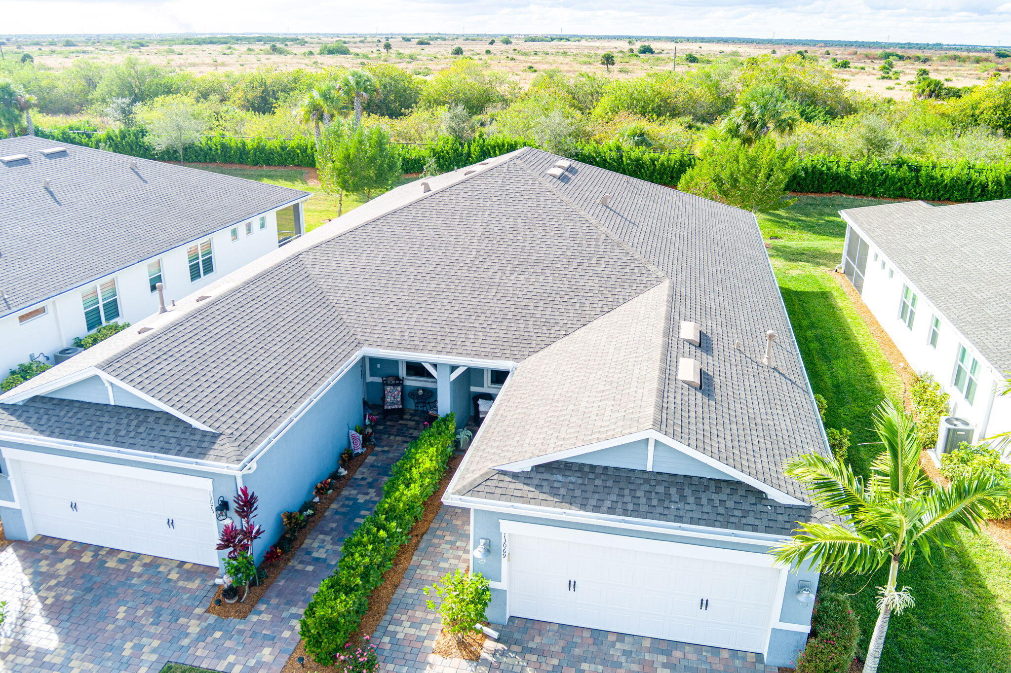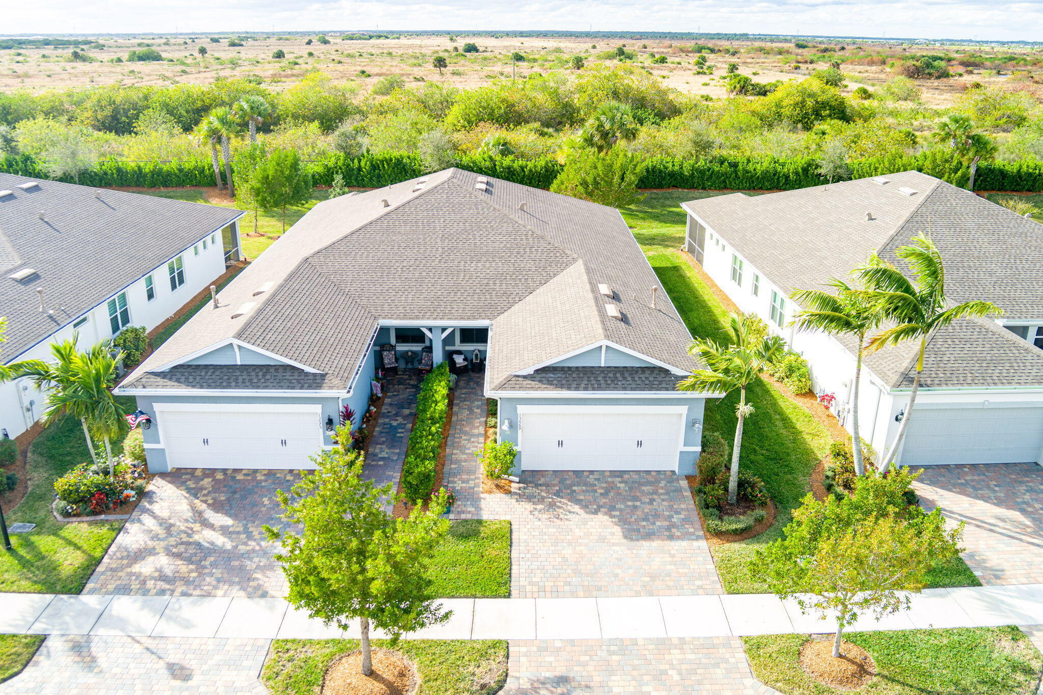 Exciting opportunity in Del Webb at Tradition! Discover this beautifully designed 2-bedroom, 2-bathroom CBS villa featuring a versatile flex room and a 2-car garage, perfectly situated on a serene preserve lot in the highly sought-after, gated 55+ community of Del Webb at Tradition. Built in 2022 and fully upgrade! You can't build new for this price! The kitchen features soft-close cabinetry, premium Kitchen Aid dishwasher and custom pantry shelving. The primary suite includes dual sinks, a frameless glass walk-in shower, and oversized walk-in closet. This home offers a spacious open floor plan with modern upgrades throughout. The Flex room with double doors is ideal as an office or for guests. Built-in laundry cabinetry, new whole-house watersoftener, and a screened patio overlooks a quiet backyard. Enjoy resort-style living at Del Webb at Tradition with a clubhouse, fitness center, pool, tennis and pickleball courts, and an active social calendar. Centrally located near shopping, dining, and Cleveland Clinic.