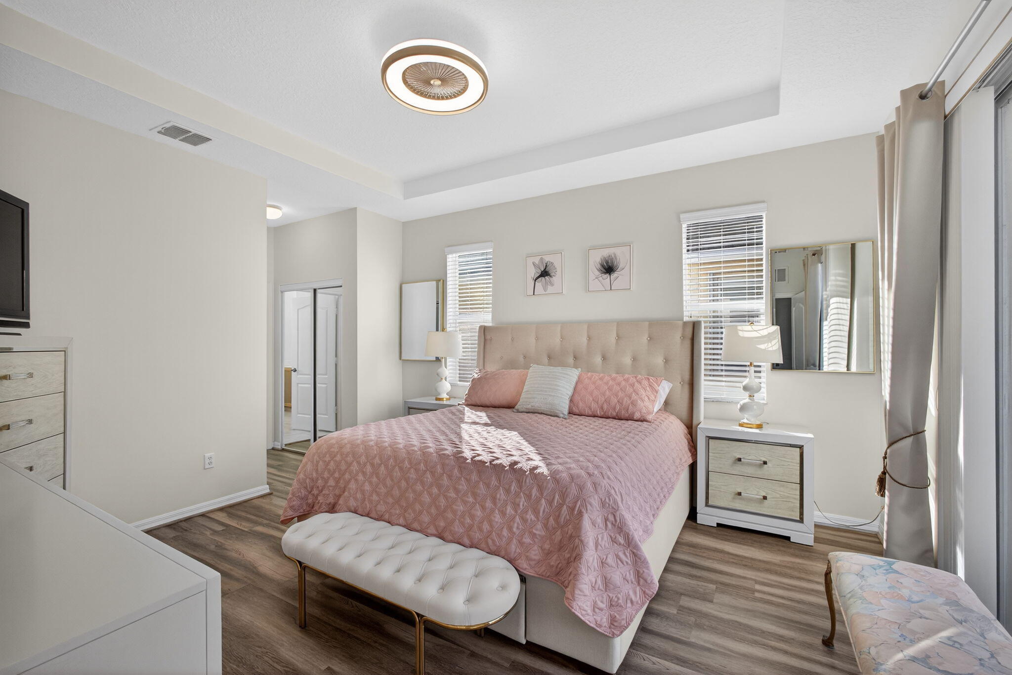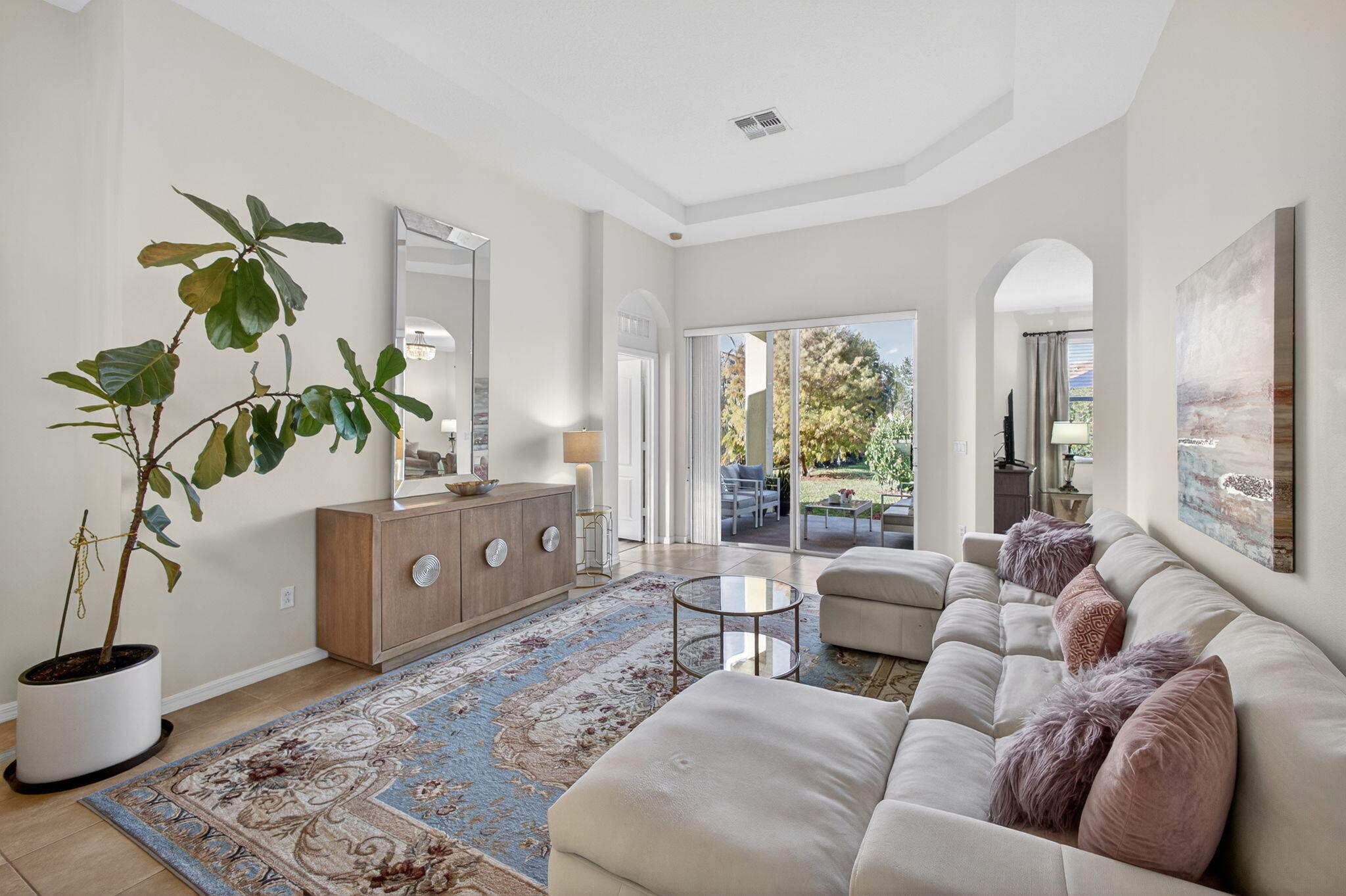 Don't miss this well-maintained single-family home priced to sell, featuring a double-door entry, 3 bedrooms, 2 bathrooms, and a 2-car garage. The spacious primary suite offers a walk-in closet and private en-suite bath. Classic design elements include tray ceilings, arched doorways, and 10-foot ceilings throughout. The split floor plan includes an interior laundry room, plus a paver driveway and walkway for added curb appeal. Located in the gated Heritage Oaks community, residents enjoy a clubhouse with pool, whirlpool spa, fitness center, playground, sidewalks, and streetlights. HOA includes cable, internet, and lawn maintenance in this all-ages community.
