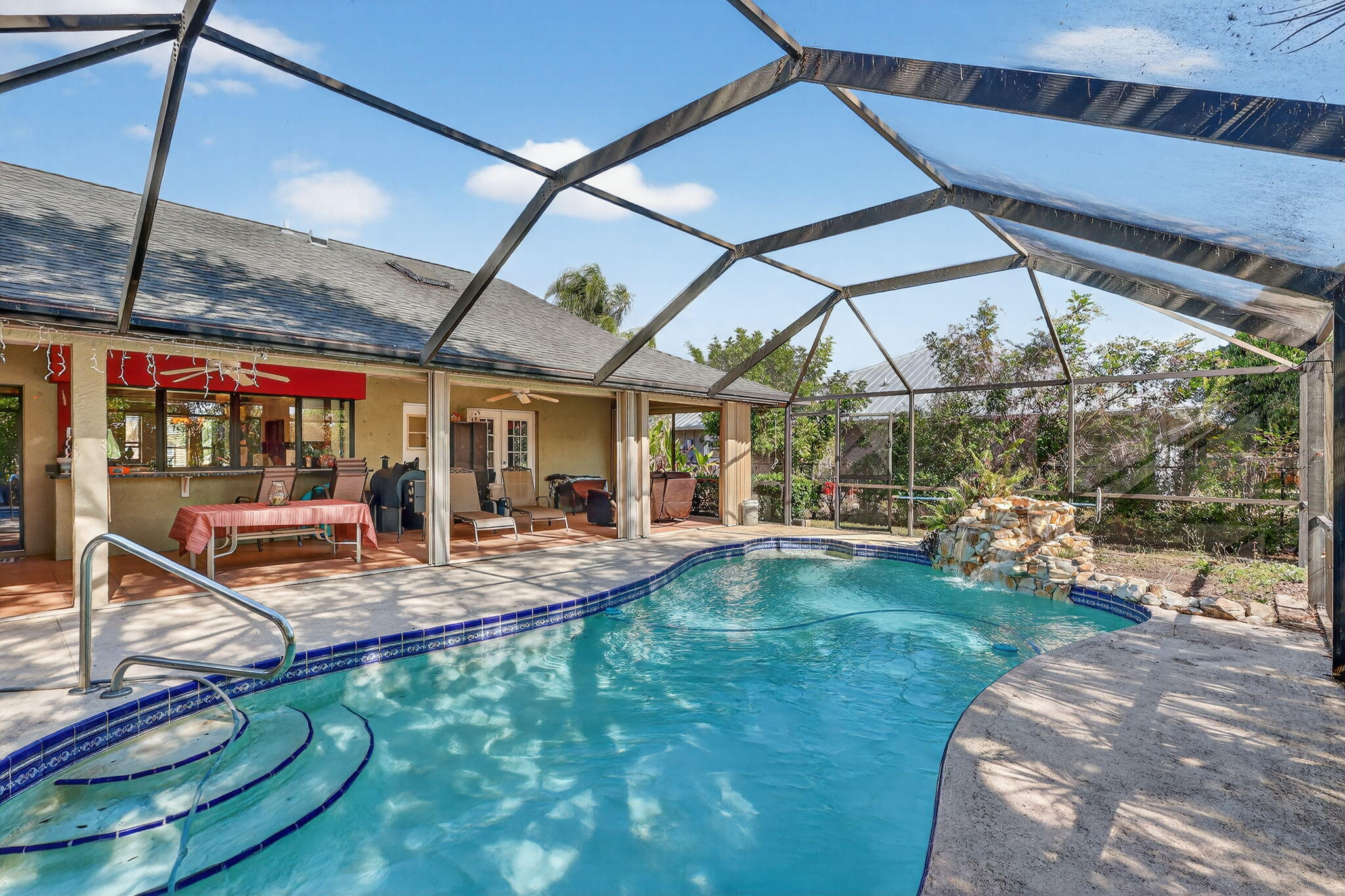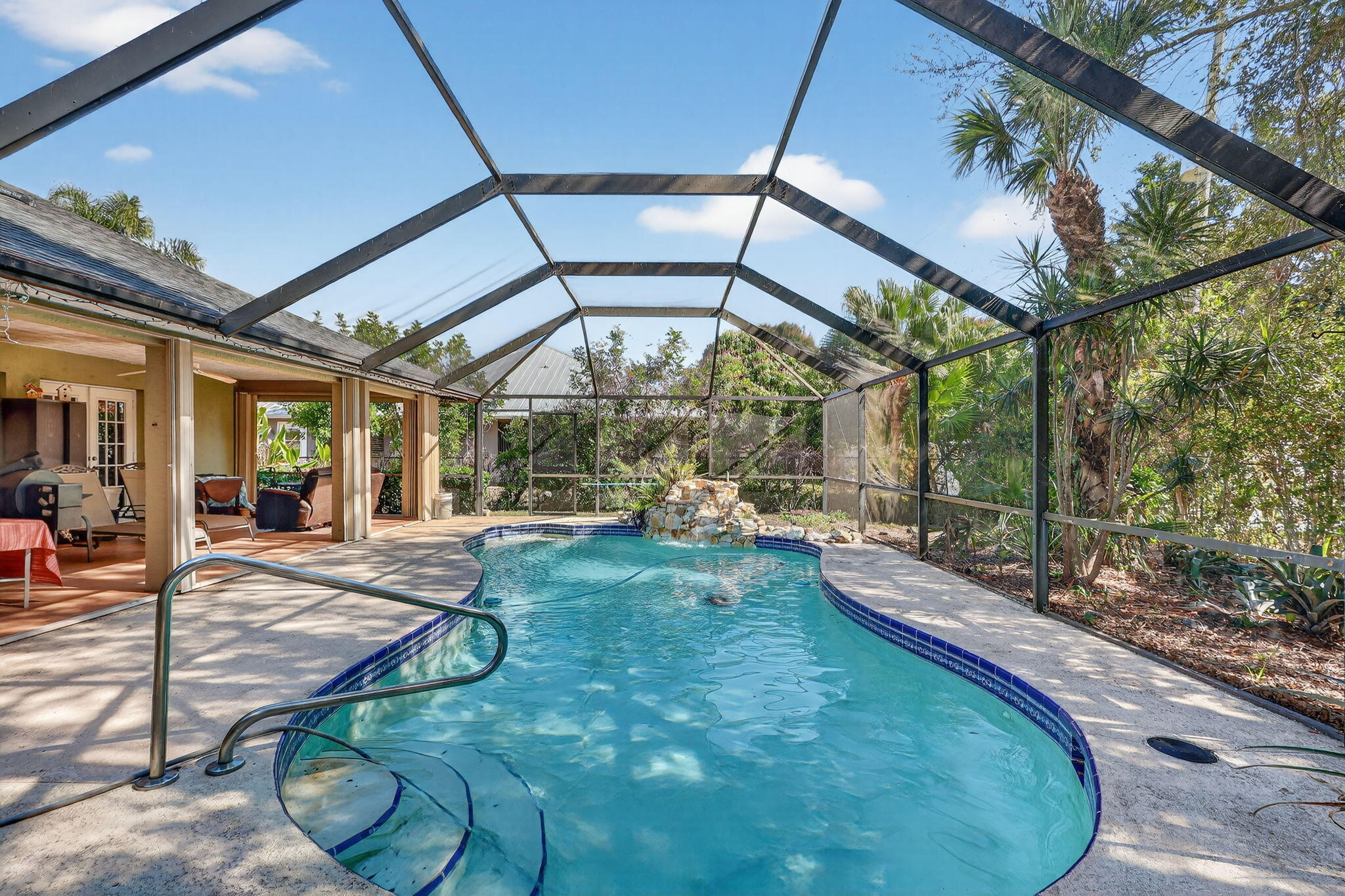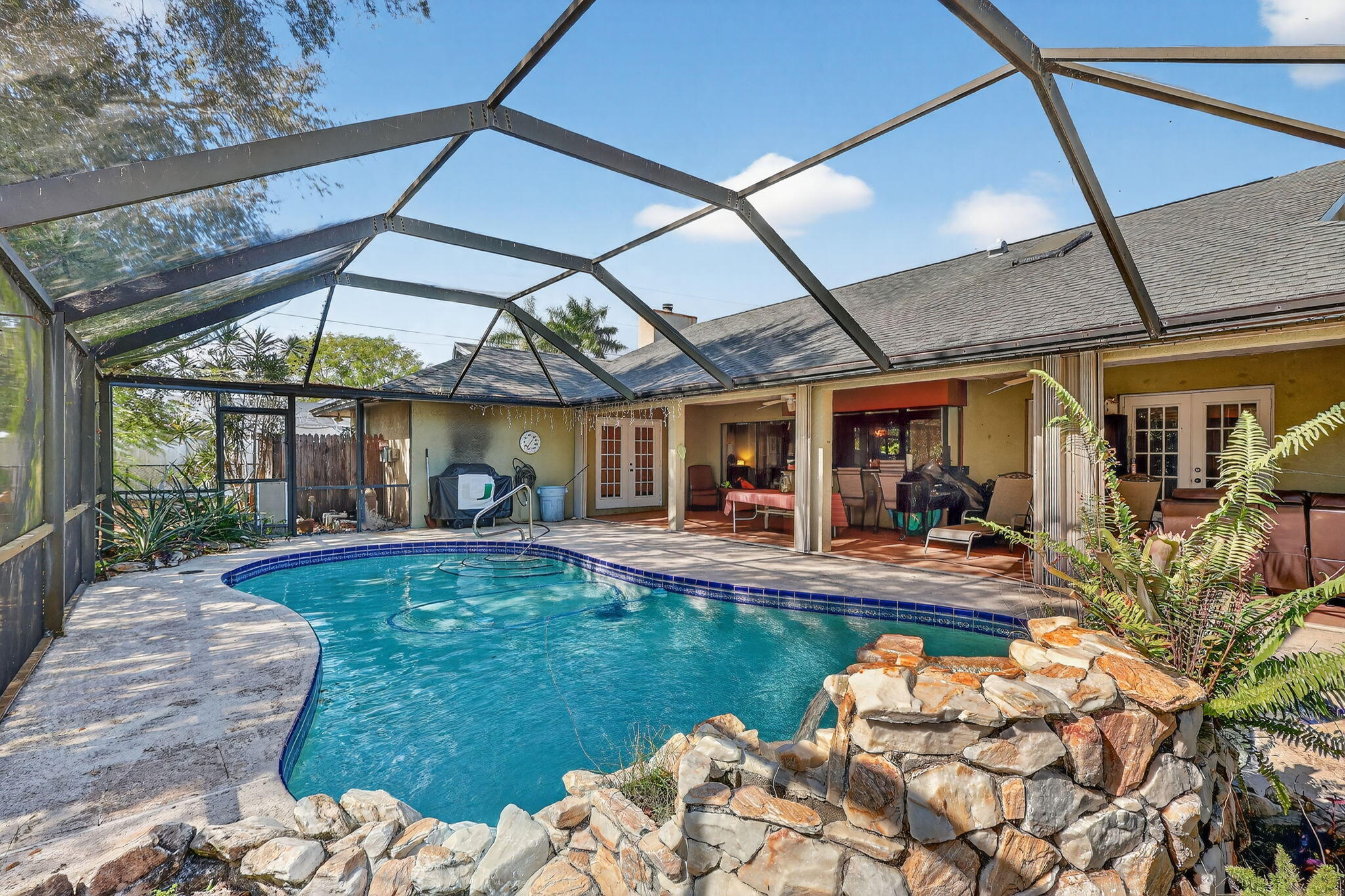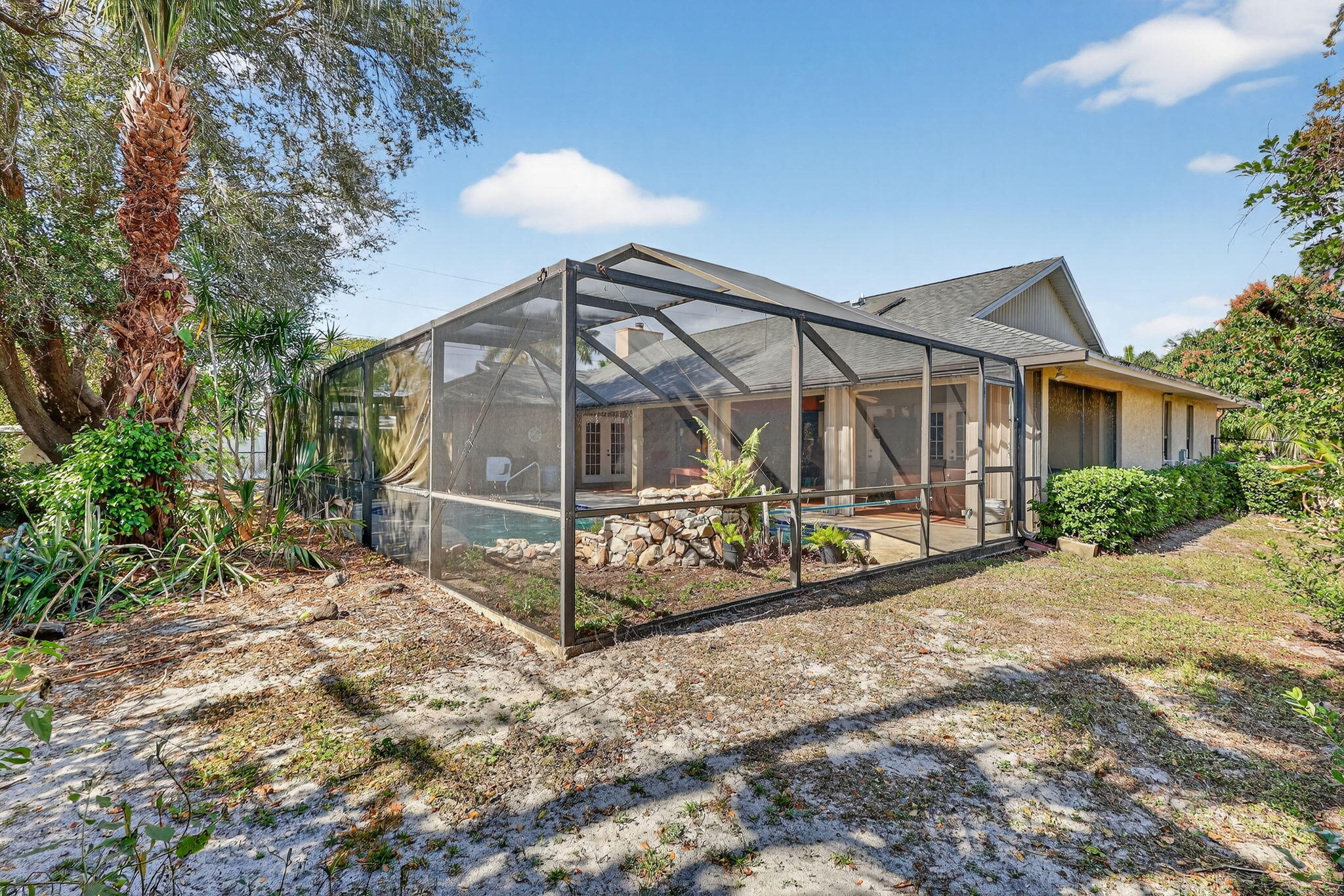 Price reflects repairs needed. Cash Purchase Only. Spacious 3-bedroom, 2-bath screened-in pool home featuring an open-concept living and dining area perfect for everyday living and entertaining. The functional layout flows seamlessly to the screened pool area, offering ideal indoor-outdoor Florida living. Additional highlights include a 2-car garage and comfortable, well-designed living spaces throughout. Located in the desirable Southbend area with access to a public boat ramp offering river and ocean access. Enjoy nearby Jessica Clinton Park with playground, soccer, baseball, basketball, tennis courts, and picnic areas. Conveniently close to shopping, dining, beaches, I-95, and the Florida Turnpike.