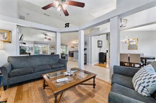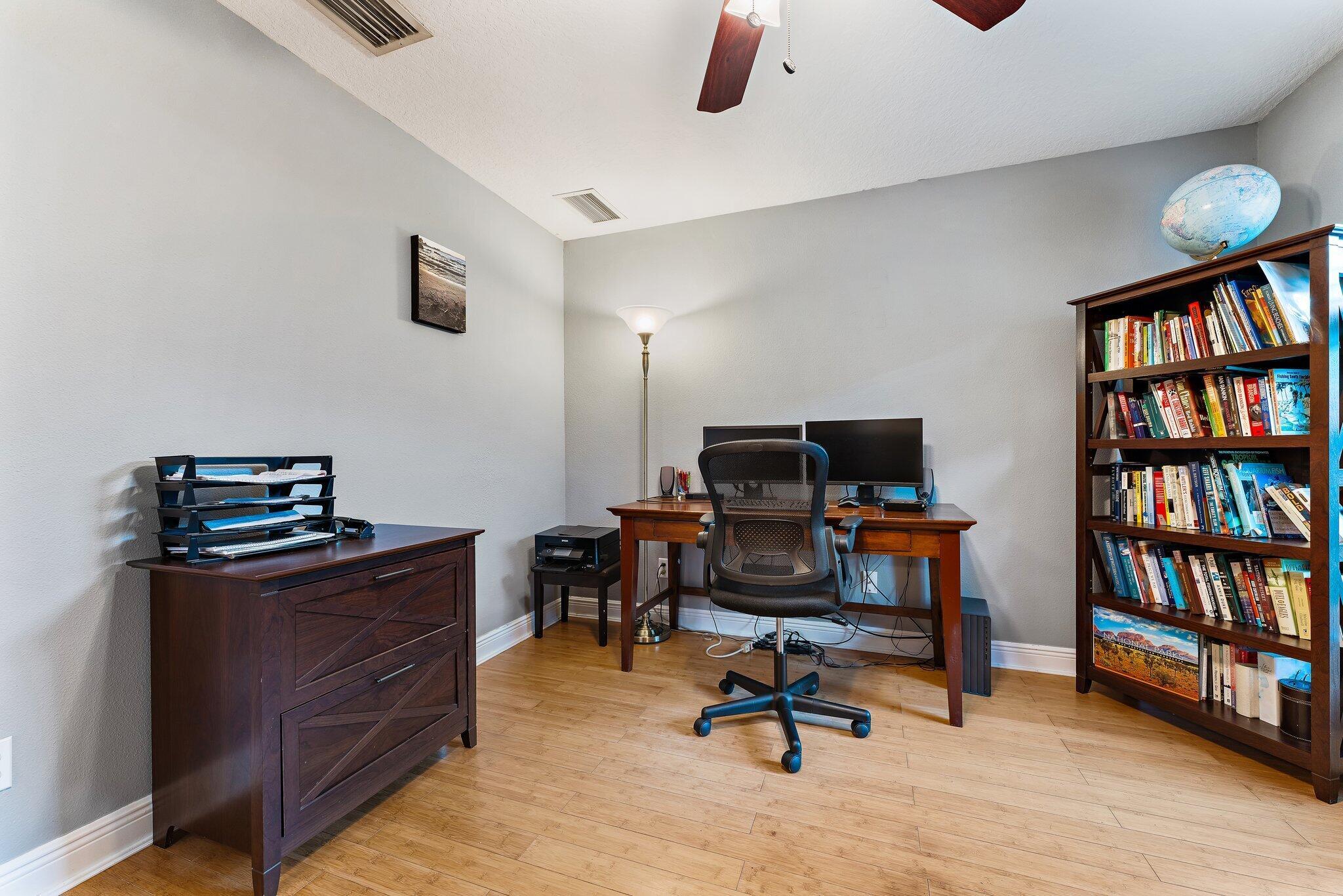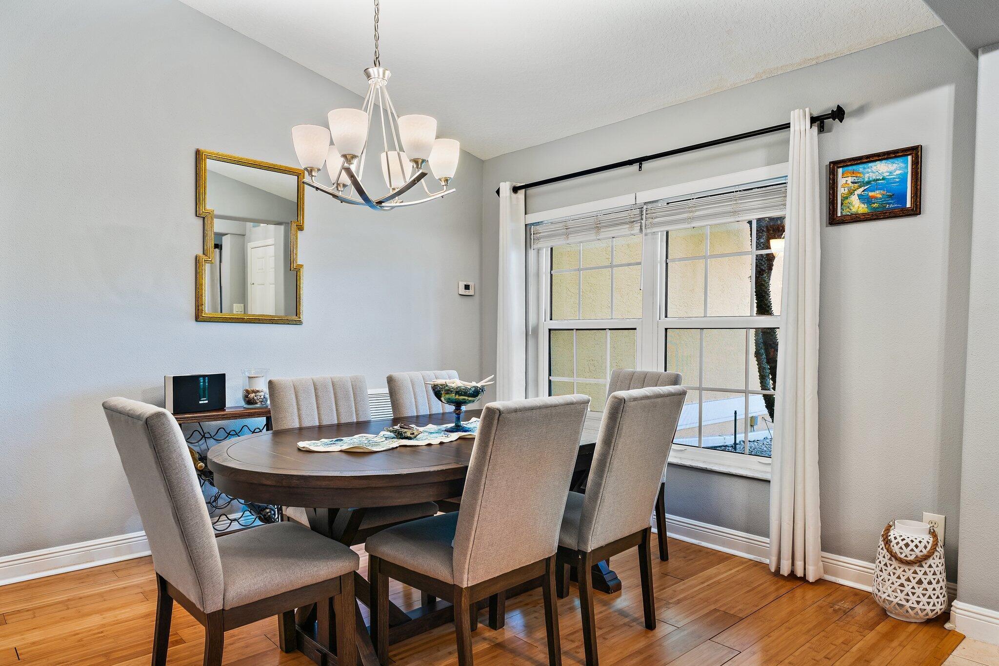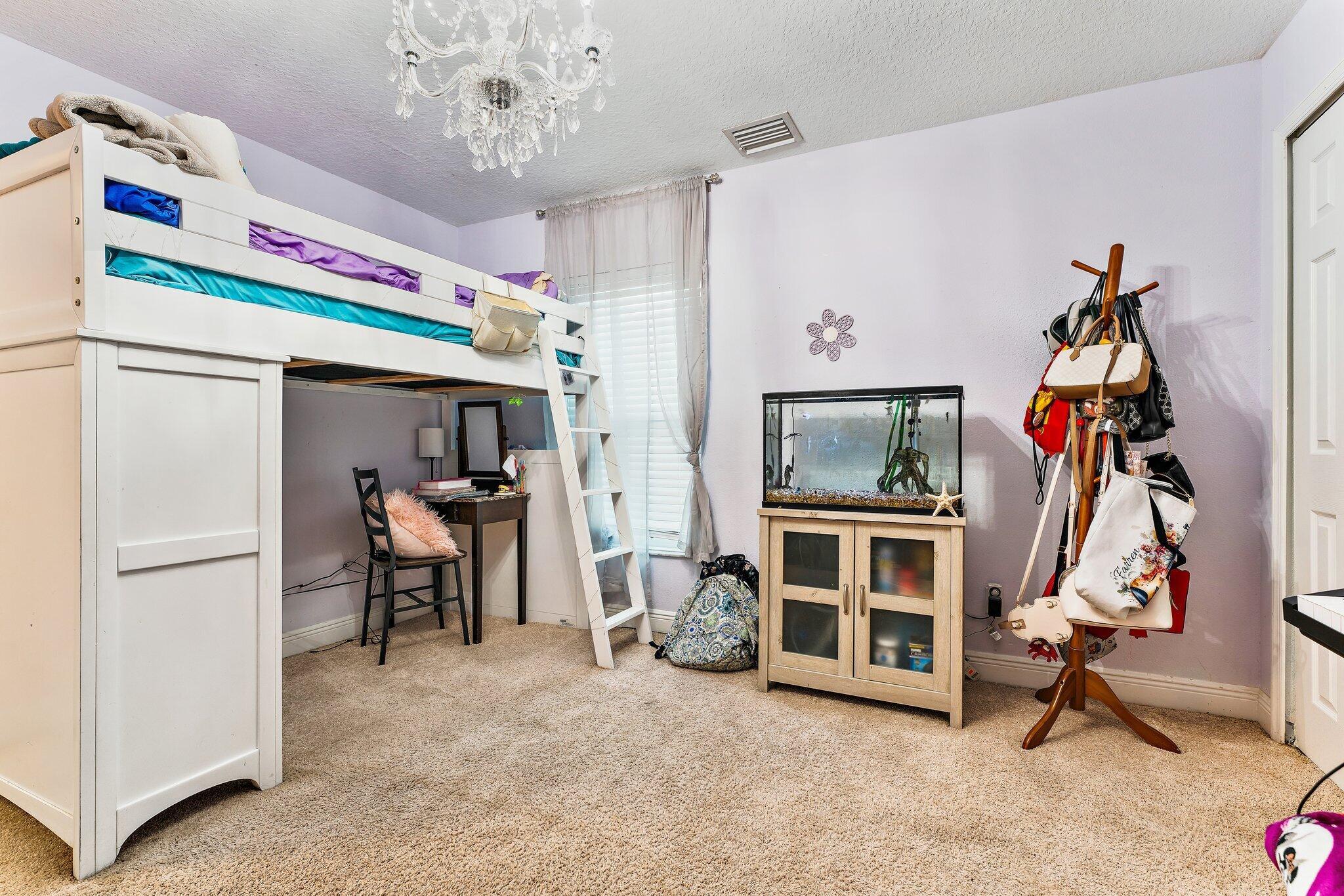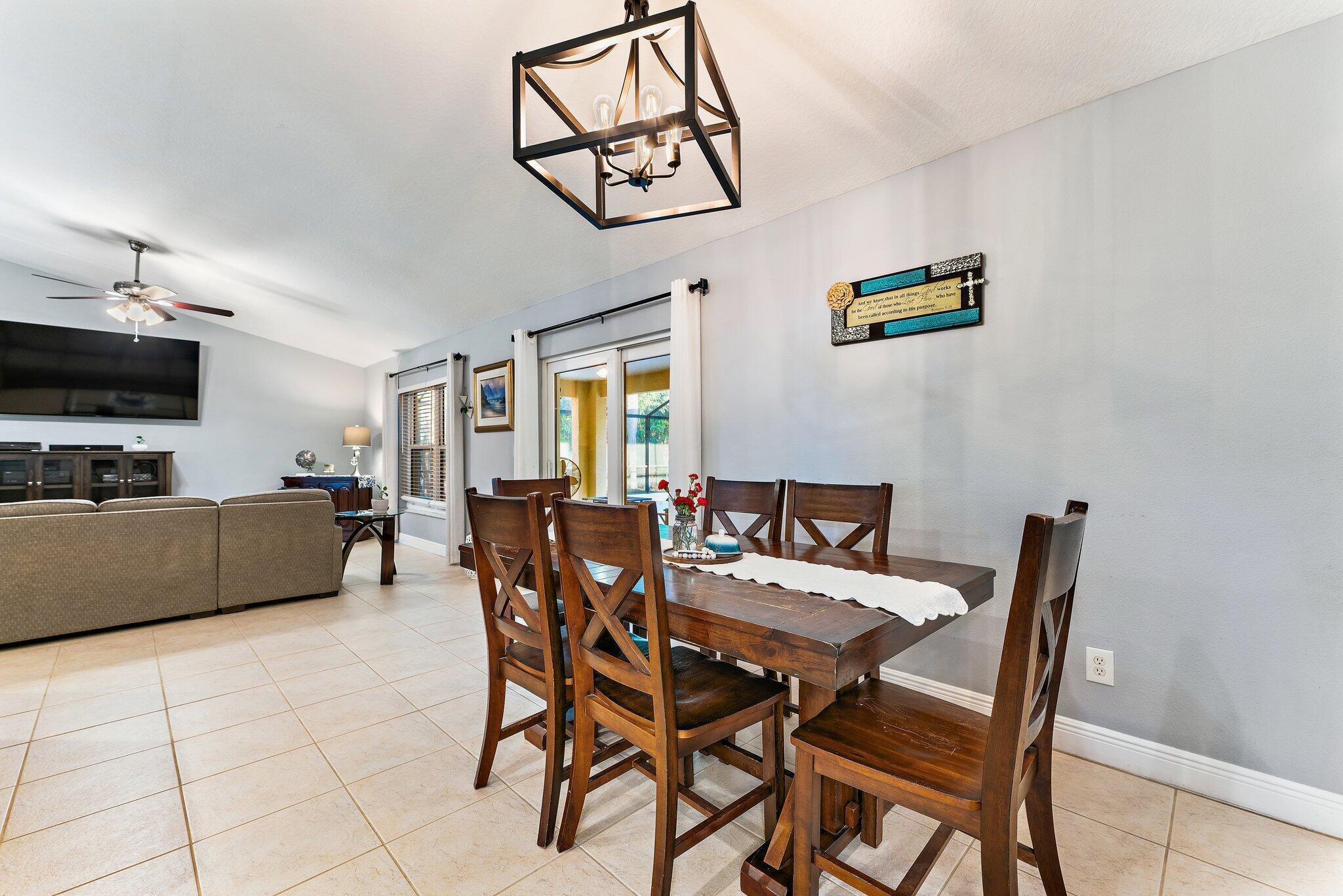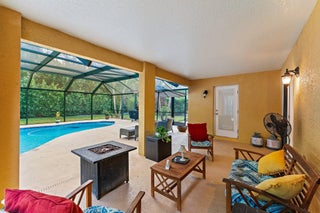 A rare find, this spacious five-bedroom, three-bath home showcases thoughtful upgrades, an open and airy layout, and a generous quarter-acre-plus lot designed for relaxed living and entertaining. The main floor offers four bedrooms and two full baths, including a convenient cabana bath with private access to the patio and pool. Generous kitchen features stunning quartz countertops, Bosch stainless-steel appliances, an induction range, a convection oven, and 42-inch wood cabinetry. This kitchen is a chef's dream. Upstairs, a private suite with its own full bath and walk-in closet provides an ideal retreat for guests, in-laws, or young adults. Outdoor living shines with a screened enclosure, pool, and spa, and a spacious, fully fenced backyard that offers exceptional privacy.The backyard features mature lemon and lime trees, adding both charm and fresh citrus appeal to the outdoor space. Impact windows provide added peace of mind during hurricane season. Situated in the gated community of Lake Tuscany, this home features low HOA fees, zoning for A-rated schools, and convenient access to shopping, dining, and Stuart's renowned beaches. Phipps Park,less than a mile away,offers a boat ramp and fishing pier, while quick access to I-95 makes commuting effortless. Truly one of a kind, this home is ready to impress at every turn.
