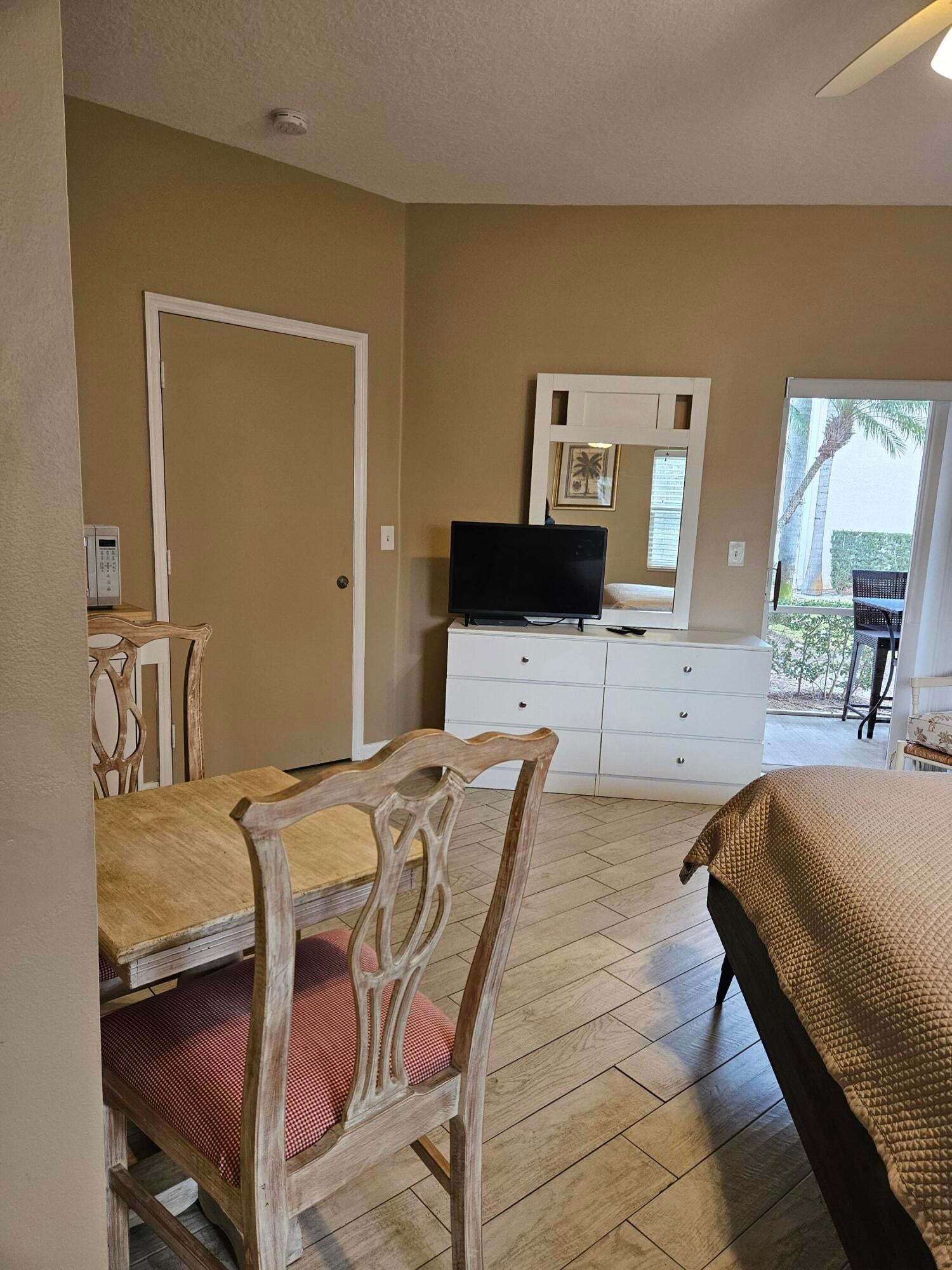 Golf Villas II This is this 'B' side ground level Studio/efficiency - Fully furnished with 1 queen bed & 1 full bathroom. Kitchenette with mini-refrigerator, bistro table and microwave. Unit is complete with dresser TV and sitting area with chair. Enjoy the outdoors in screened Lanai.ALL INCLUSIVE with cable and internet elec. Enjoy the close proximity to Community Pool. NO SMOKING, NO PETS First month and Security. Golf Villas II is close to shopping, restaurants, medical and convenient to I 95.