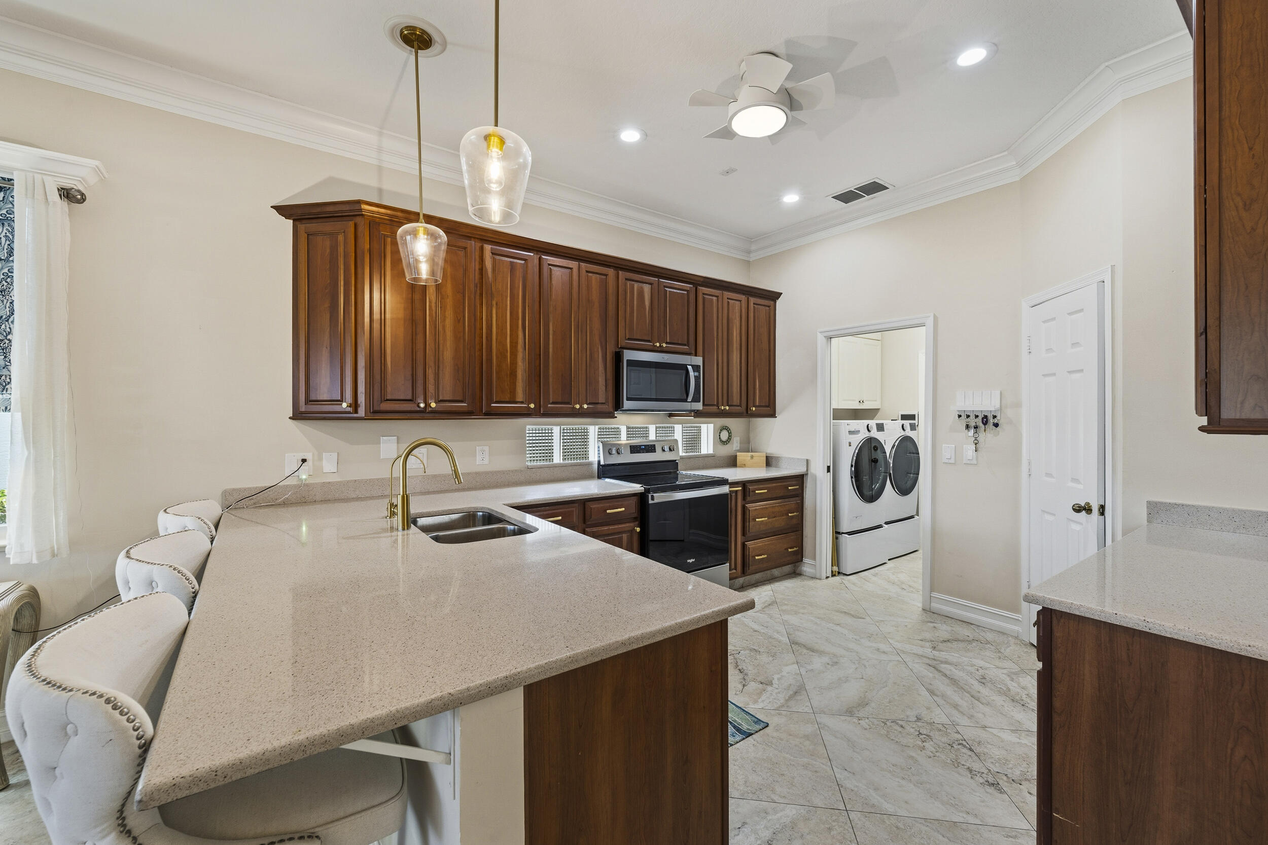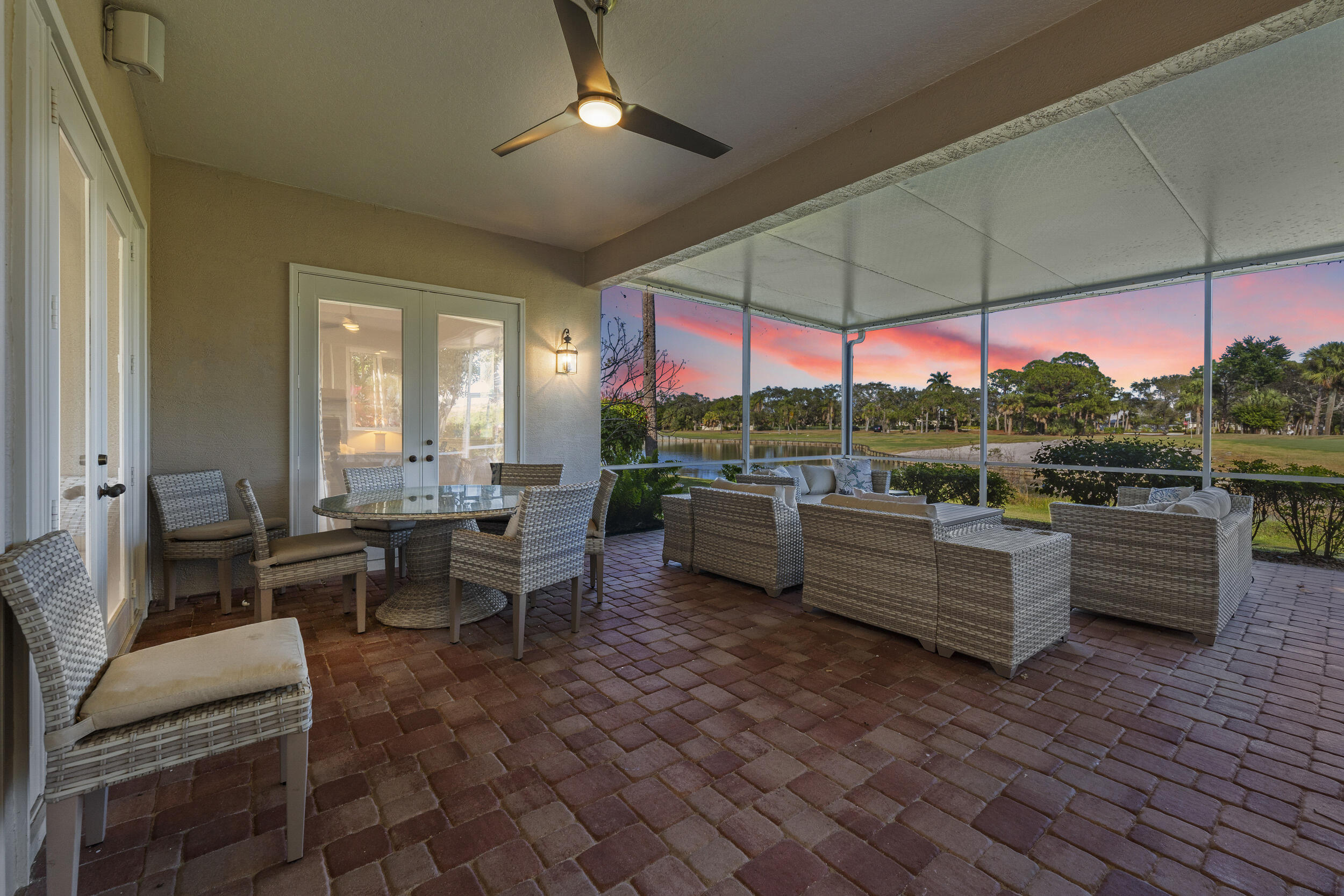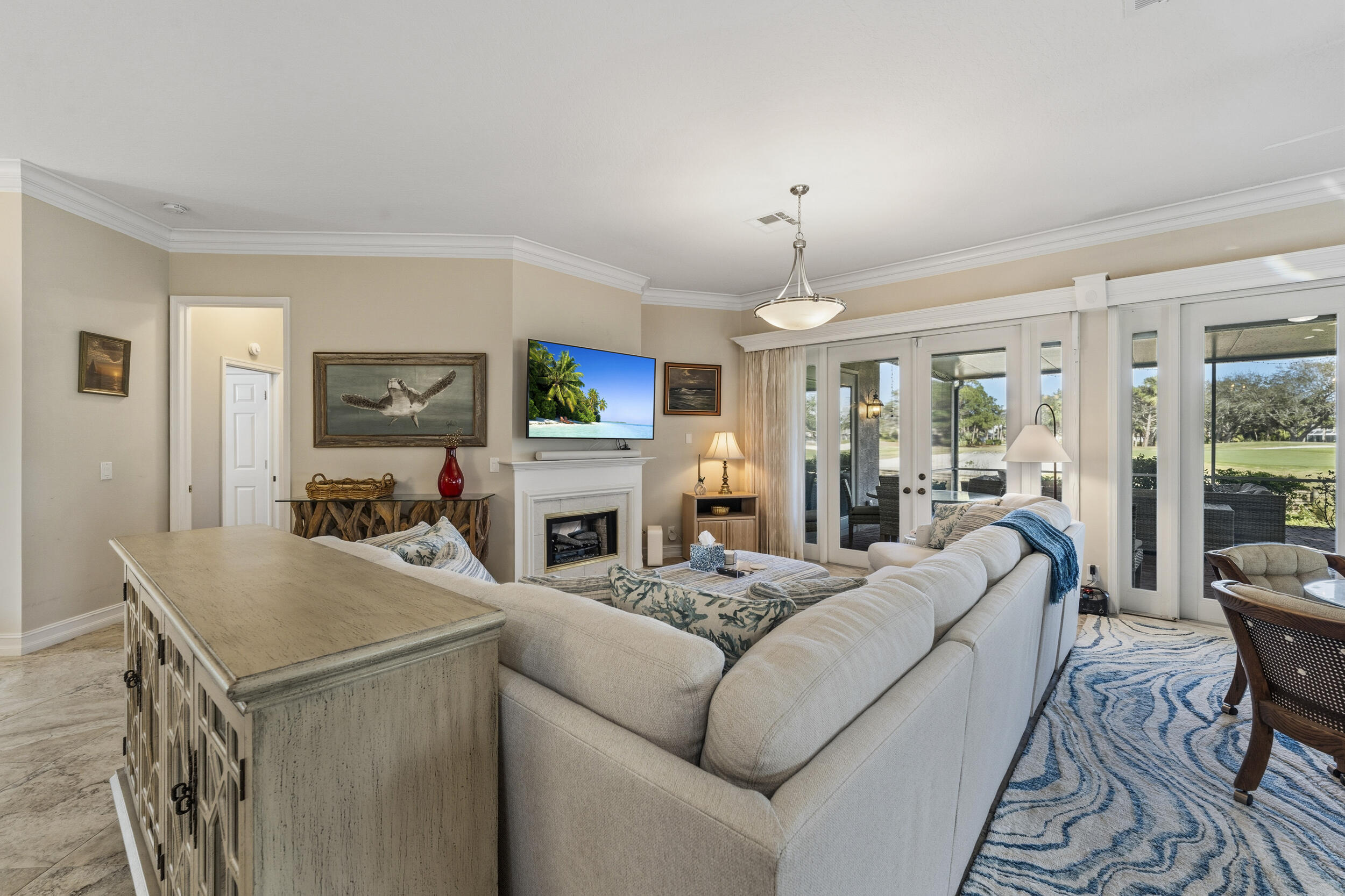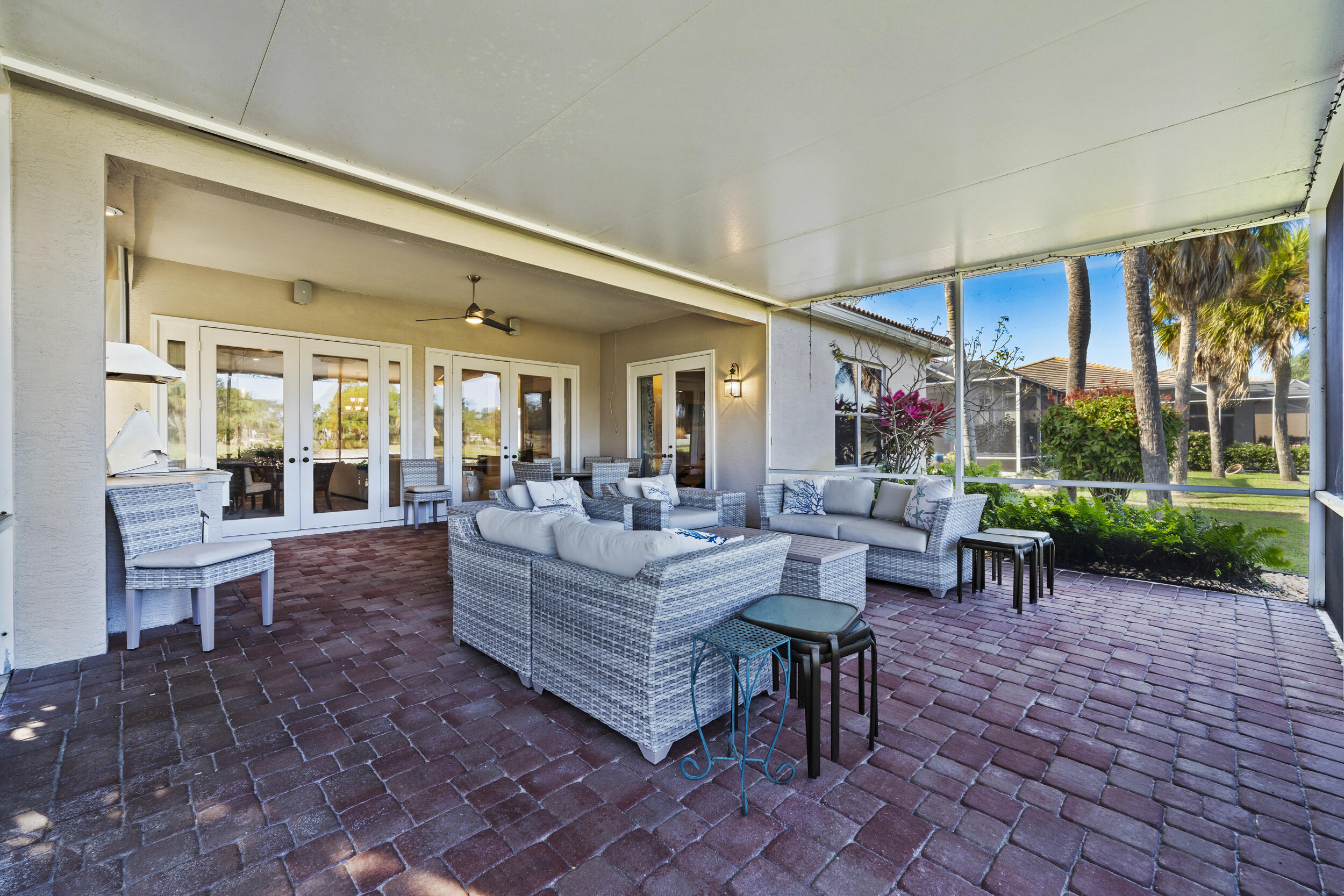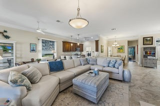 This meticulously maintained residence offers extensive updates and thoughtful enhancements throughout, providing both comfort and peace of mind. Notable improvements include a new roof and gutters (2024), resealed lanai roof, sealed pavers, hurricane rated front door, and upgraded no see um lanai screening. Kitchen has 42'' cabinets, granite countertops, new appliances (2024), reverse osmosis system, soft close pull out shelving, and updated sink hardware. Bathrooms have been tastefully refreshed with new fixtures, upgraded hardware, beadboard and wallpaper accents, and a redesigned powder room vanity. Additional highlights include an electric fireplace with remote, new lighting fixtures in main living areas, and more.Additional upgrades: closet shelving systems, blackout blinds and custom window treatments throughout, remotecontrolled shades and curtains, upgraded outdoor outlet covers, enhanced landscaping with new plantings and garden rock, new water heater. A truly moveinready home where pride of ownership is evident at every turn.