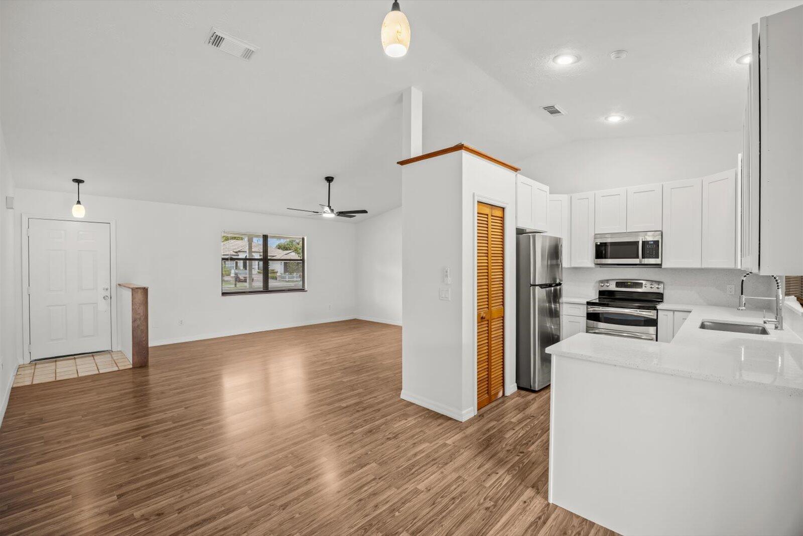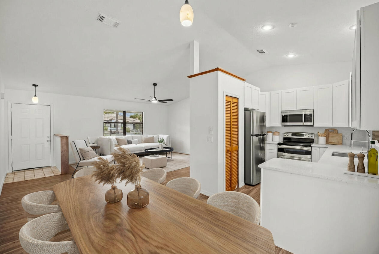 Showings must be scheduled with Showingtime. Exquisite 3-bedroom, 2-bathroom residence, renovated in 2025. The gourmet kitchen boasts luminous Calacatta quartz countertops, bespoke soft-close shaker cabinetry, and premium high-end finishes, designed to inspire culinary excellence. Luxurious spa-inspired master bathroom with sophisticated tile work, gorgeous vanities, and contemporary fixtures, elevating daily rituals to a serene escape. Impeccable waterproof laminate flooring, freshly painted interiors and exteriors. Enjoy effortless access to I-95, premier shopping, and dining, with the freedom of no HOA restrictions. This residence seamlessly blends modern luxury with timeless comfort.