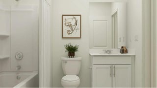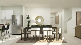The first floor of this two-story home shares an open layout between the kitchen, dining area and family room for easy entertaining with access to the patio. A secondary bedroom on the first floor can easily be converted to a guest room or home office. Upstairs is a versatile loft that serves as an additional shared living space, along with three secondary bedrooms and a luxe owner's suite comprised of an en-suite bathroom and a large walk-in closet.Prices, dimensions and features may vary and are subject to change. Photos are for illustrative purposes only.