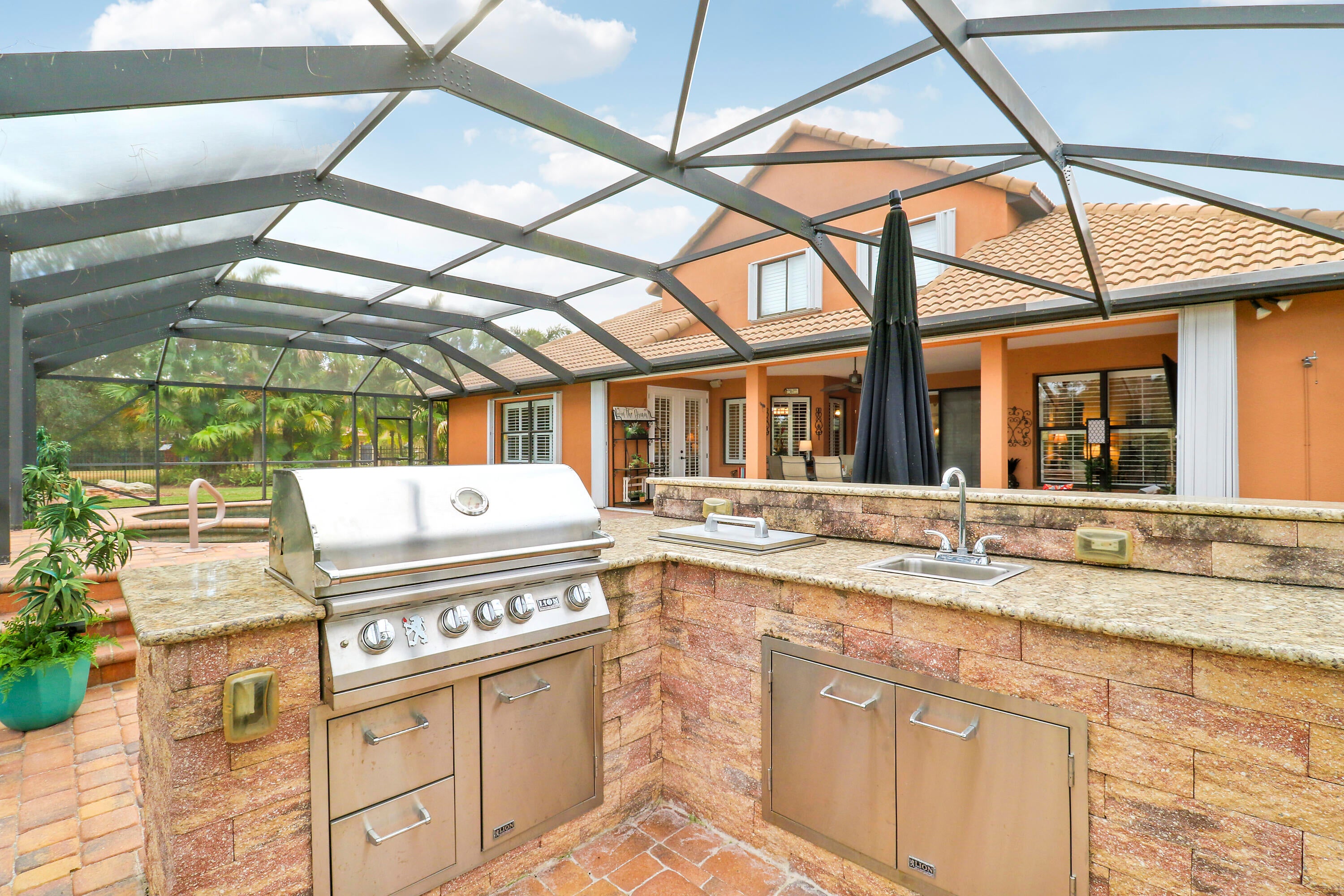 Auto Sprinkler, Built-in Grill, Covered Patio, Outdoor Shower, Screened Patio