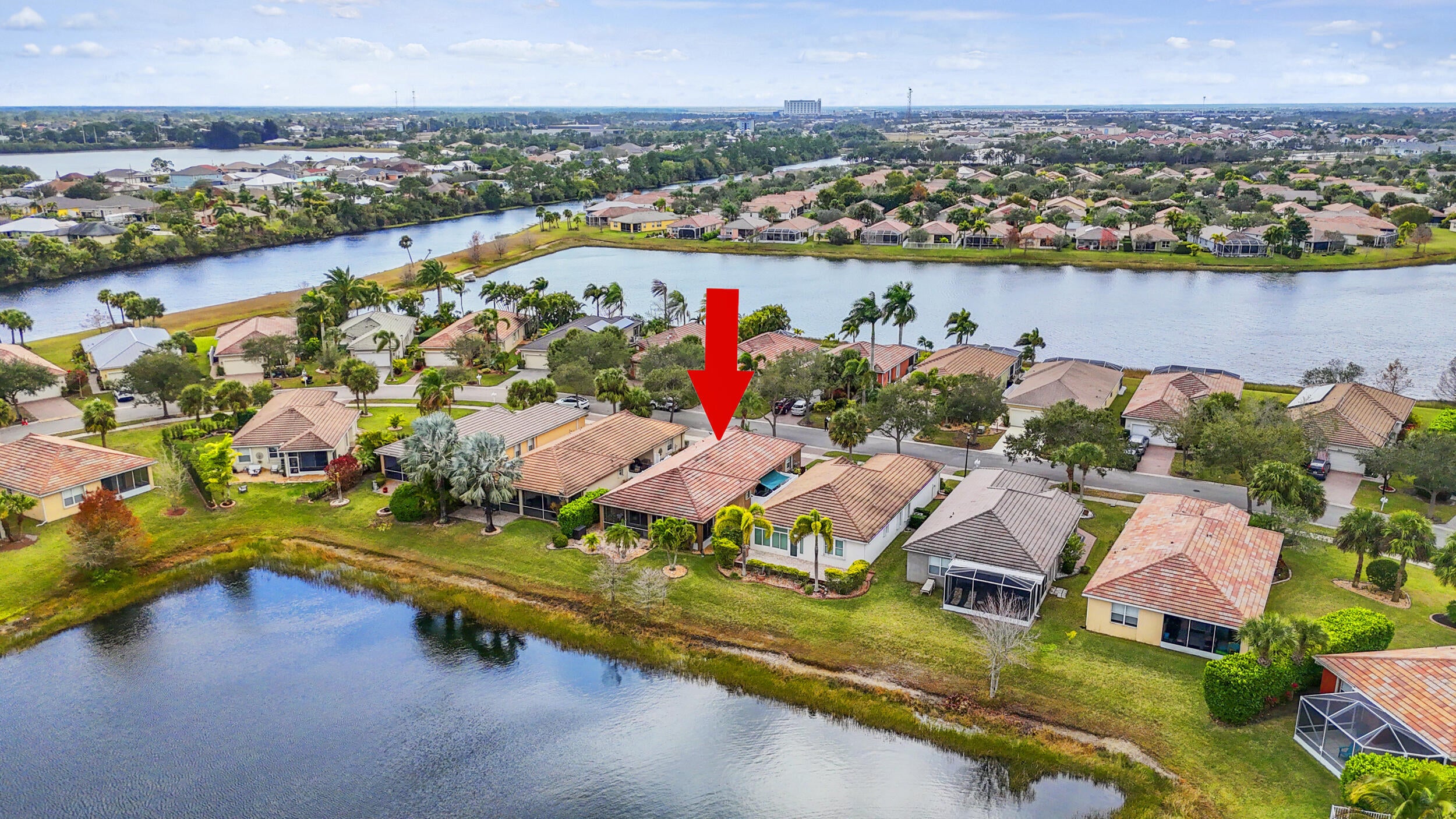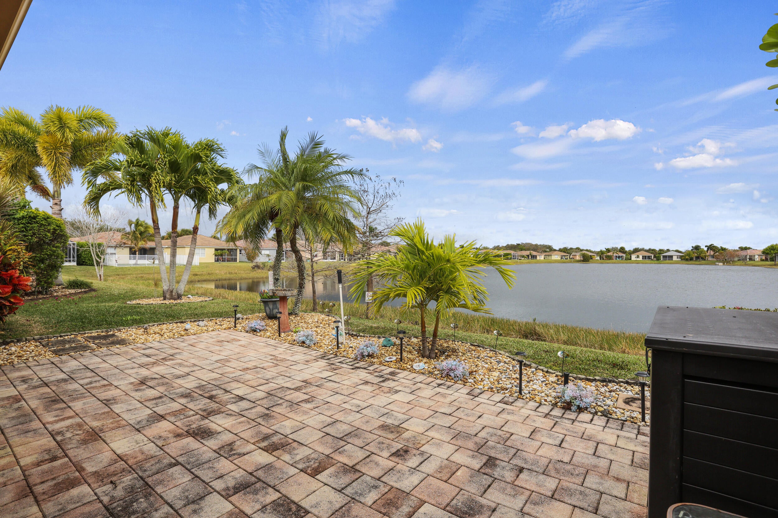 Stunning 3/2 CBS Waterfront Home with Breathtaking Views & Endless UpgradesThis beautifully maintained 3 bedroom, 2 bath CBS waterfront home features upgraded tropical landscaping and the water view you've been waiting for. Move-in ready with upgrades galore including a new AC, new hot water heater, new refrigerator, and accordion hurricane shutters for peace of mind.Enjoy true Florida living with an enclosed Florida bonus room overlooking the water, plus a screened patio and paver patio--perfect for relaxing and taking in gorgeous sunset views. The home also offers a private, fully fenced courtyard entrance for added privacy and charm.Interior highlights include updated flooring with no carpet, plantation shutters, and a spacious laundry room with cabinets, deep sink,additional storage, and a second refrigerator. 2021 washer and dryer. Located in a desirable guard-gated community featuring a clubhouse, community pool, gym, and sidewalks, all in the heart of Tradition. Ride your golf cart to shopping, dining, and community events. Conveniently located close to I-95. Schedule your private showing today on this waterfront gem!