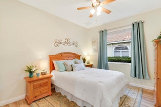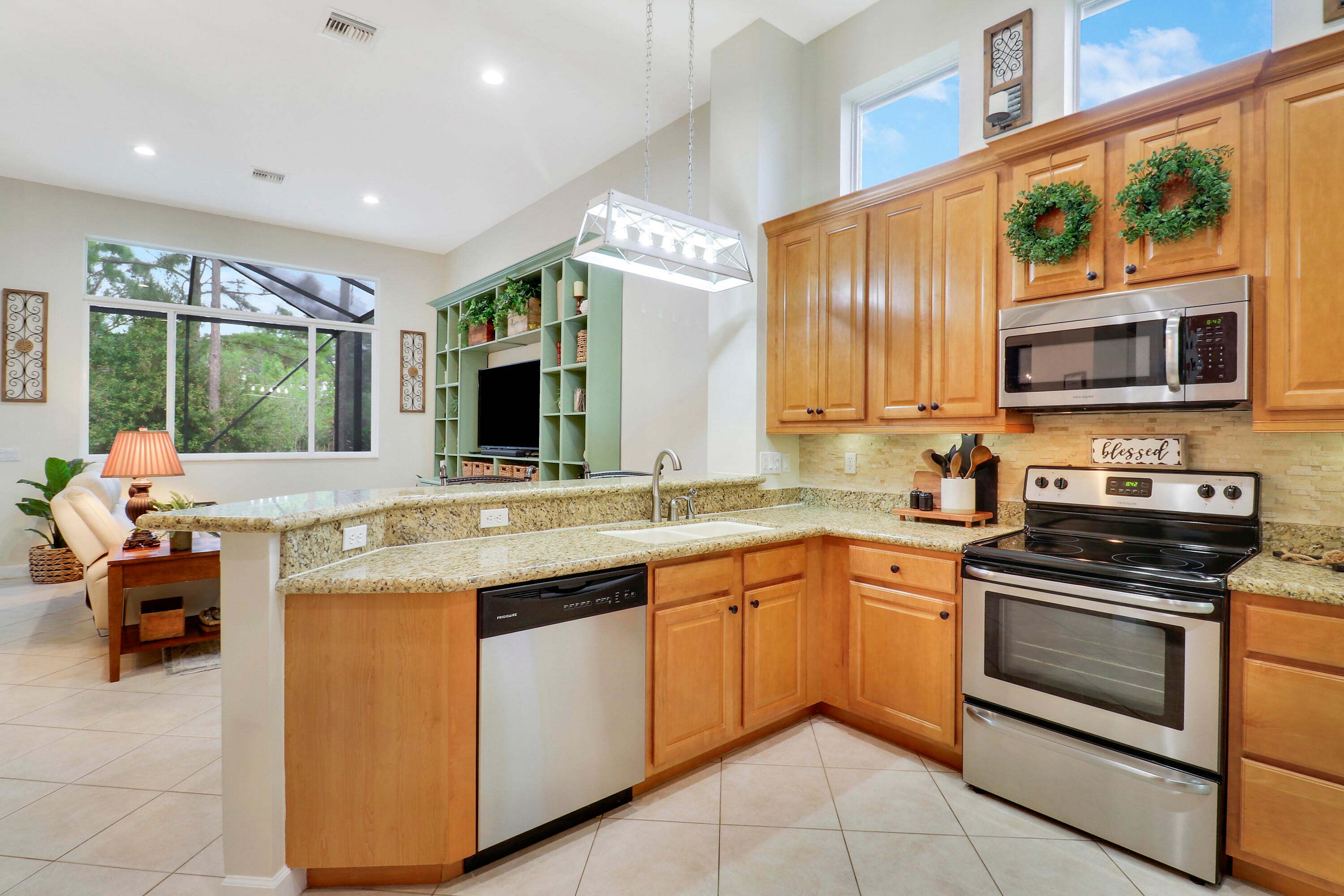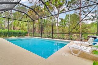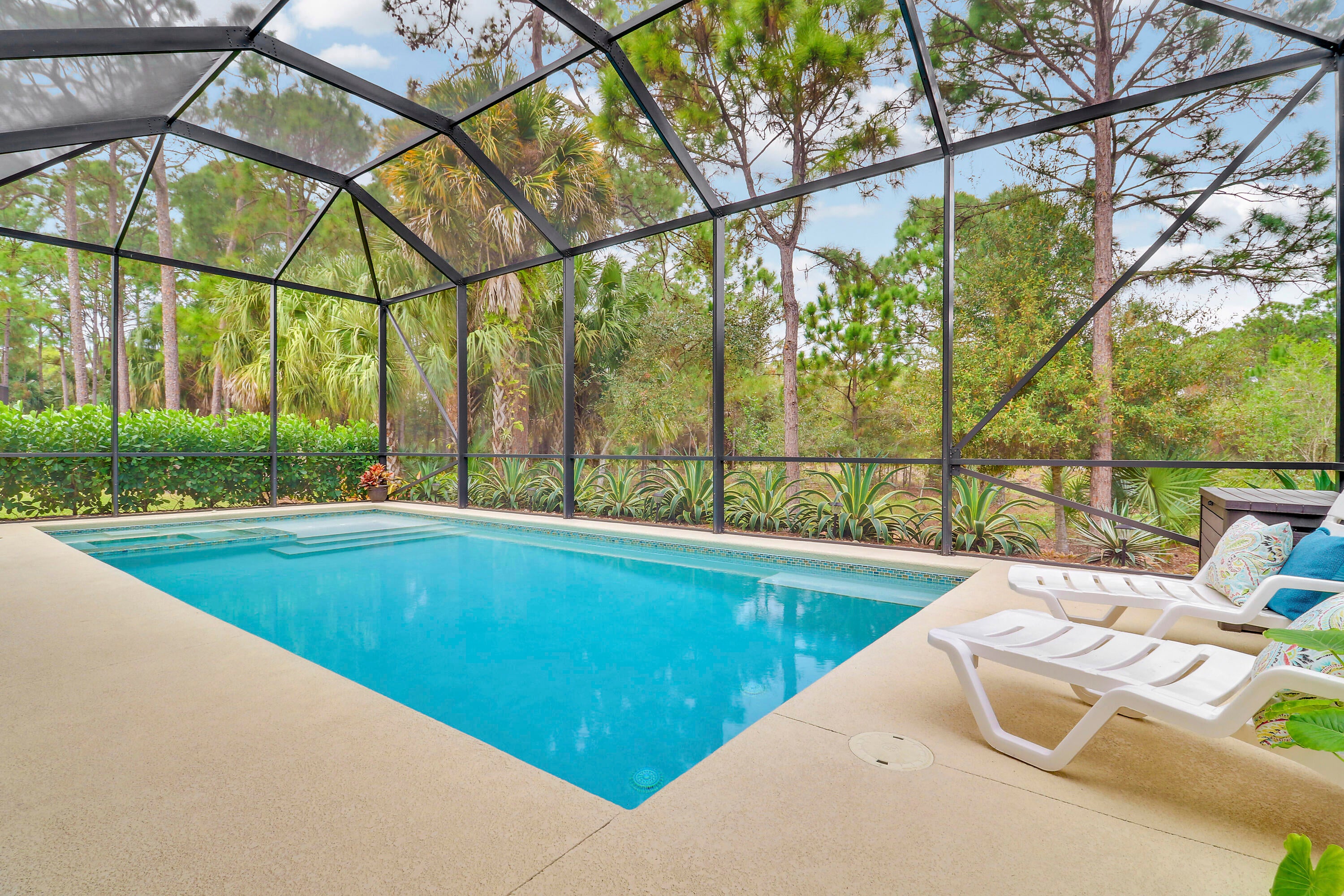 Welcome to this exceptionally maintained 3- bedroom, 3-full-bath, 2 car garage home located in the gated community of PGA Village. This home located on a spacious pie shaped lot features a newer 2022 Heated Pool, Spa and Lanai overlooking a beautiful scenic preserve. This home features 12ft ceilings, new premium laminate flooring in all bedrooms, newly painted interior, upgraded recessed lighting and a new efficiency AC unit. The kitchen offers plenty of counter space for entertaining, lgbreakfast bar, granite counter tops, SS appliances, 42'' wood cabinets and a pantry. You will enjoy sitting in the kitchen dining area looking out the glass bay window.The primary bedroom overlooks the pool/spa and preserve with sliding doors for easy access. Features two walk-in closets, dual vanitiesspa like soaking tub and lg walk-in shower. The lanai offers plenty of covered area to enjoy the outdoors or watch some TV. PGA Village offers COUNTY TAXES ONLY. There are two MEMBERSHIP OPTIONAL golf courses in PGA Village. The PGA Golf Club and a private club The Legacy Golf & Tennis Club. The Island Club offers lots of activities, pickleball, tennis, exercise rooms, gym, ballroom, billiards, card rooms and more. 45 min to Palm Beach International airport. Minutes from Cleveland Clinic Hospital among others, restaurants, shopping and parks. Home to the Mets spring training and Minor league team. This a great home..great location. Easy to schedule an appointment.
